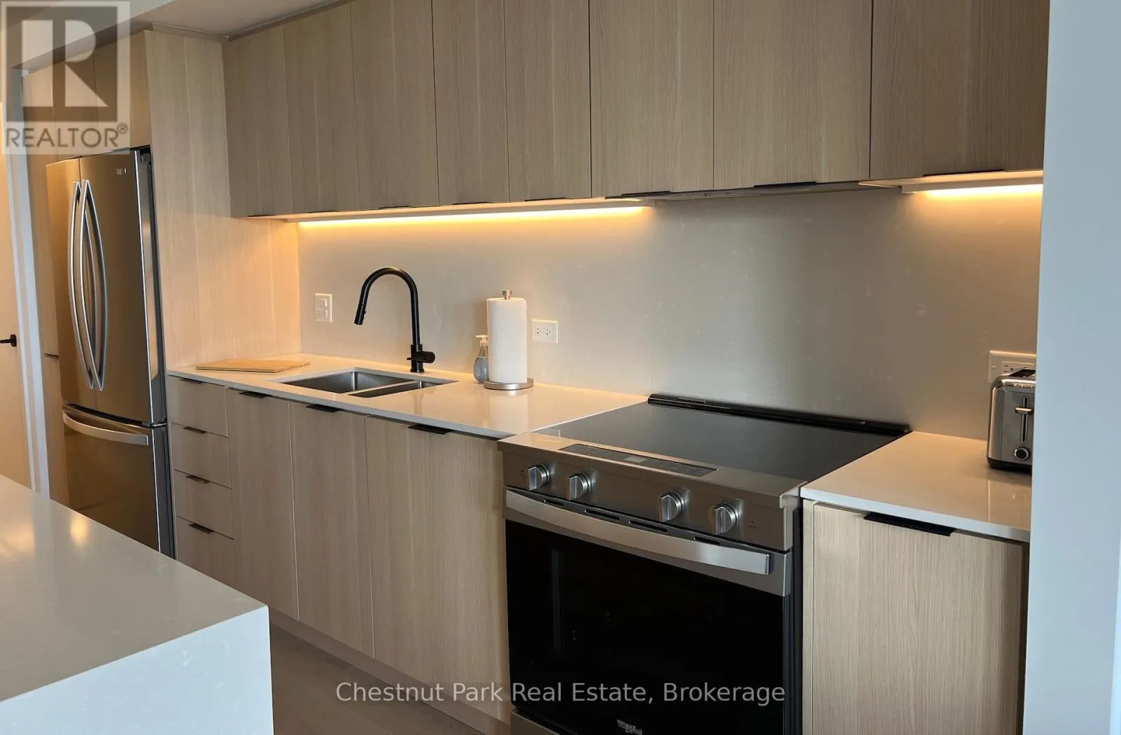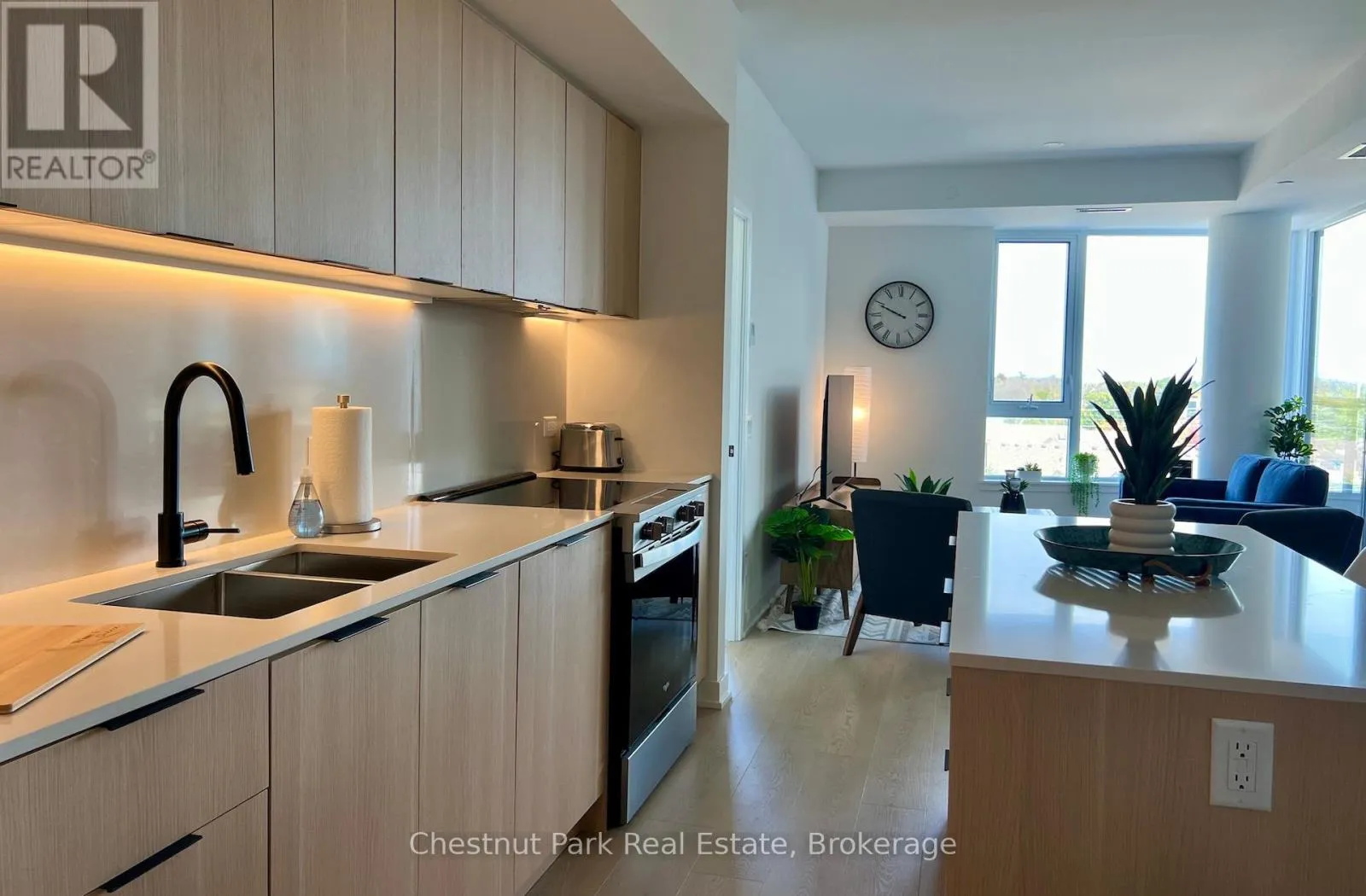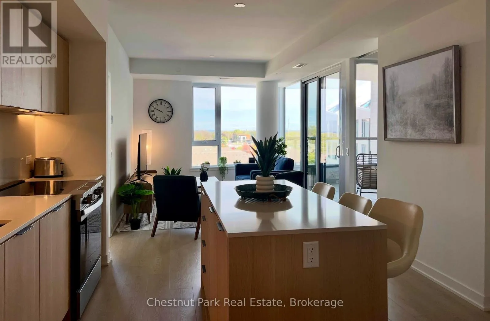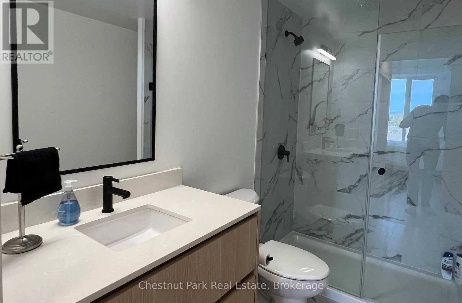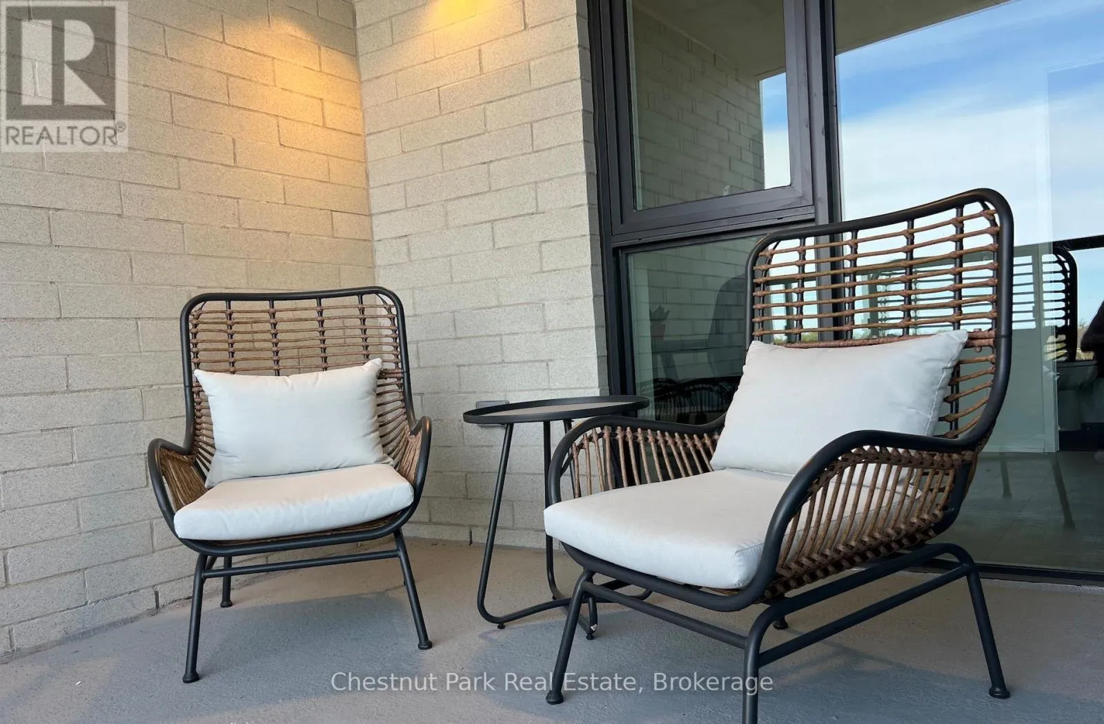 Cross Streets: Huron Street & Heritage Drive. ** Directions: Highway 26 west to Collingwood to Heritage Drive. Welcome to your dream home in the heart of Collingwood - this never-lived-in, fully furnished 2-bedroom, 2 full bathroom condo offers the perfect blend of luxury, convenience, and lifestyle. Step inside to discover 865 sq ft of beautifully designed living space, with a modern kitchen featuring a large island with bar seating included, stunning waterfall quartz countertops, and a matching quartz backsplash - all part of a thoughtfully upgraded interior. The open-concept layout flows seamlessly to your 100 sq ft covered balcony, where youll enjoy unimpeded and protected east-facing views of Georgian Bay every morning. This turnkey unit includes all furniture and furnishings, so you can move in immediately and start enjoying your new lifestyle from day one. Perfectly located just 300 meters to both Farm Boy and Loblaws, and only steps from LCBO, Starbucks, Rexall, and BMO, and only 180 meters to Downtown Collingwood where shops, cafés, and restaurants await right outside your door. Whether you're looking for a year-round home, weekend retreat, or investment property, this condo is a must-see. (id:27476)
