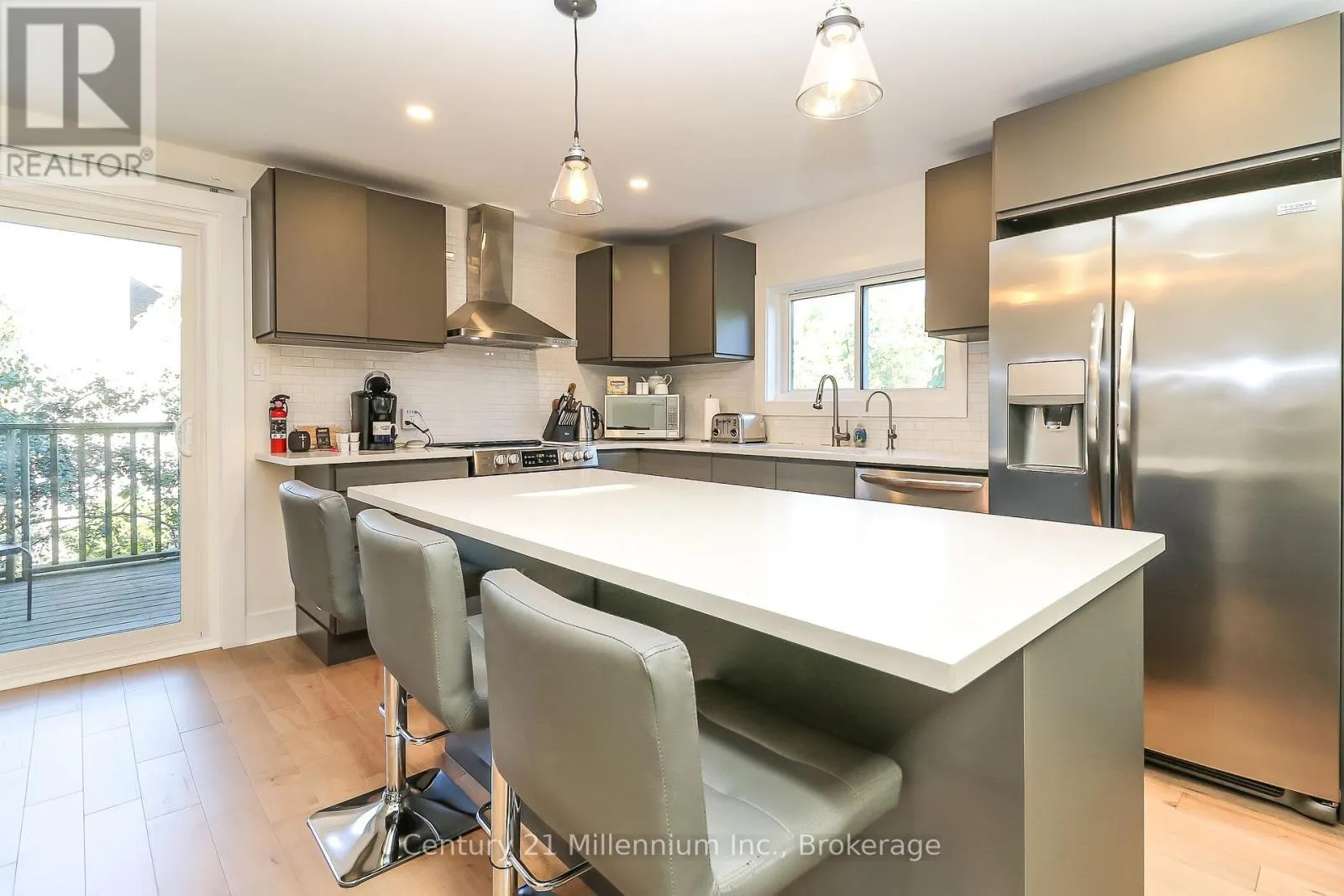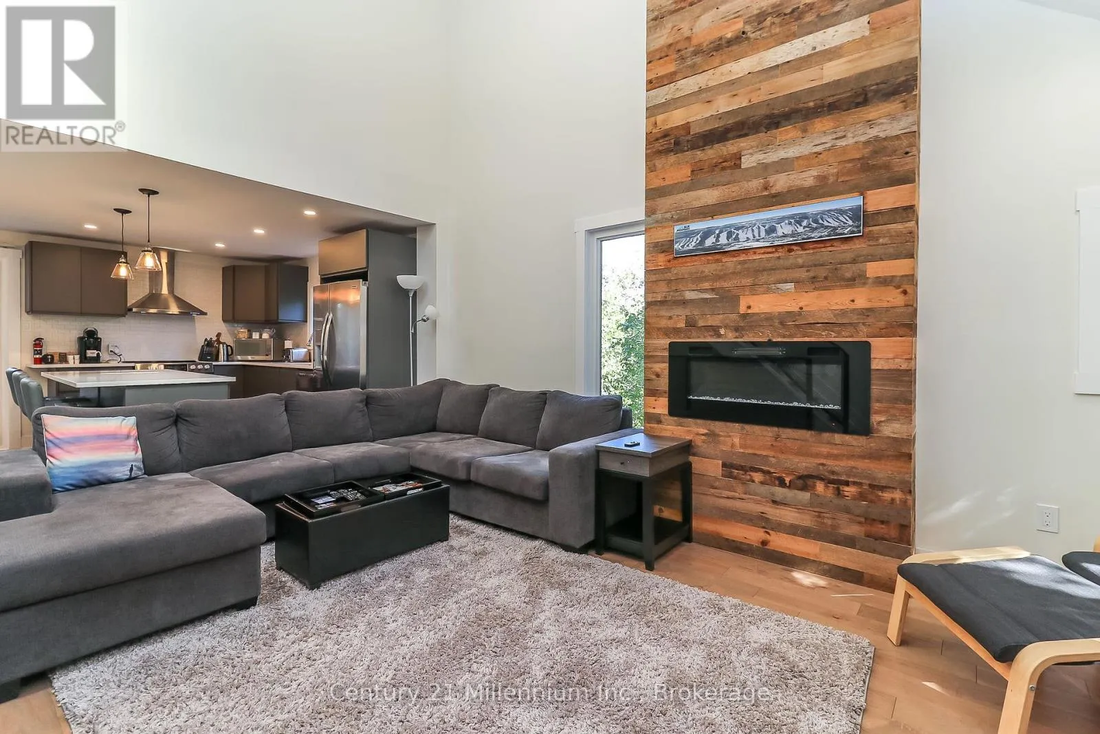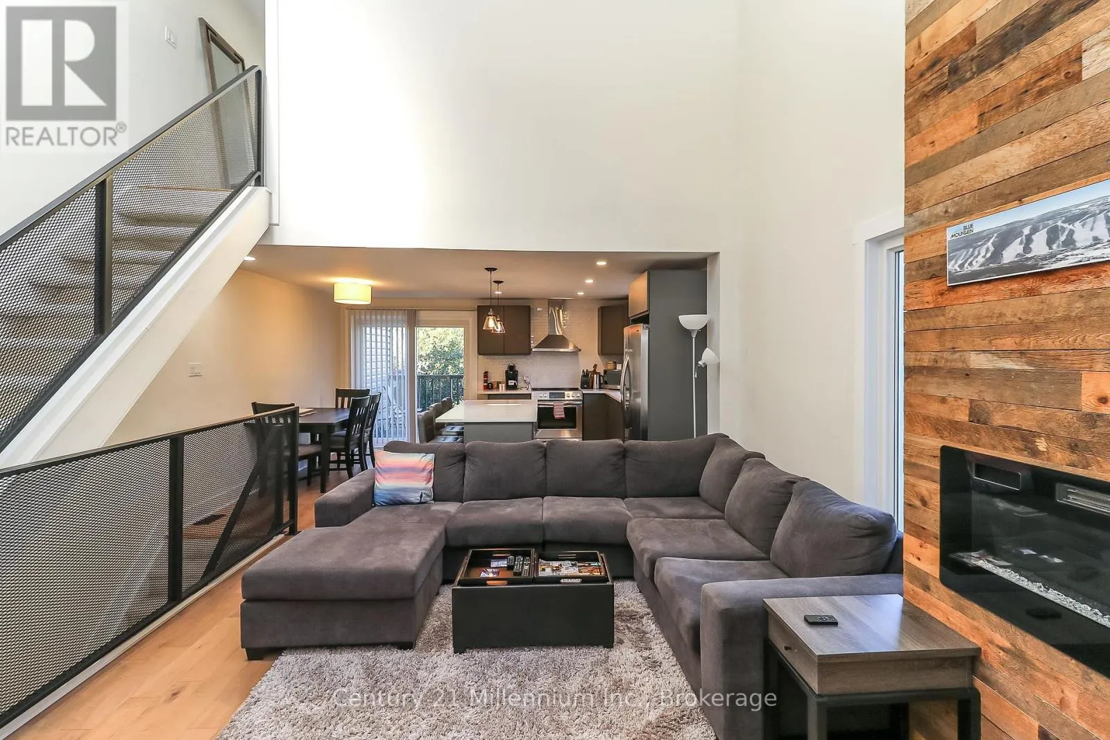 Cross Streets: Dawson/Escarpment. ** Directions: Hwy 26 to Harbour St, West on Harbour St, Right on Dawson, left on Escarpment Cres. SEASONAL FALL/WINTER LEASE (UTILITIES INCLUDED-DATES FLEXIBLE)-COMPLETELY RENOVATED 3 Bedroom/2 full bath completely furnished end unit offers exceptional privacy and modern luxury throughout. The main living space features vaulted ceilings, an open-concept design, a striking fireplace with a floor-to-ceiling rustic barn board accent wall. The gourmet kitchen has stone countertops, sleek matte finished kitchen cabinets,stainless steel appliances and a reverse osmosis water system. The space is bright and inviting thanks to an added window that fills the room with natural light. Sliding glass doors lead to a private deck with a BBQ surrounded by mature trees, perfect for apres-ski evenings. Unwind on the extra-large plush sofa and let all your stress slip away. This fully furnished Collingwood townhouse makes your move effortless,just bring your suitcase and settle right in. From day one, you'll be living the resort lifestyle with comfort and style. Ideally located close to all the private ski clubs and just minutes from Blue Mountain Village,and walking distance to Collingwood. You'll have world-class skiing, dining, shopping, and entertainment right at your doorstep. Whether you're seeking a seasonal getaway or a serene escape, this turn-key rental is a rare opportunity. One designated parking spot and 4 visitor parking spots provides lots of parking for family and visitors. Snow removal is included in rental rate. (id:27476)