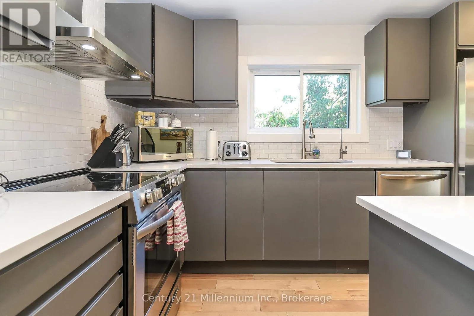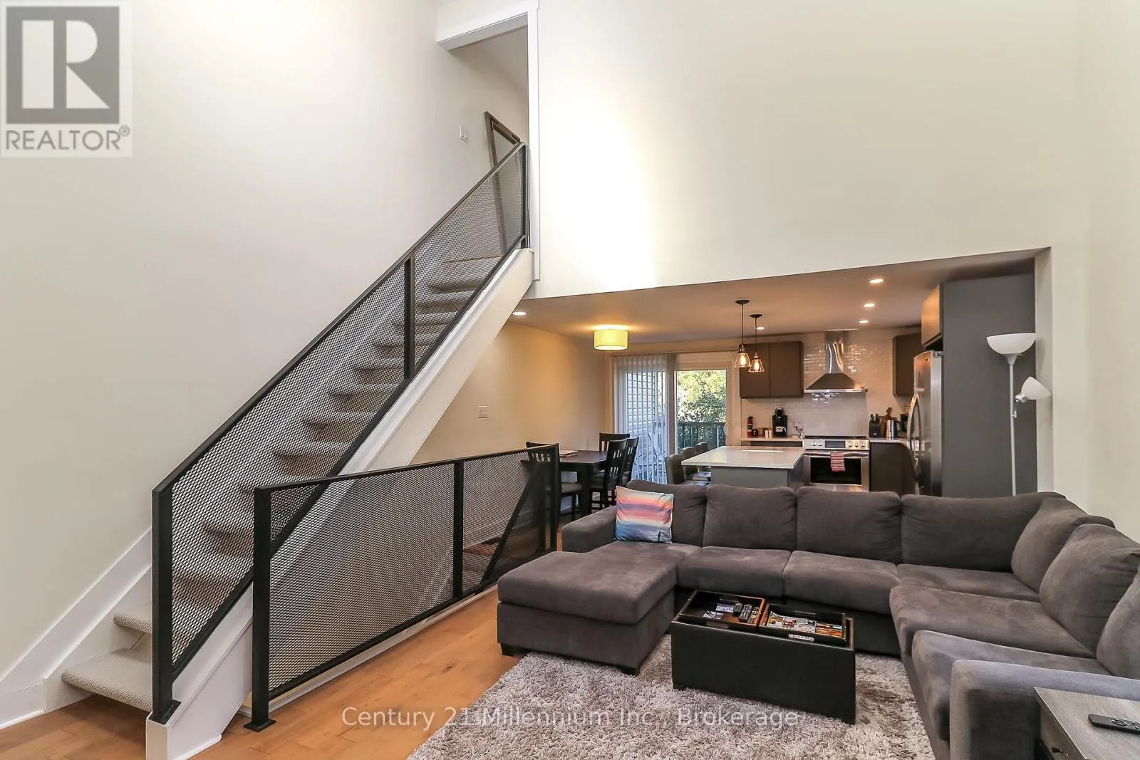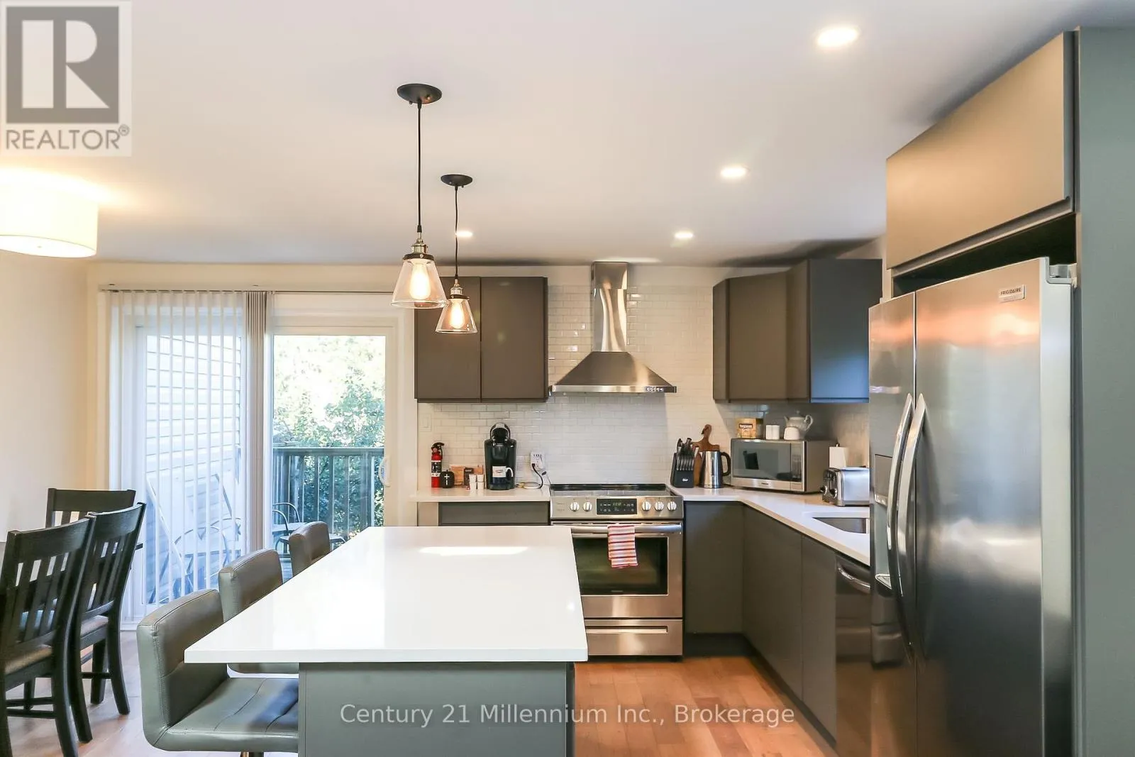 Cross Streets: Dawson/Escarpment. ** Directions: Hwy 26 to Harbour St, West on Harbour St, Right on Dawson, left on Escarpment Cres. SEASONAL FALL/WINTER LEASE (UTILITIES INCLUDED-DATES FLEXIBLE)-COMPLETELY RENOVATED 3 Bedroom/2 full bath completely furnished end unit offers exceptional privacy and modern luxury throughout. The main living space features vaulted ceilings, an open-concept design, a striking fireplace with a floor-to-ceiling rustic barn board accent wall. The gourmet kitchen has stone countertops, sleek matte finished kitchen cabinets,stainless steel appliances and a reverse osmosis water system. The space is bright and inviting thanks to an added window that fills the room with natural light. Sliding glass doors lead to a private deck with a BBQ surrounded by mature trees, perfect for apres-ski evenings. Unwind on the extra-large plush sofa and let all your stress slip away. This fully furnished Collingwood townhouse makes your move effortless,just bring your suitcase and settle right in. From day one, you'll be living the resort lifestyle with comfort and style. Ideally located close to all the private ski clubs and just minutes from Blue Mountain Village,and walking distance to Collingwood. You'll have world-class skiing, dining, shopping, and entertainment right at your doorstep. Whether you're seeking a seasonal getaway or a serene escape, this turn-key rental is a rare opportunity. One designated parking spot and 4 visitor parking spots provides lots of parking for family and visitors. Snow removal is included in rental rate. (id:27476)