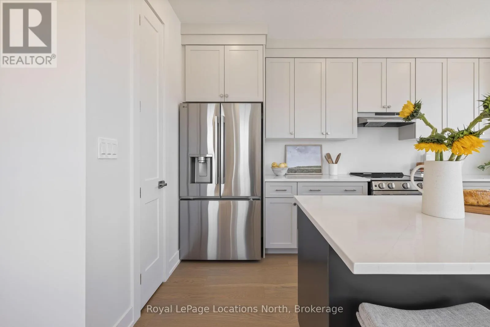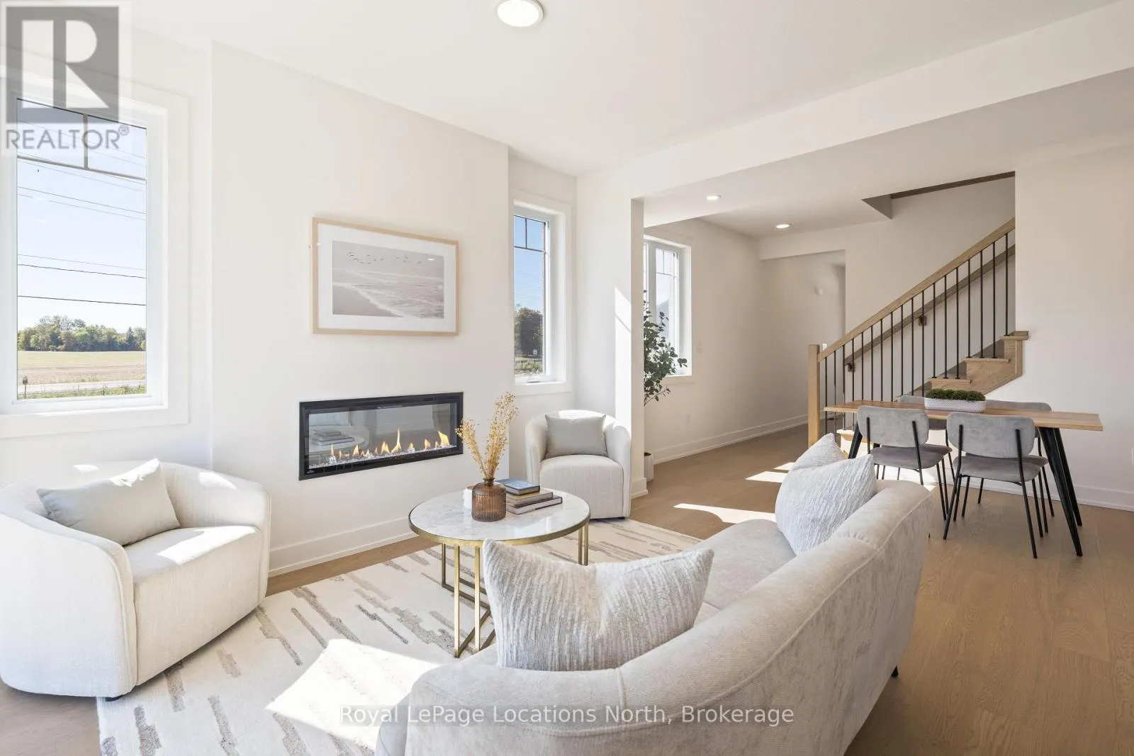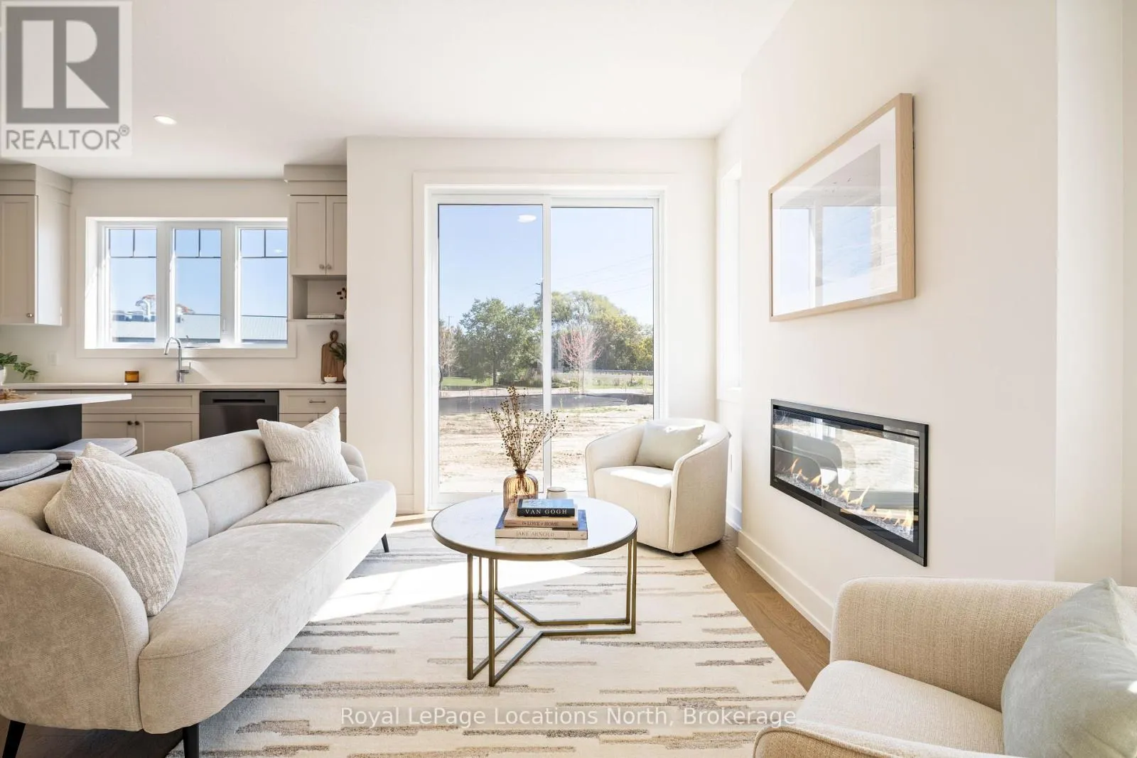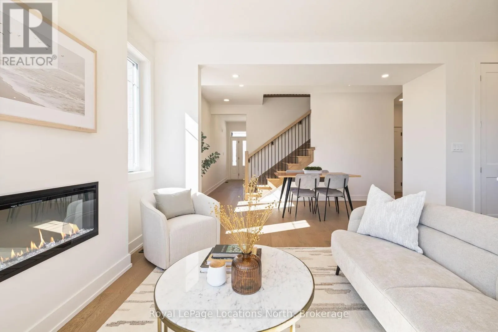 Cross Streets: Portland. ** Directions: North on Portland, East on Cooper, 2nd right on Swain, home is on your left. Welcome to Poplar Trails - Where Luxury Meets Lifestyle! This brand-new, never-lived-in three-bedroom townhouse by award-winning builder, Sunvale Homes is thoughtfully designed with high-end finishes throughout. The main floor welcomes you with warm engineered hardwood that extends through most of the second level.The gourmet kitchen features quartz countertops, brand-new stainless steel appliances, a large corner layout in a warm greige, and a custom-painted dark island. The dining area is by the striking custom-stained oak staircase, while the living room, anchored by a cozy fireplace, offers a perfect space for both relaxing and entertaining. Upstairs, the layout balances comfort and privacy: two bedrooms share a stylish main bath, while the primary suite occupies its own wing on the other side of the home. This sanctuary includes a massive walk-in closet and spa-inspired 5-piece ensuite with a soaker tub, custom glass shower, and quartz countertops. Set on one of the largest lots in the community, this home is ideal for family living, entertaining, and enjoying everything Collingwood has to offer - scenic trails, parks, boutique shops, fine dining, ski hills, golf courses, and the stunning shores of Georgian Bay. Sod coming soon to the backyard. Full Tarion warranty provided. A very poplar model - The Meadow. (id:27476)