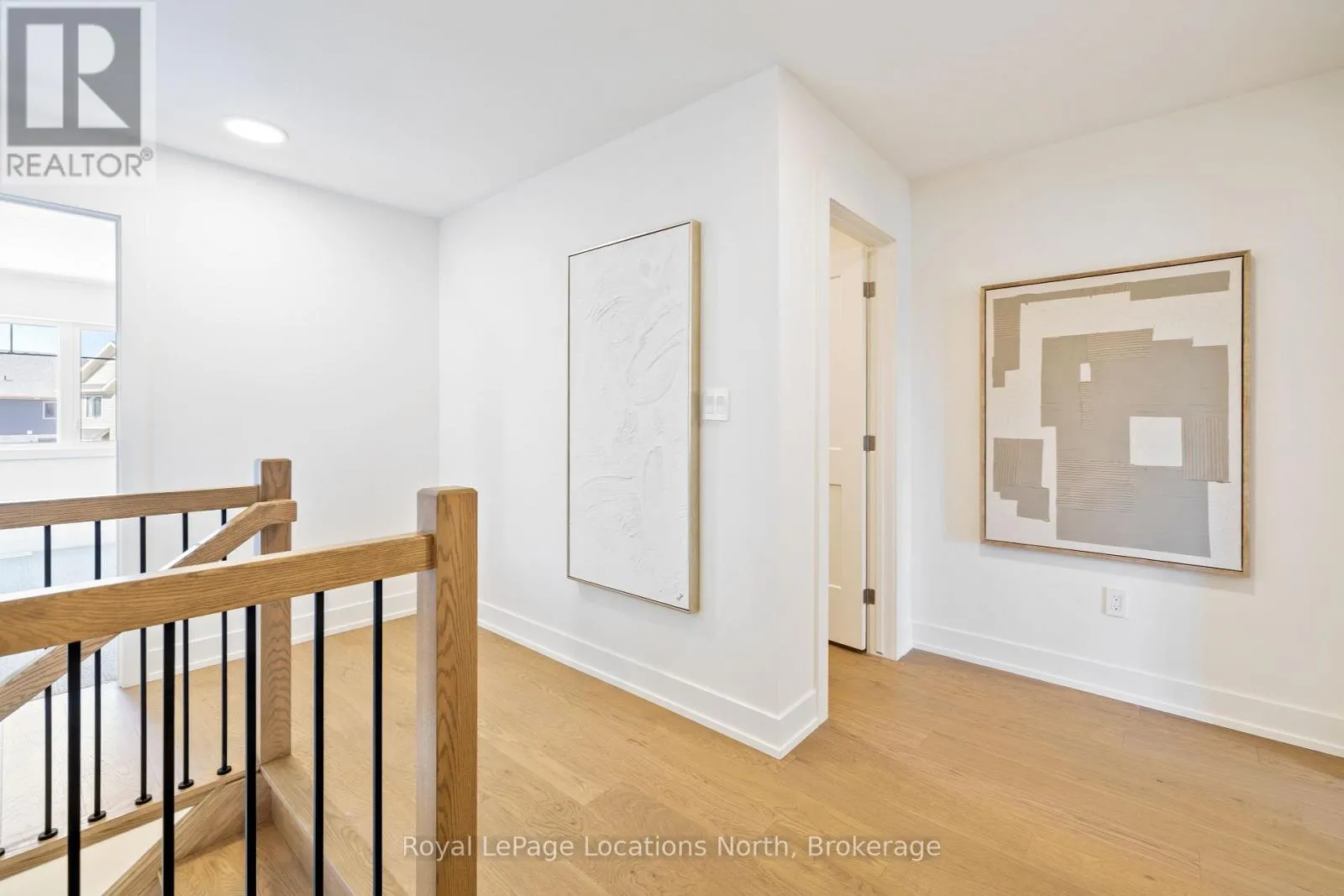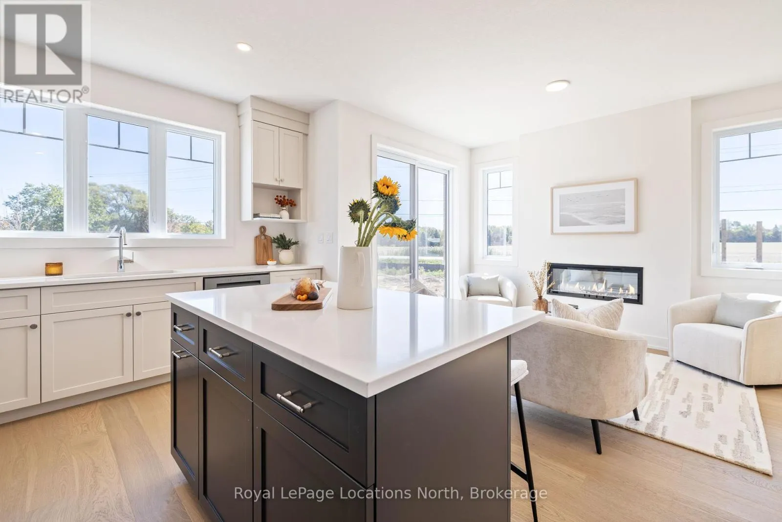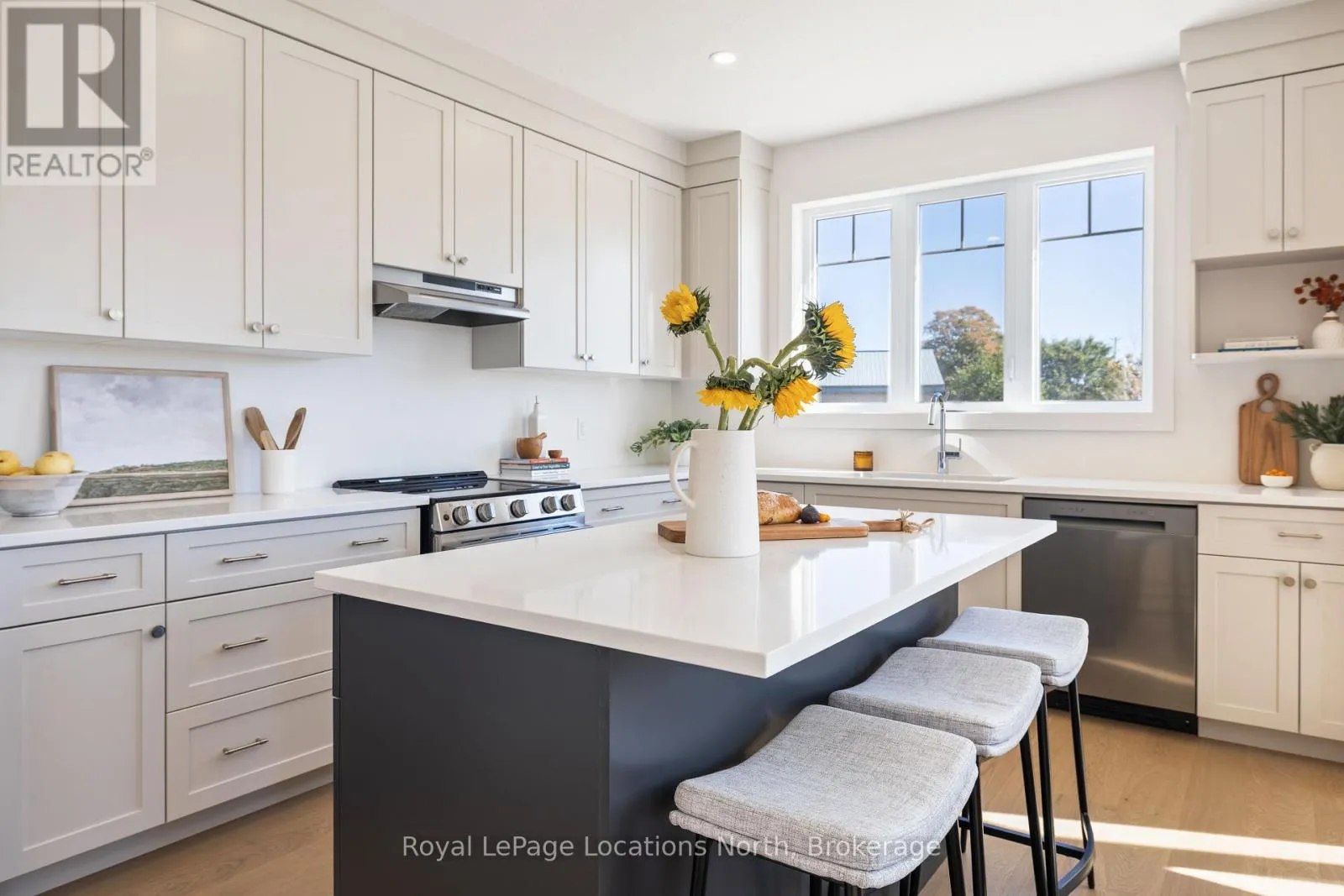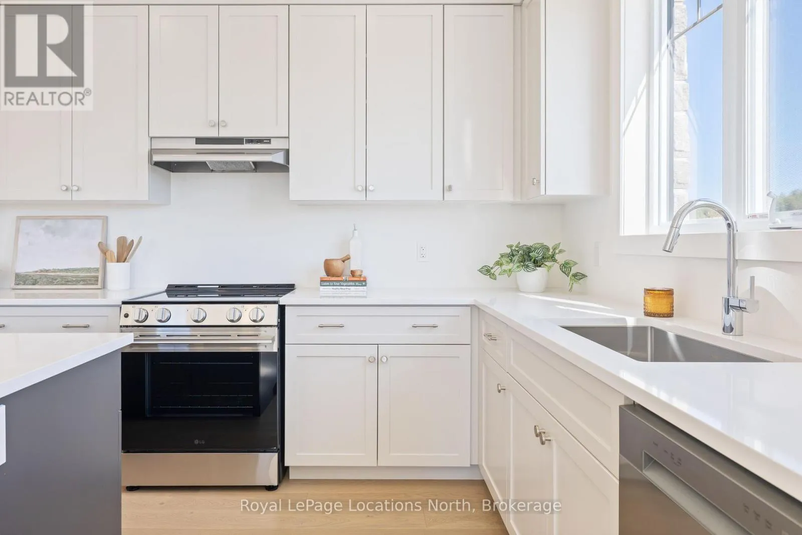 Cross Streets: Portland. ** Directions: North on Portland, East on Cooper, 2nd right on Swain, home is on your left. Welcome to Poplar Trails - Where Luxury Meets Lifestyle! This brand-new, never-lived-in three-bedroom townhouse by award-winning builder, Sunvale Homes is thoughtfully designed with high-end finishes throughout. The main floor welcomes you with warm engineered hardwood that extends through most of the second level.The gourmet kitchen features quartz countertops, brand-new stainless steel appliances, a large corner layout in a warm greige, and a custom-painted dark island. The dining area is by the striking custom-stained oak staircase, while the living room, anchored by a cozy fireplace, offers a perfect space for both relaxing and entertaining. Upstairs, the layout balances comfort and privacy: two bedrooms share a stylish main bath, while the primary suite occupies its own wing on the other side of the home. This sanctuary includes a massive walk-in closet and spa-inspired 5-piece ensuite with a soaker tub, custom glass shower, and quartz countertops. Set on one of the largest lots in the community, this home is ideal for family living, entertaining, and enjoying everything Collingwood has to offer - scenic trails, parks, boutique shops, fine dining, ski hills, golf courses, and the stunning shores of Georgian Bay. Sod coming soon to the backyard. Full Tarion warranty provided. A very poplar model - The Meadow. (id:27476)