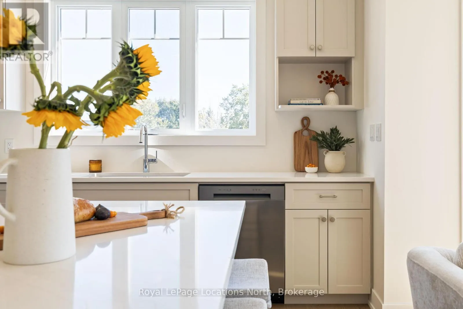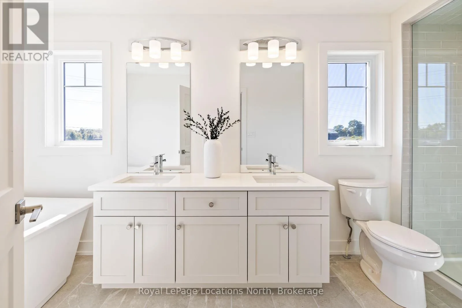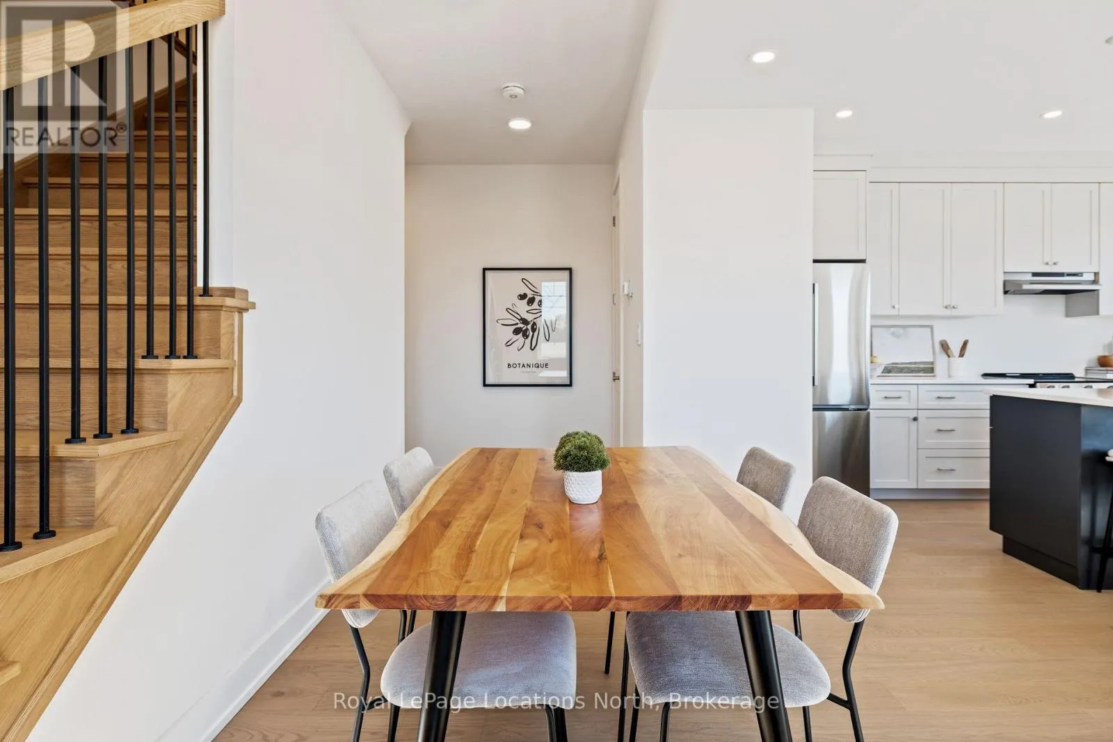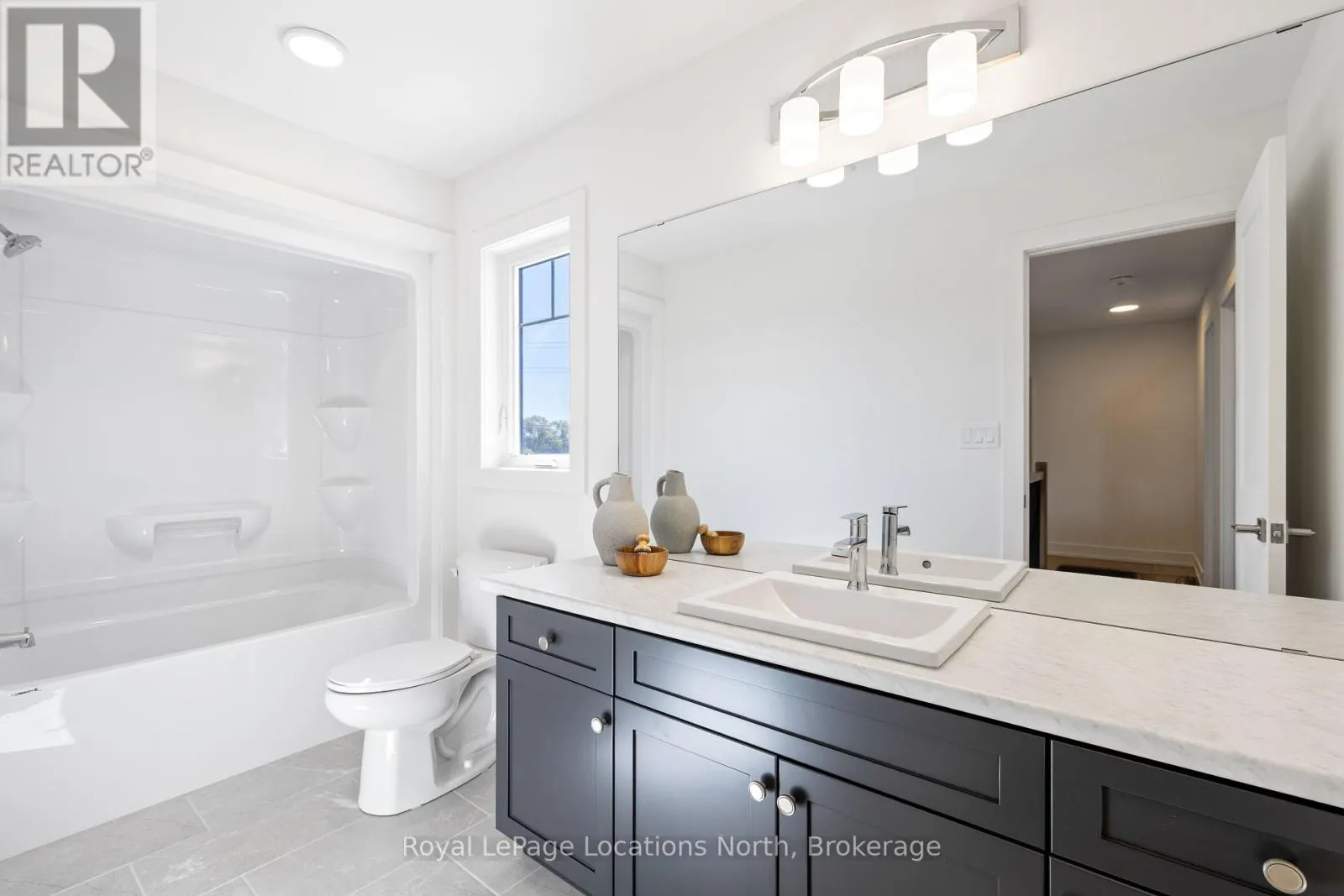 Cross Streets: Portland. ** Directions: North on Portland, East on Cooper, 2nd right on Swain, home is on your left. Welcome to Poplar Trails - Where Luxury Meets Lifestyle! This brand-new, never-lived-in three-bedroom townhouse by award-winning builder, Sunvale Homes is thoughtfully designed with high-end finishes throughout. The main floor welcomes you with warm engineered hardwood that extends through most of the second level.The gourmet kitchen features quartz countertops, brand-new stainless steel appliances, a large corner layout in a warm greige, and a custom-painted dark island. The dining area is by the striking custom-stained oak staircase, while the living room, anchored by a cozy fireplace, offers a perfect space for both relaxing and entertaining. Upstairs, the layout balances comfort and privacy: two bedrooms share a stylish main bath, while the primary suite occupies its own wing on the other side of the home. This sanctuary includes a massive walk-in closet and spa-inspired 5-piece ensuite with a soaker tub, custom glass shower, and quartz countertops. Set on one of the largest lots in the community, this home is ideal for family living, entertaining, and enjoying everything Collingwood has to offer - scenic trails, parks, boutique shops, fine dining, ski hills, golf courses, and the stunning shores of Georgian Bay. Sod coming soon to the backyard. Full Tarion warranty provided. A very poplar model - The Meadow. (id:27476)