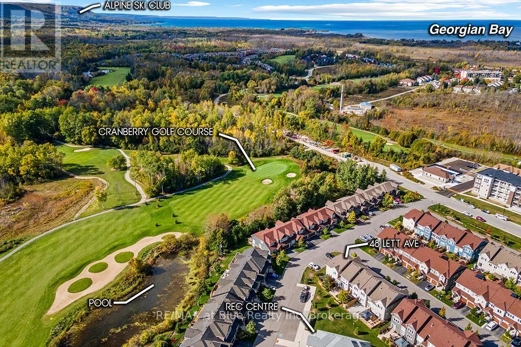 Cross Streets: Cranberry Rd E & Hwy 26. ** Directions: Hwy 26 & Cranberry Trail E to Carpenter to Lett. Welcome to 48 Lett Avenue in Blue Fairway, a quiet, friendly, enclave of freehold townhomes surrounded by the Cranberry Golf Course. Pride of ownership is evident throughout the neighborhood. This PRIVATE END UNIT features 3 bedrooms, 3 baths approx 1425 sf finished space. Unfinished lower level awaits your touches while providing lots of storage. Large covered deck allows for 3 season use , perfect for watching TV, entertaining and relaxing outdoors. California shutters throughout main level, laminate hardwood floors, stainless steel appliances in kitchen with granite countertops are a few of this home's upgrades. Main floor open concept design and 'Wall of Windows' allows for reading, watching TV. Upper level large primary bedroom is a highlight, featuring 4 pc. ensuite bath with separate shower and soaker tub. There are 3 closets in primary bedroom. Plenty of room to add a lounge chair . Additional upper bedrooms share a 5 pc. bath with double sinks, shower/tub. 3rd bedroom is perfect for a guest bedroom or home office. Attached single garage has inside entry to home. Blue Fairway is a freehold townhome complex with low monthly fee ($175) to maintain pool, gym, common elements, pool, common areas. This townhome is just steps to Recreation Centre seasonal pool, and year round gym. Common element land includes parkette and playground. This friendly neighborhood is only 10 minutes to Blue Mountain Resort, several local beaches and minutes to downtown Collingwood's shops and restaurants. Flexible possession. Seller is RRESP. (id:27476)