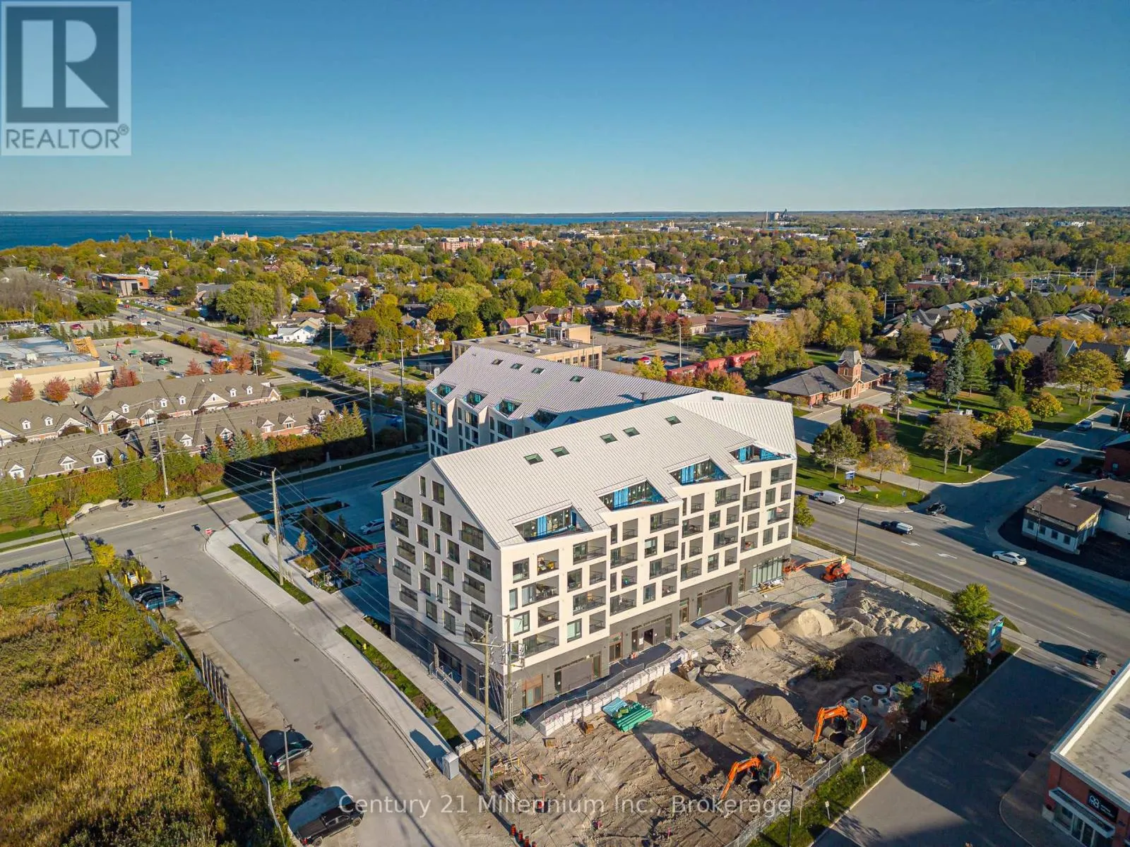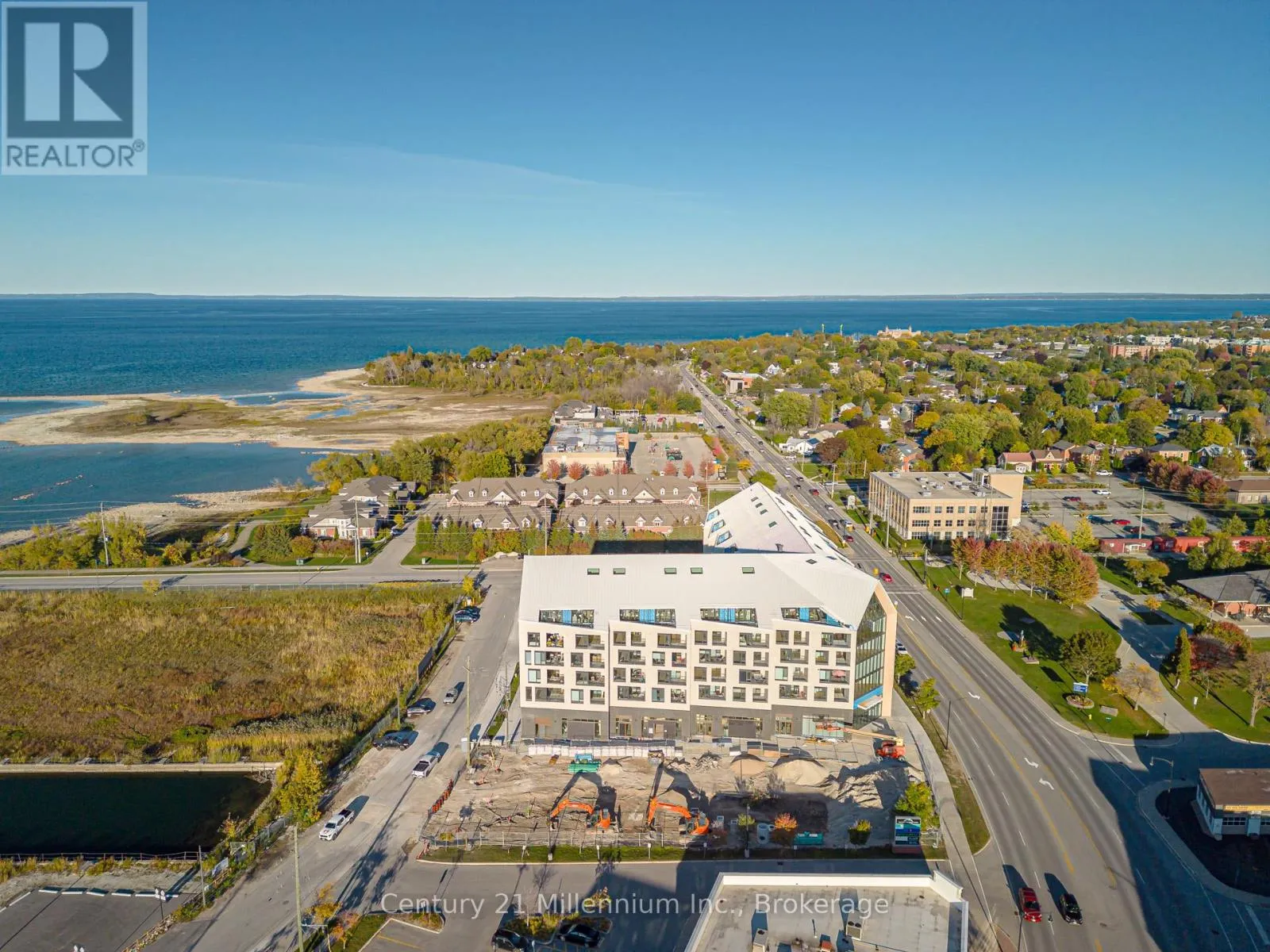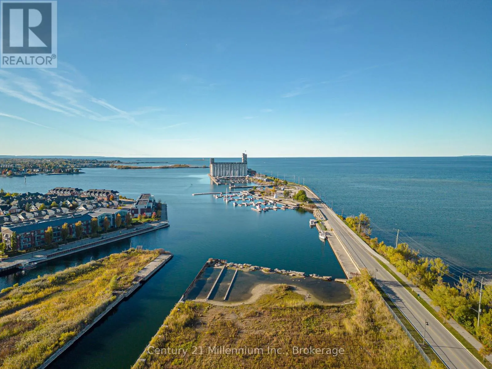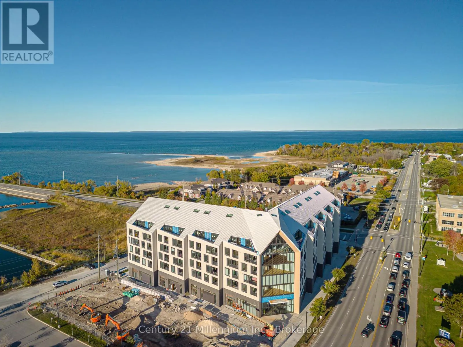 Cross Streets: Heritage Drive and Huron Street. ** Directions: From Downtown Collingwood, heat North on Hurontario Street, turn right on Huron Street, Left on Heritage Drive, left on Sidelaunch Way, to parking lot at the back of Harbour House. Unbelievable views from this brand new, bright and airy corner end unit in Collingwood's newest condominium community. Welcome to Harbour House in downtown Collingwood, across from the harbour with breathtaking views of Georgian Bay, Collingwood Terminals, and Blue Mountain Escarpment. Enjoy this upgraded 2 bedroom, 2 bathroom home with one level living including 1000 sqft of finished living space plus a 100sqft balcony. Offering a beautiful waterfall quartz countertop with matching backsplash; built-in, hidden dishwasher; modern, coastal flooring; and a desirable open-concept layout. Enjoy a fully equipped exercise room, dog wash station, guest suites, underground parking, fobbed entry and storage locker in a Scandinavian-inspired, architecturally stunning building which captures the nature-centred community perfectly. Located steps to groceries, pharmacies, restaurants, trails, live music, shops and more. A short drive to beaches, ski hills and golf. Collingwood is a true four-season playground, and whether you are looking for a place to hang your hat on weekends, or a home in which to grow your roots, this is the perfect place to soak in the amazing Southern Georgian Bay community. (id:27476)