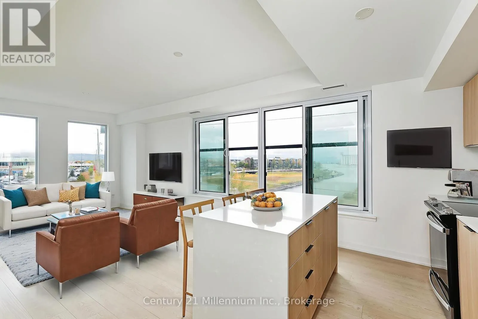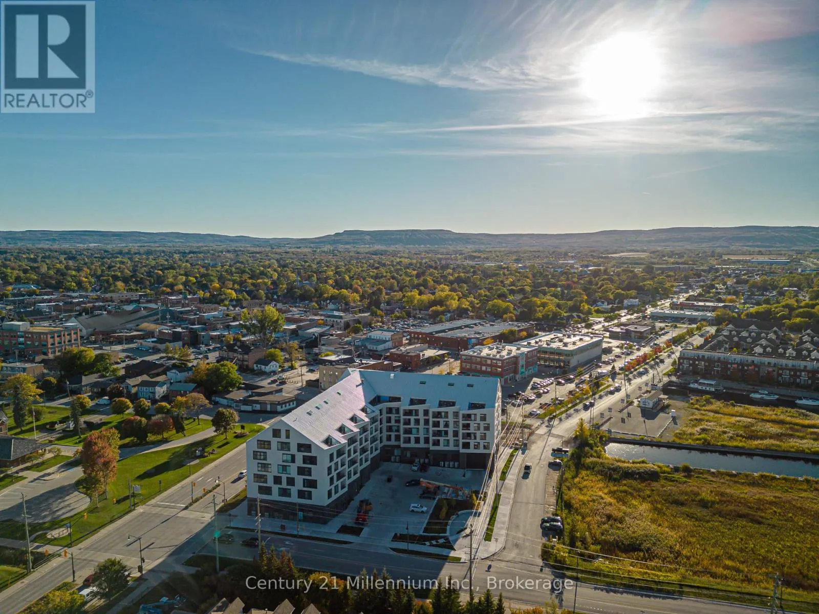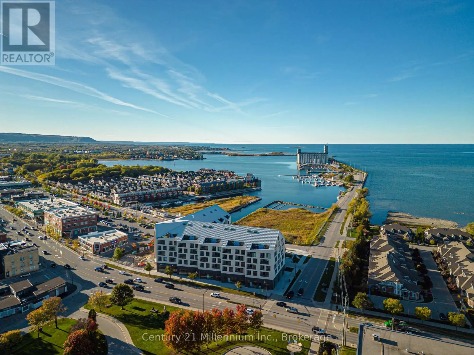 Cross Streets: Heritage Drive and Huron Street. ** Directions: From Downtown Collingwood, heat North on Hurontario Street, turn right on Huron Street, Left on Heritage Drive, left on Sidelaunch Way, to parking lot at the back of Harbour House. Unbelievable views from this brand new, bright and airy corner end unit in Collingwood's newest condominium community. Welcome to Harbour House in downtown Collingwood, across from the harbour with breathtaking views of Georgian Bay, Collingwood Terminals, and Blue Mountain Escarpment. Enjoy this upgraded 2 bedroom, 2 bathroom home with one level living including 1000 sqft of finished living space plus a 100sqft balcony. Offering a beautiful waterfall quartz countertop with matching backsplash; built-in, hidden dishwasher; modern, coastal flooring; and a desirable open-concept layout. Enjoy a fully equipped exercise room, dog wash station, guest suites, underground parking, fobbed entry and storage locker in a Scandinavian-inspired, architecturally stunning building which captures the nature-centred community perfectly. Located steps to groceries, pharmacies, restaurants, trails, live music, shops and more. A short drive to beaches, ski hills and golf. Collingwood is a true four-season playground, and whether you are looking for a place to hang your hat on weekends, or a home in which to grow your roots, this is the perfect place to soak in the amazing Southern Georgian Bay community. (id:27476)