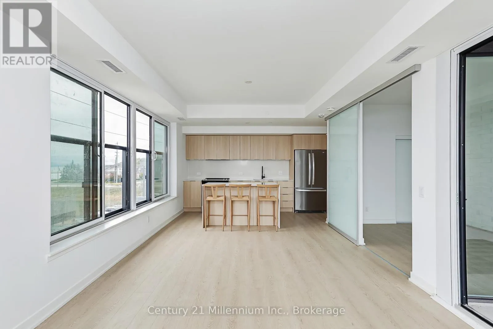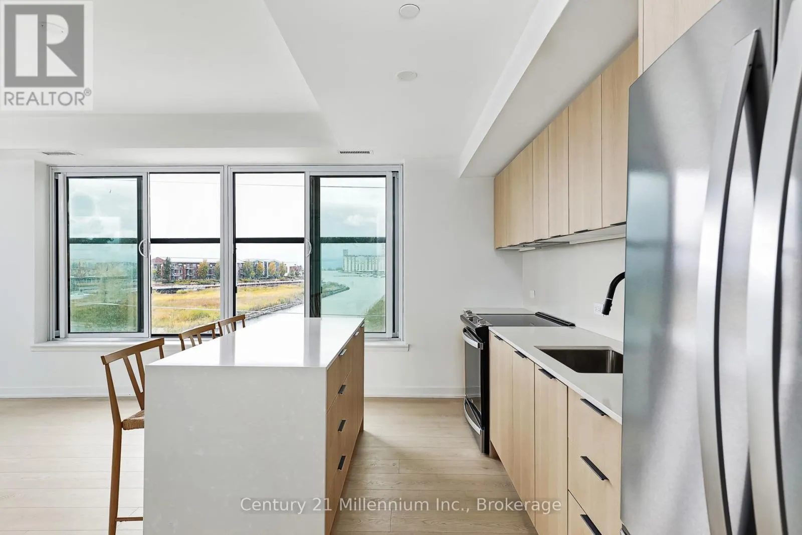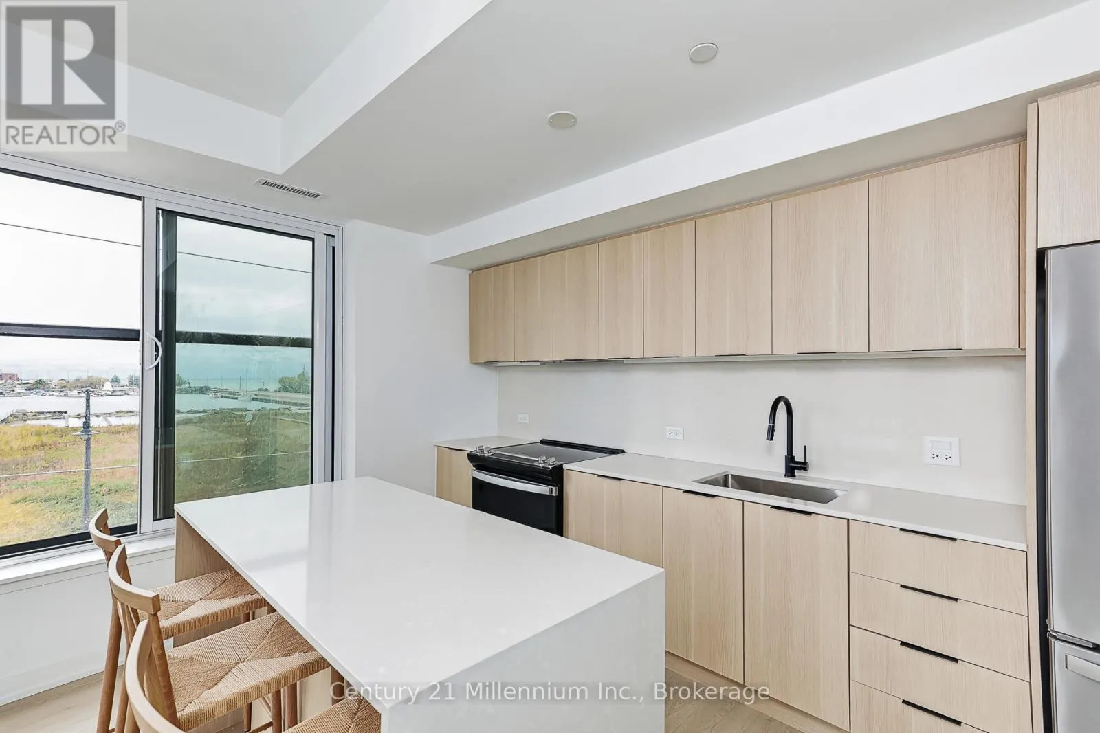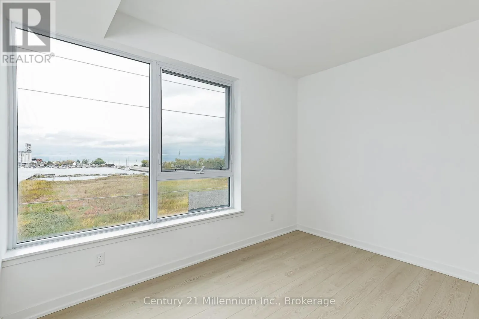 Cross Streets: Heritage Drive and Huron Street. ** Directions: From Downtown Collingwood, heat North on Hurontario Street, turn right on Huron Street, Left on Heritage Drive, left on Sidelaunch Way, to parking lot at the back of Harbour House. Unbelievable views from this brand new, bright and airy corner end unit in Collingwood's newest condominium community. Welcome to Harbour House in downtown Collingwood, across from the harbour with breathtaking views of Georgian Bay, Collingwood Terminals, and Blue Mountain Escarpment. Enjoy this upgraded 2 bedroom, 2 bathroom home with one level living including 1000 sqft of finished living space plus a 100sqft balcony. Offering a beautiful waterfall quartz countertop with matching backsplash; built-in, hidden dishwasher; modern, coastal flooring; and a desirable open-concept layout. Enjoy a fully equipped exercise room, dog wash station, guest suites, underground parking, fobbed entry and storage locker in a Scandinavian-inspired, architecturally stunning building which captures the nature-centred community perfectly. Located steps to groceries, pharmacies, restaurants, trails, live music, shops and more. A short drive to beaches, ski hills and golf. Collingwood is a true four-season playground, and whether you are looking for a place to hang your hat on weekends, or a home in which to grow your roots, this is the perfect place to soak in the amazing Southern Georgian Bay community. (id:27476)