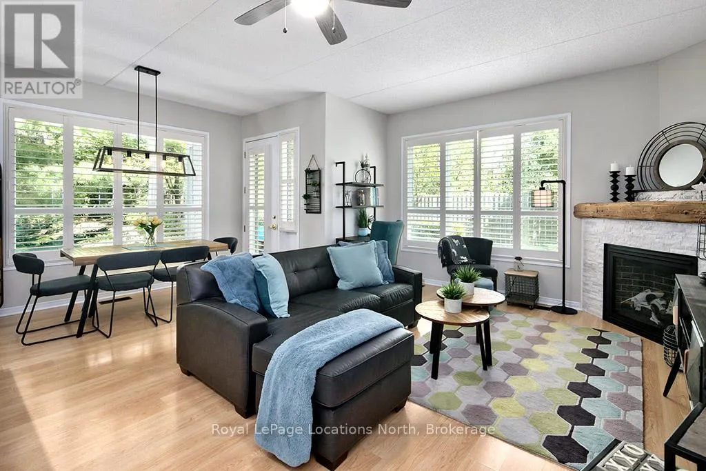Cross Streets: Suncrest Circle/Cedar Pointe. ** Directions: Hwy 26 west to Lighthouse Point. Turn left at the 2nd stop sign, then next left to the end and 918 is on the left side (ground floor). Welcome to 918 Cedar Pointe Court. This beautifully updated 3-bedroom, 2-bathroom ground-floor corner unit is located in the highly sought-after Lighthouse Point community, one of Collingwood's most desirable waterfront developments.This bright and spacious home features a modern open-concept kitchen and living area with granite counter tops, stainless steel appliances, a gas fireplace, and a convenient pantry/laundry room. The primary suite includes a 4-piece en-suite bathroom, while large windows throughout fill the space with natural light. Step outside to your generous private patio backing onto mature trees, offering peace, privacy, and the perfect space for outdoor dining or relaxation.Included with this unit is a 30-foot boat slip in the private marina, ideal for those who want to enjoy direct access to Georgian Bay.Lighthouse Point offers resort-style living with incredible on-site amenities, including indoor and outdoor swimming pools, tennis and pickleball courts, scenic waterfront walking trails, a large recreation centre with gym, games room, sauna, hot tubs, a playground, and more.Whether you're looking for a full-time home or a luxurious weekend retreat, 918 Cedar Pointe Court offers a unique opportunity to enjoy comfort, style, and an active waterfront lifestyle in one of the areas most prestigious communities. Don't miss this rare opportunity schedule your private showing today. (id:27476)
