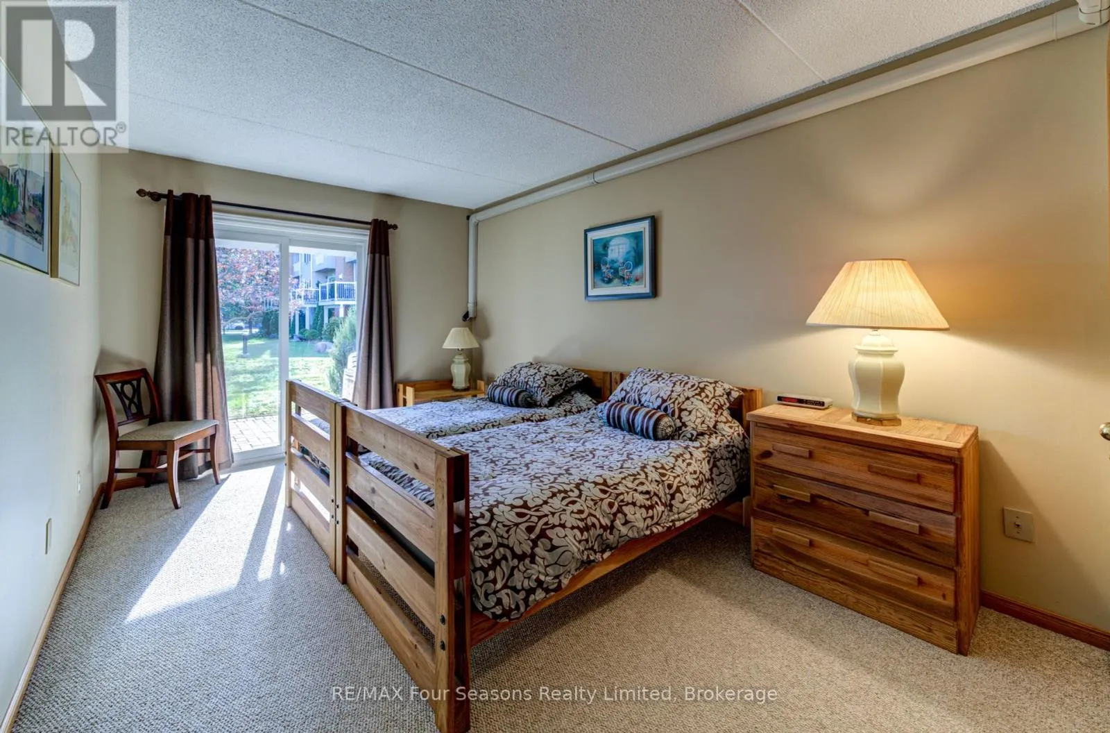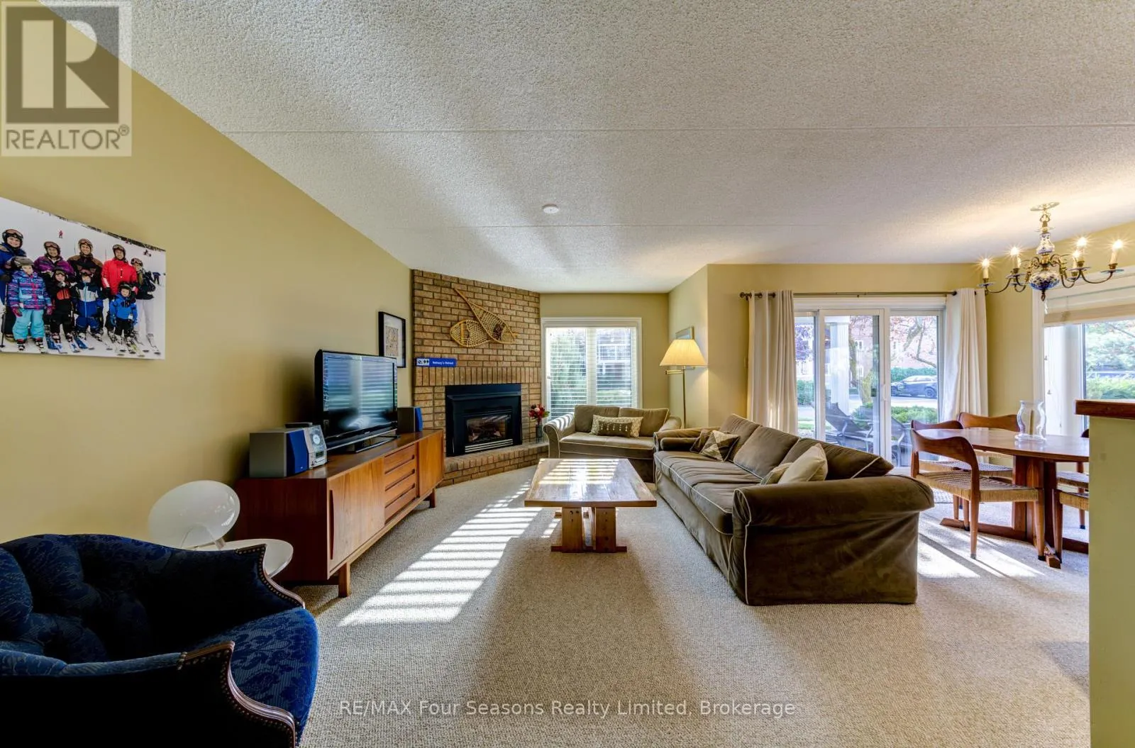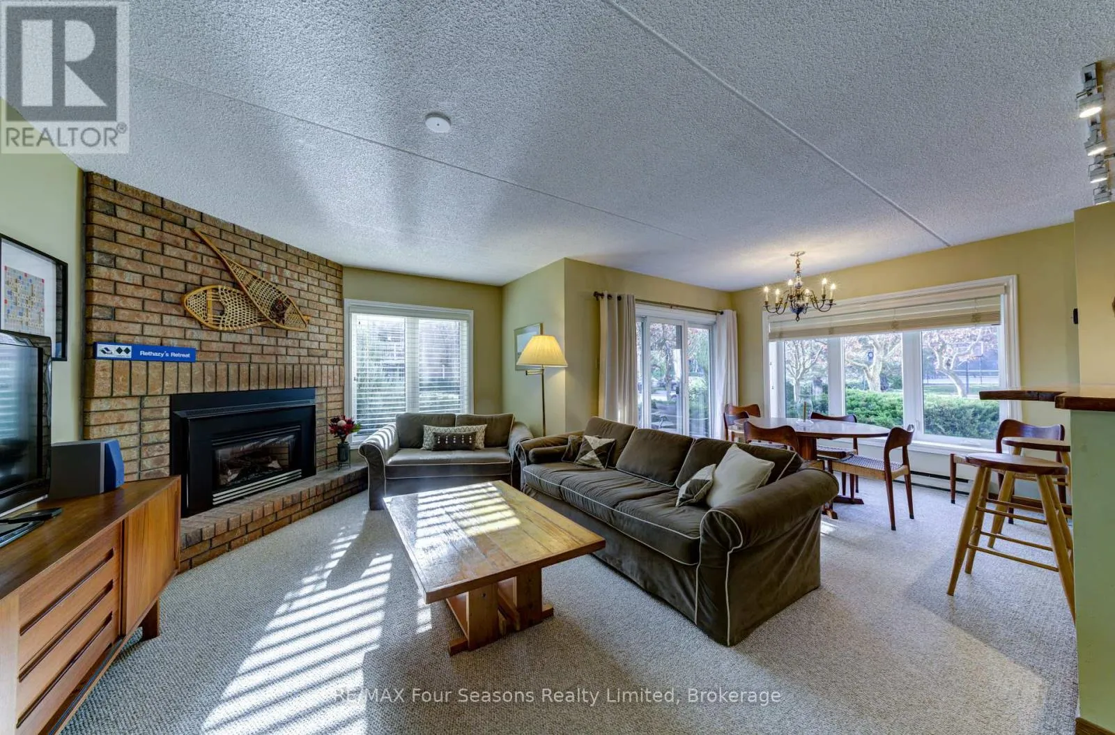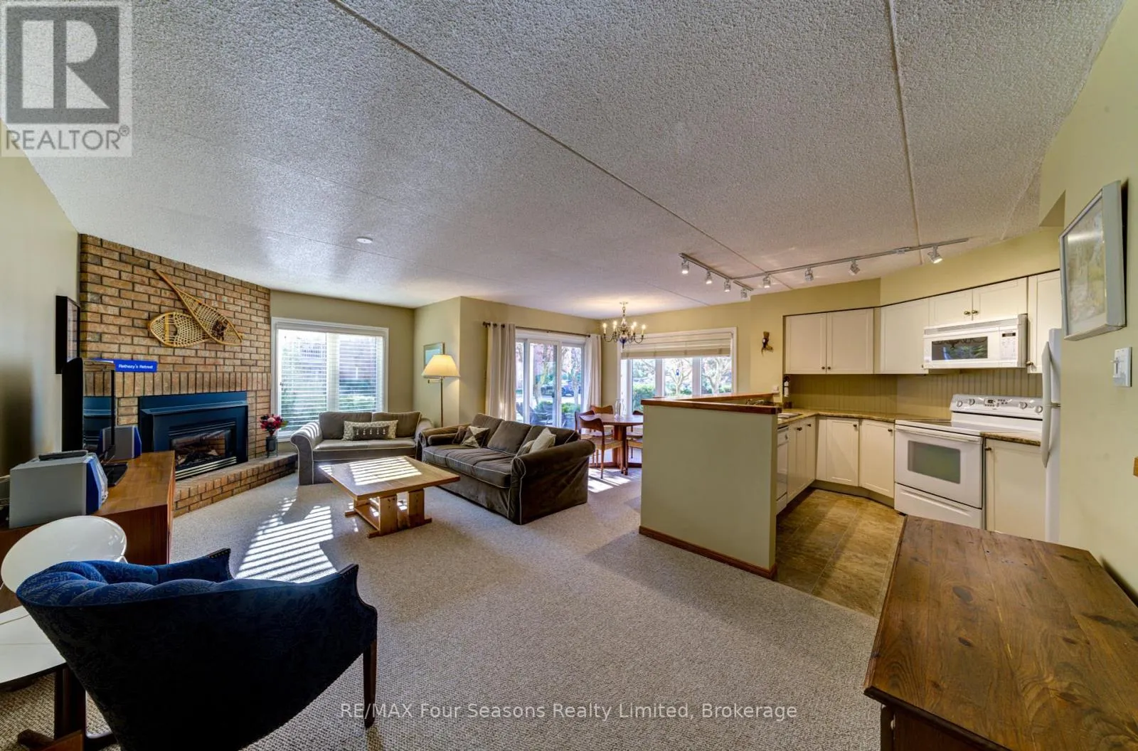 Cross Streets: Hwy 26 & Gun Club Road. ** Directions: West on Hwy 26, right onto Gun Club Road, left into Ruperts Landing on to Ramblings Way. SKI SEASON Rental - available December 1st. Dates negotiable. Step inside this warm and inviting ground level condo located in the coveted gated community of Ruperts Landing. Lovingly maintained with a nod to its original charm, you'll find three spacious bedrooms, two bathrooms, and open concept living featuring a gas fireplace, bbq, ensuite laundry, and plenty of exterior locker storage. This unit is pet-free, offering peace of mind for those with sensitivities. Just a short stroll from the amenities including a recreation centre offering an indoor pool and spa, fitness room, relaxing sauna, and a comfortable lounge with fireplace. Enjoy the convenience of nearby restaurants, shops, entertainment, outdoor activities in Collingwood and Blue Mountain. Internet & water/sewer included. Utilities in addition to rent. No pets, no smoking. Sleeping arrangements: primary bedroom - queen bed; bedroom 2 - queen bed; bedroom 3 - two twin beds. (id:27476)