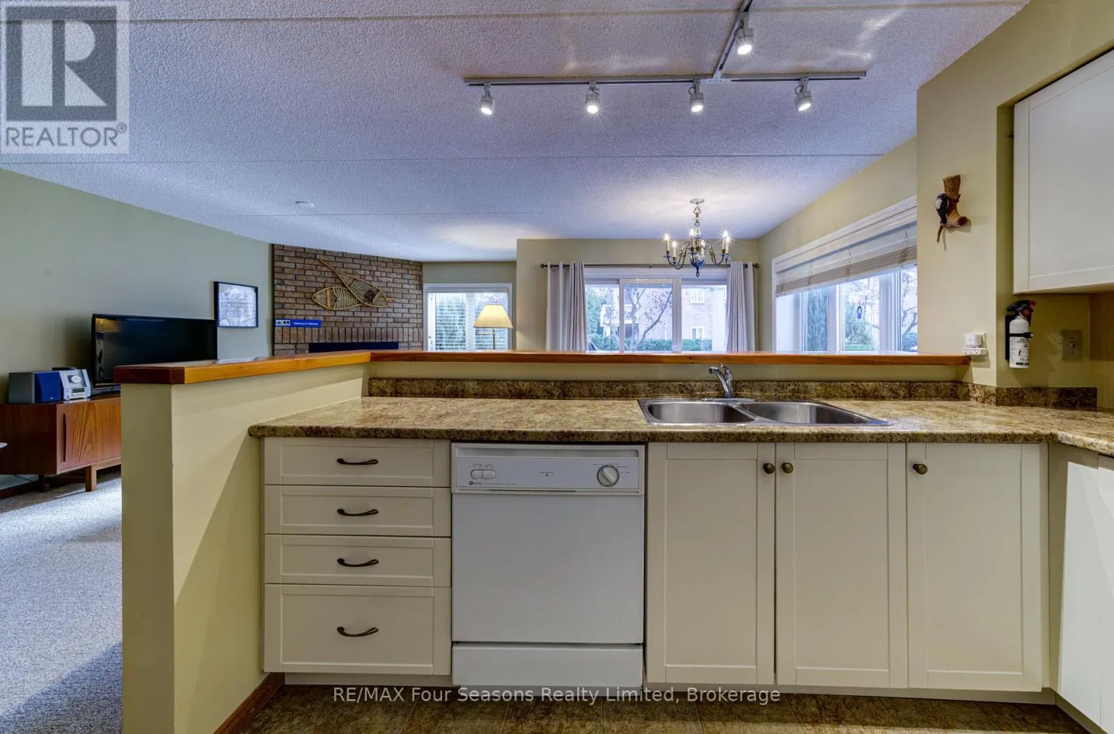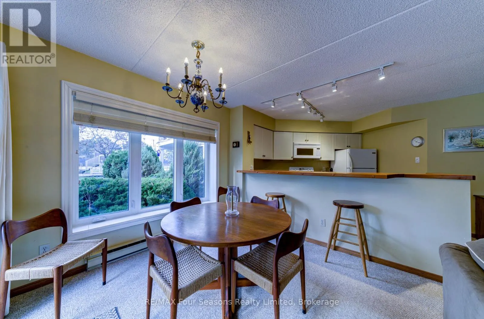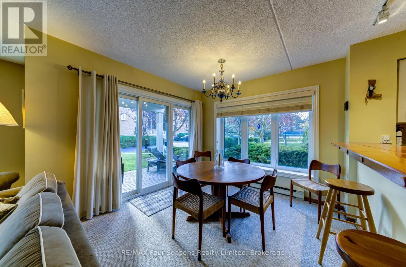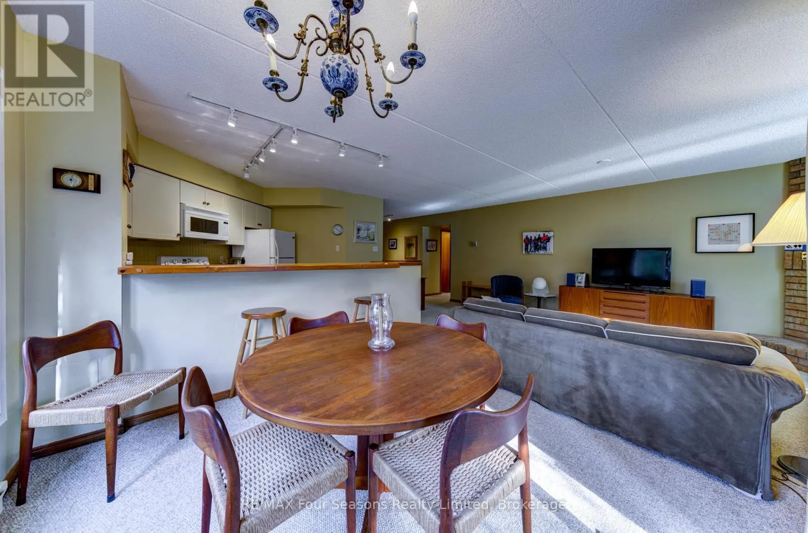 Cross Streets: Hwy 26 & Gun Club Road. ** Directions: West on Hwy 26, right onto Gun Club Road, left into Ruperts Landing on to Ramblings Way. SKI SEASON Rental - available December 1st. Dates negotiable. Step inside this warm and inviting ground level condo located in the coveted gated community of Ruperts Landing. Lovingly maintained with a nod to its original charm, you'll find three spacious bedrooms, two bathrooms, and open concept living featuring a gas fireplace, bbq, ensuite laundry, and plenty of exterior locker storage. This unit is pet-free, offering peace of mind for those with sensitivities. Just a short stroll from the amenities including a recreation centre offering an indoor pool and spa, fitness room, relaxing sauna, and a comfortable lounge with fireplace. Enjoy the convenience of nearby restaurants, shops, entertainment, outdoor activities in Collingwood and Blue Mountain. Internet & water/sewer included. Utilities in addition to rent. No pets, no smoking. Sleeping arrangements: primary bedroom - queen bed; bedroom 2 - queen bed; bedroom 3 - two twin beds. (id:27476)