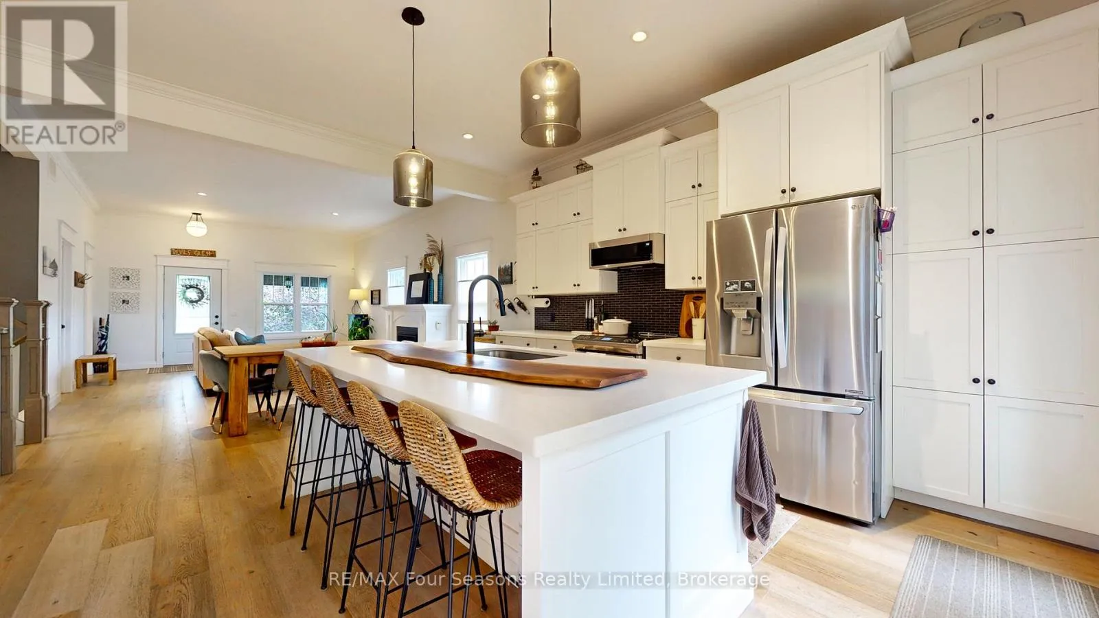 Cross Streets: Walnut/Fourth. ** Directions: First Street to Walnut, south to sign or Sixth Street to Walnut, turn north to sign. Welcome to 328 Walnut Street, a beautifully built 4-bedroom, 4-bath home constructed in 2018 by a trusted local builder. Perfectly situated on a mature, tree-lined street just steps from downtown Collingwood, this property offers the ideal blend of comfort, style, and location. Step inside to discover a bright and airy open-concept main floor featuring 10-foot vaulted ceilings, engineered hardwood flooring, and a cozy gas fireplace. The modern kitchen showcases quartz countertops, quality cabinetry, and an ideal layout for entertaining. The main floor primary suite offers comfort and convenience, complete with a stylish ensuite bath. Upstairs, a versatile loft bedroom with a 3-piece bath makes the perfect guest suite, office, or games room. The fully finished lower level adds even more living space, featuring a family room with walk-out to the private backyard, two additional bedrooms, a full bath, and ample storage. Enjoy warm summer evenings on the spacious deck overlooking a peaceful, treed yard-a rare find so close to town. Located within walking distance to boutiques, restaurants, schools, and parks, and just minutes to ski hills, golf courses, trails, and Georgian Bay, this home offers the best of Collingwood living-comfort, quality, and convenience. Experience modern living in a mature, sought-after neighbourhood. 328 Walnut Street is ready to welcome you home. (id:27476)