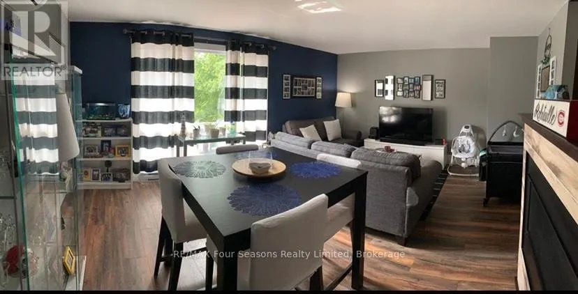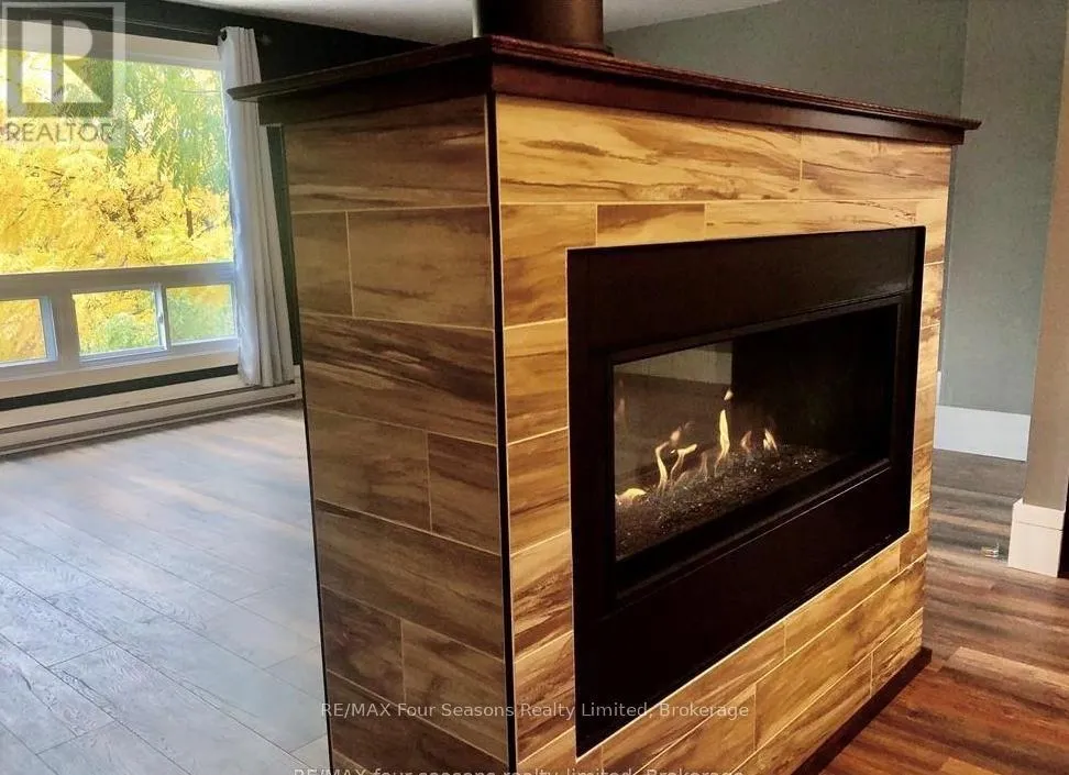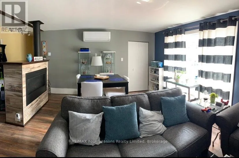 Hurontario, west on Fourth Street to #29 Annual rental - Utilities extra - Available DEC 1, 2025 - Gorgeous, 2 bedroom, 1 bath upper level apartment in downtown Collingwood, just steps to the many shops, restaurants and public transit. This unit has newer windows and additional insulation. The large living/ dining room area has a gas fireplace and large closet for storage. The kitchen offers touchless sink faucet with a soap dispenser, gas stove with electric oven, dishwasher and fridge. The 4-pce bath has porcelain tile and wrought iron accessories. The laundry room offers a sink, washer & dryer. 2 large bedrooms. The primary bedroom has a walkout to a deck. Unit has a whole home surge protector on the electrical panel. Lawn care & snow removal included. Heating is baseboard & gas f/p and air conditioner for the warmer months. 1 parking space for the tenant. Pictures from 2020 (id:27476)
