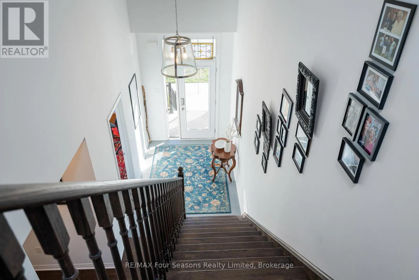Cross Streets: Poplar Sideroad to Portland to Kirby, turn right, to Dey Dr. on Left. ** Directions: South from Cwood on Hurontario left on Lockhart to Dey Dr. Prime Location! A 2 minute walk to Admiral Collingwood Public School and across from the newly designed, under construction Wilson-Sheffield Community Park with a full size basketball court, 3 tennis courts, 6 pickleball courts, a playground, gazebo and trails. This 4-bedroom, 3-bathroom, 2-storey home offers an exceptional family lifestyle in a desirable neighbourhood. The main floor features a primary bedroom with a private 5-piece ensuite, a second bedroom with a 4-piece semi-ensuite bath, and an inviting great room with vaulted ceilings that creates a bright and open living space. The upper level includes a spacious loft, two large bedrooms, and a 4-piece bathroom with a separate WC bath/toilet area. Offering 1,926 sq' of finished living space plus a large unfinished basement with plenty of potential for future development. The exterior includes a large fully fenced backyard with a maintenance-free patio, perfect for outdoor entertaining, and a welcoming front porch overlooking the park. An outstanding family home in an excellent location-close to schools, shopping, skiing, hiking trails, dog park and the waterfront-all just a short drive away. (id:27476)