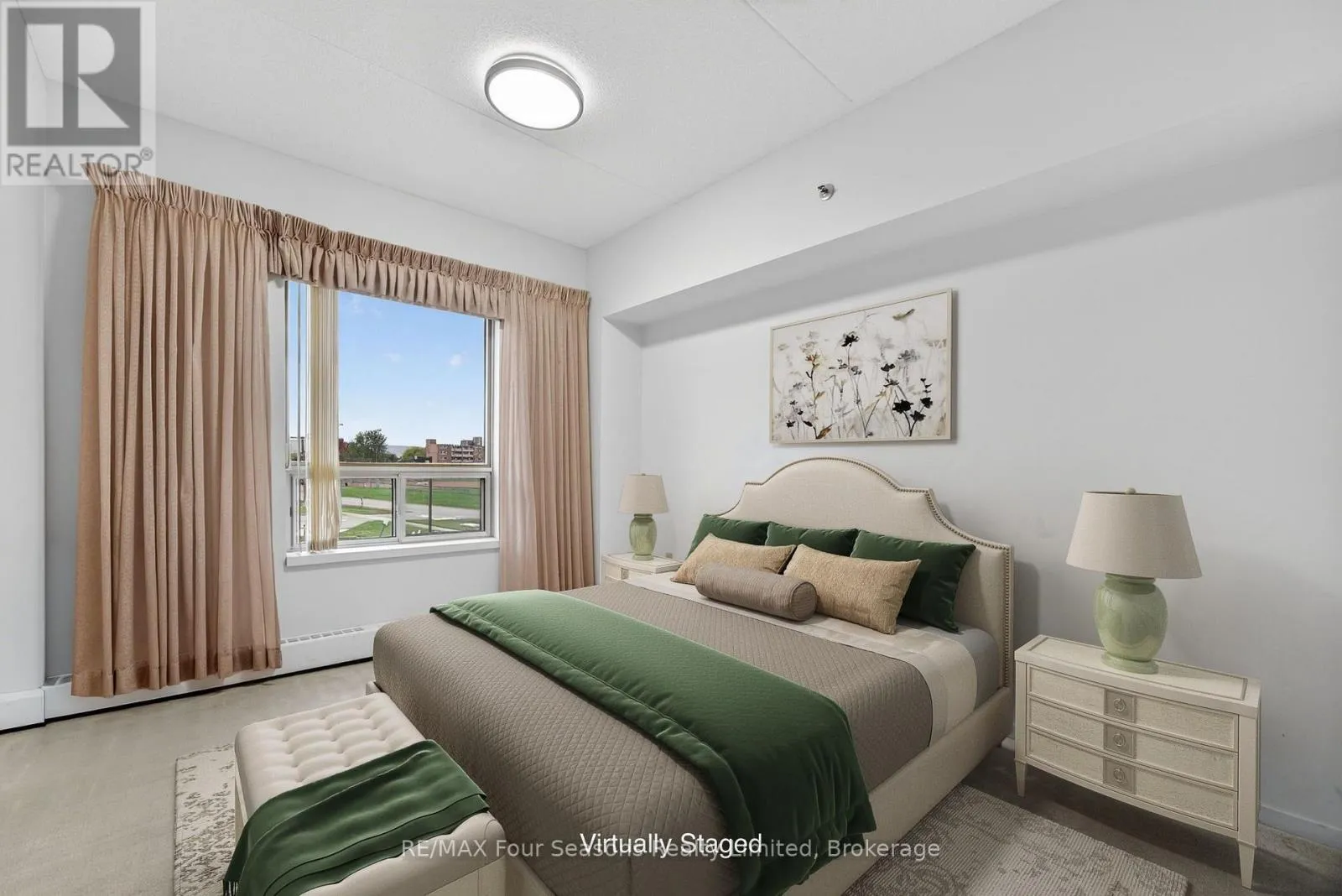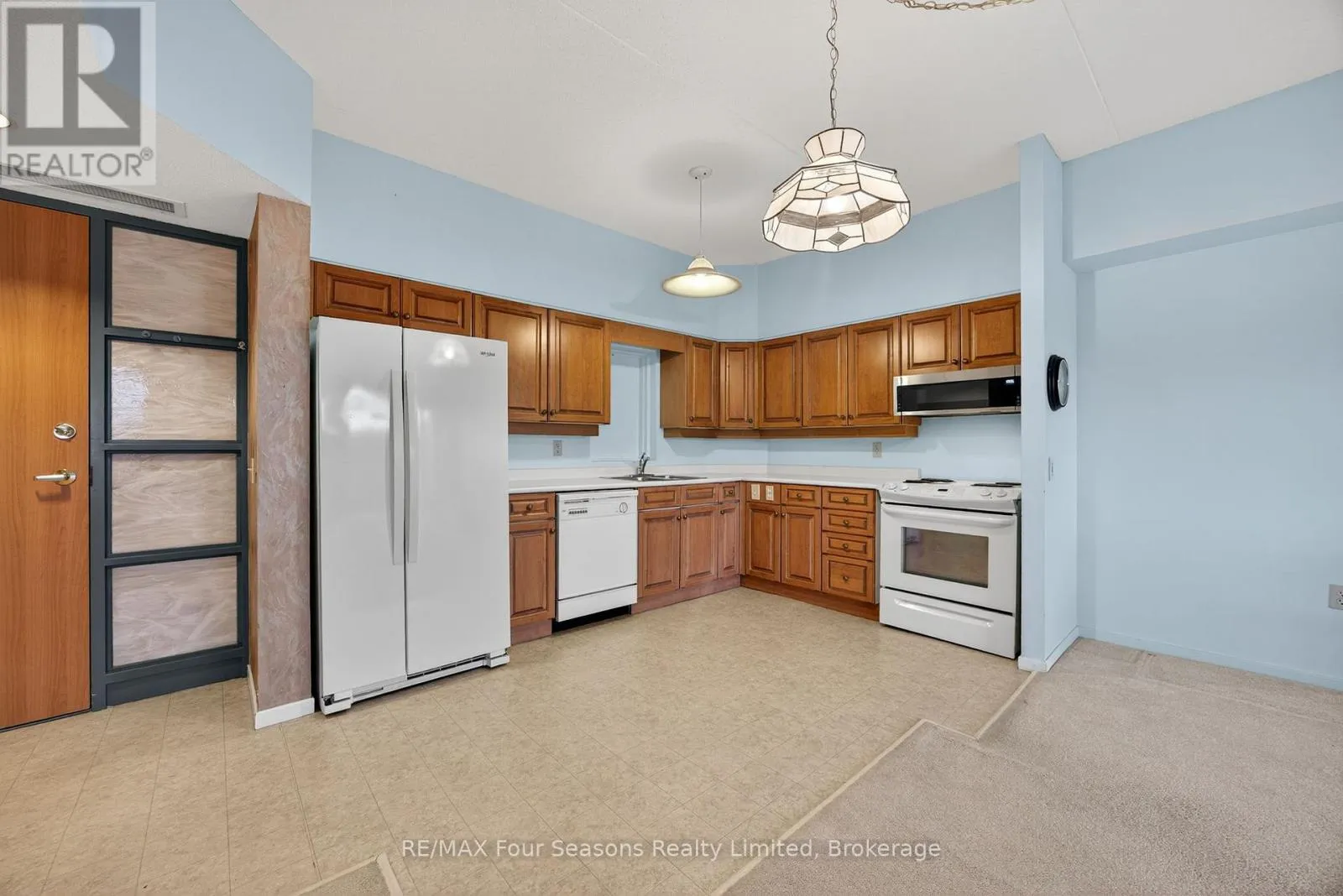 Cross Streets: Hume Street and Raglan Street. ** Directions: Hume Street to Raglan Street #49. Welcome to Sunset Suites - Affordable, Comfortable Retirement Living in the Heart of Collingwood! Enjoy an outstanding blend of lifestyle, location, and peace of mind in this vibrant adult community. This bright second-floor suite offers a northwest exposure with picturesque views of the ball diamond, the escarpment, and beautiful evening sunsets. The open-concept layout creates a warm and welcoming flow. The kitchen includes a cozy breakfast nook and overlooks the spacious living room - perfect for entertaining or relaxing. The primary bedroom offers generous space, a large closet, and a convenient walk-through to the oversized bathroom. A second bedroom provides plenty of natural light and storage, ideal for guests or a hobby room. Additional highlights include two hallway closets offering ample storage, plus an in-suite stacked washer and dryer for added convenience. The monthly fee of $855.30 covers heat, hydro, water, sewer, property taxes, and property maintenance, ensuring easy budgeting and carefree living. Residents enjoy excellent shared amenities including outdoor balconies on every floor, lounge areas, a multi-purpose room, and a movie room. A full calendar of weekly social events fosters a friendly, welcoming community atmosphere. Photos are virtually staged. Book your private showing today and experience the Sunset Suites lifestyle for yourself! (id:27476)
