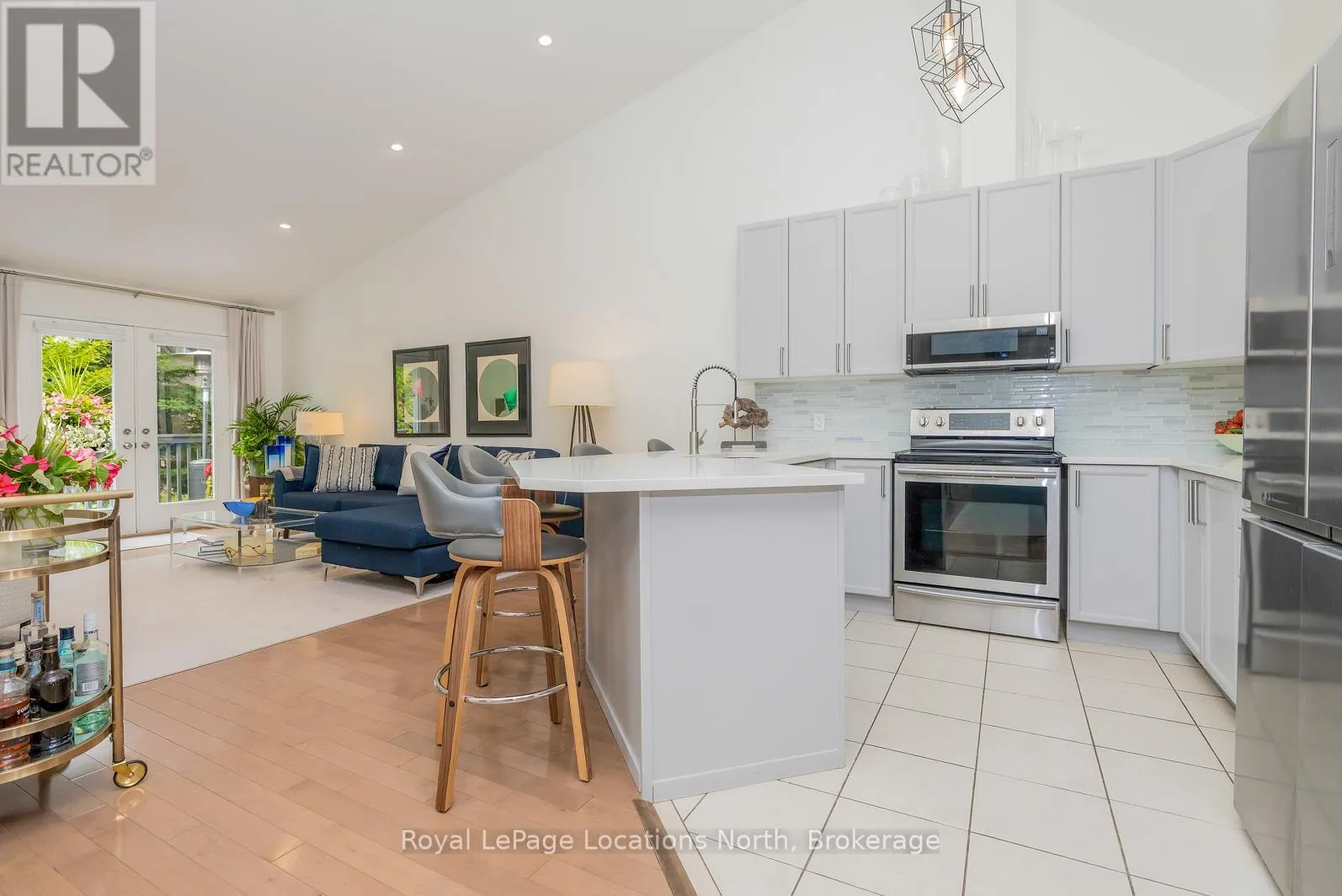 Cross Streets: Hwy 26 and Cranberry Trail West. ** Directions: HWY 26 to Cranberry Trail West to the end Green Briar Drive. Stylish Townhouse Beside the Golf Course in Collingwood. Incredible price, with over 2,150sq ft of finished space, and lots of storage, and a garage, this low-maintenance townhome combines modern upgrades with a prime location, making it a truly exceptional place to call home! This beautifully upgraded 3-bedroom townhouse is perfectly situated beside one of Collingwood's premier golf courses. Offering an upscale and easy lifestyle, this home is ideal for year-round living, a snowbird's off season home or as a weekend retreat. The main floor features a bright, open-concept layout with an upgraded kitchen boasting modern cabinetry, quartz countertops, and stainless steel appliances. The dining and living areas flow seamlessly, creating a warm and inviting space for entertaining or relaxing. Renovated bathrooms showcase contemporary finishes, adding a touch of luxury to everyday living. On the main floor you'll find 2 spacious bedrooms filled with natural light, including a primary suite with a private ensuite. The fully finished lower level offers a third bedroom, and versatile in-law suite with its own living area, bedroom, and bathroom, perfect for extended family, guests, or rental potential. Relax on your private deck for morning coffee or step outside and enjoy easy access to walking trails, golf, skiing, and the vibrant shops and restaurants of downtown Collingwood. For those who like to swim, or have guests who do, an outdoor pool is included in the amenities. Easy living, (and easy leaving) if you're primed for travel. Come see what Collingwood has to offer! (id:27476)