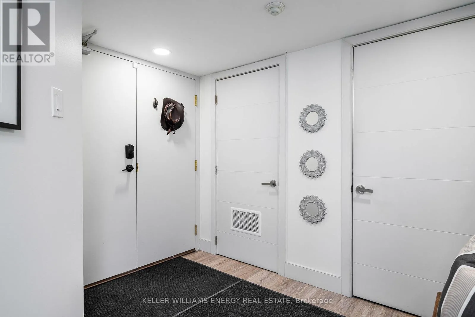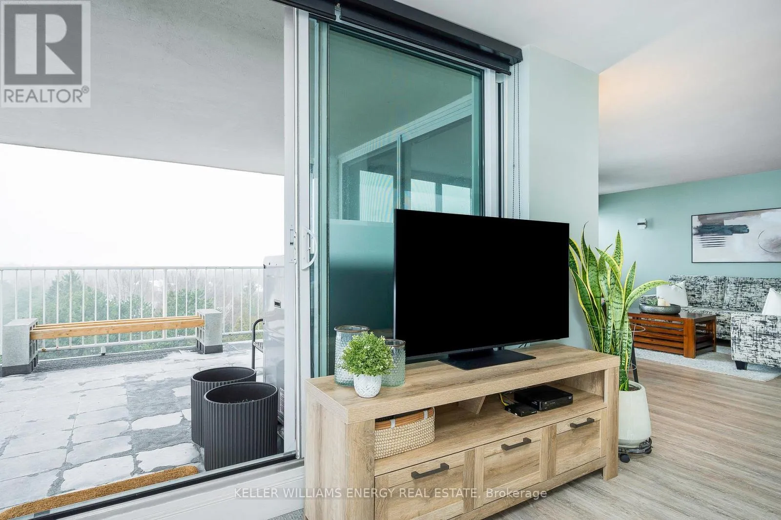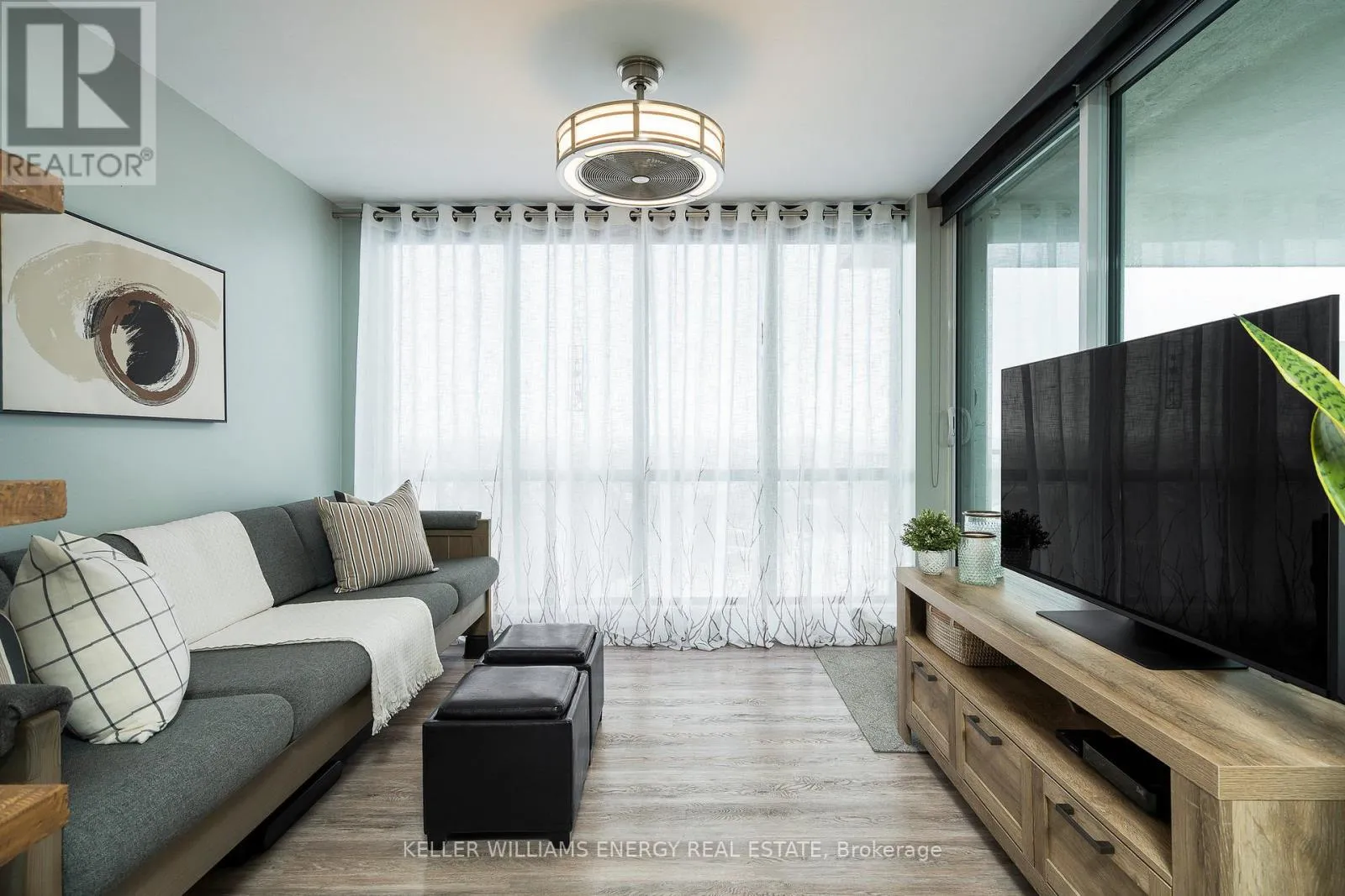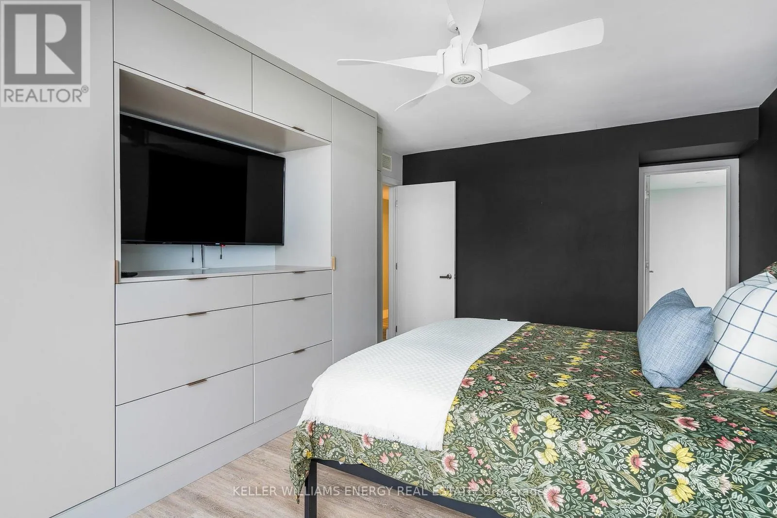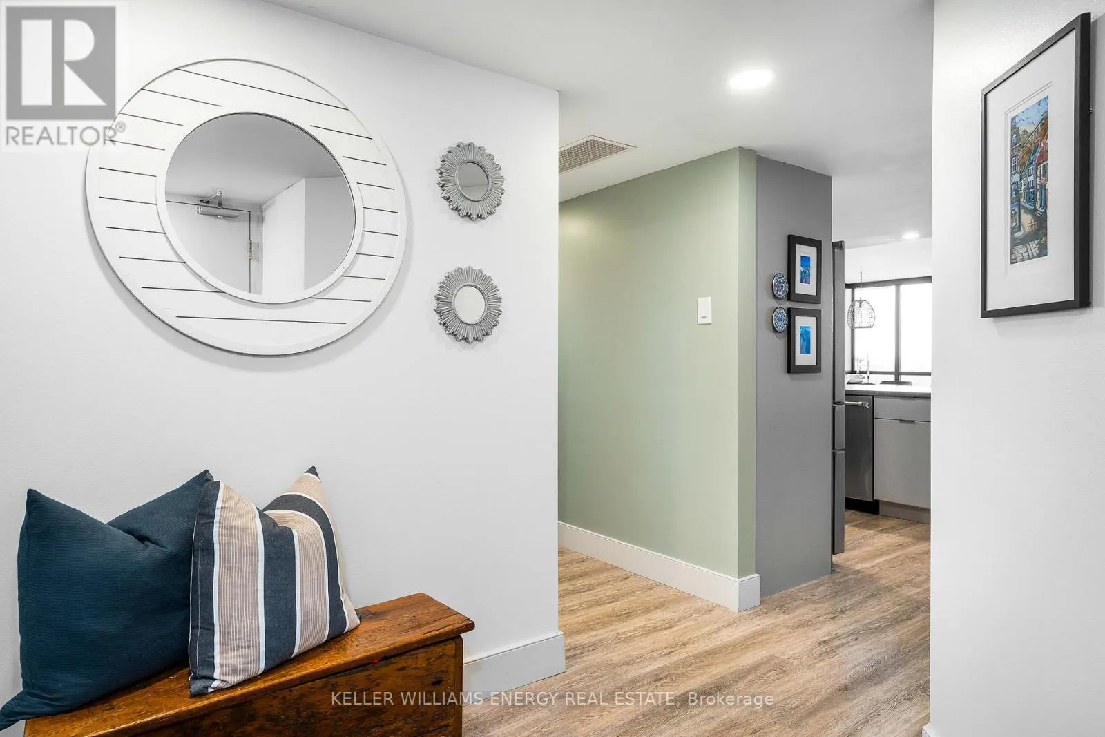 Cross Streets: Hwy 26 & Gun Club Road. ** Directions: Hwy 26 to Gun Club Road. Right on Gun Club Road. Left into the Rupert's Landing entrance gates. Welcome to the lifestyle you've been waiting for in Collingwood's prestigious Rupert's Landing. If you're ready to leave behind the hustle of city life - but not your love of style, space, and connection - this rarely offered 2-bed, 2-bath corner suite in one of Collingwood's premier gated waterfront communities is the perfect match. Perched on the 9th floor of Bayview Tower, this light-filled 1,300 sq ft residence offers panoramic views of Georgian Bay and the Niagara Escarpment, including front-row seats to Blue Mountain's seasonal fireworks from your private covered balcony. Inside, discover design that feels both elevated and effortlessly livable. Floor-to-ceiling windows flood the open-concept living, dining, and den spaces with natural light. The chef's kitchen features quartz waterfall counters, stainless appliances, custom cabinetry, and a built-in beverage centre. Whether you're entertaining or relaxing by the gas fireplace, every detail has been thoughtfully curated. The spacious primary suite includes modern built-ins, a designer feature wall, and a renovated 3-piece ensuite with walk-in shower and double-sink vanity. The second bedroom is bright and versatile-ideal for guests or a stylish home office. A generous foyer, in-suite laundry, and ample storage complete this refined, maintenance-free home. Enjoy access to an exclusive recreation centre with indoor pool, sauna, gym, racquetball court, tennis/pickleball courts, and a private marina with direct bay access for kayaking and paddleboarding. Minutes to Downtown Collingwood's boutique shops, restaurants, golf, trails, and ski hills, plus the year-round resort amenities of Blue Mountain. Collingwood is celebrated as a four-season playground on the shores of Georgian Bay-offering an unmatched blend of nature, community, and comfort. Don't miss this rare opportunity to experience waterfront living at its finest. (id:27476)