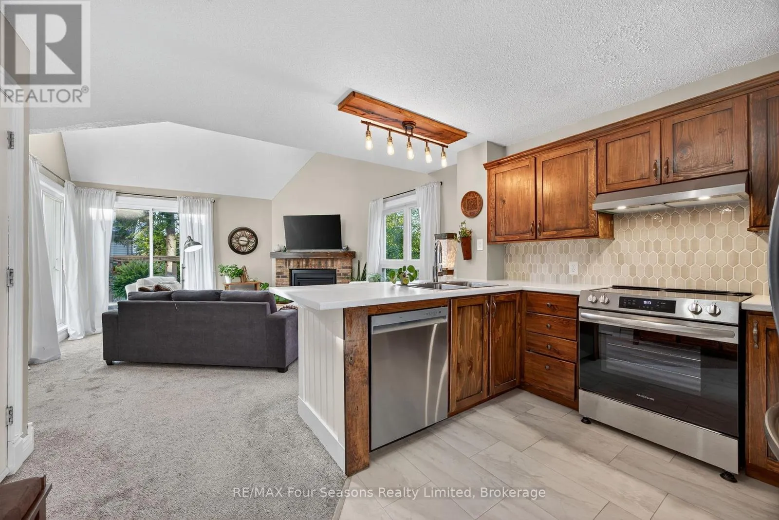 Cross Streets: Highway 26 and Trott Blvd. ** Directions: Highway 26 to Trott Blvd to #51. Welcome to Unit 164 at 51 Trott Boulevard - a stylish and thoughtfully designed condo in the heart of Collingwood, offering comfort, convenience and character. This bright residence features 2 spacious bedrooms and 2 full baths, providing an excellent layout for either full-time living or a flexible getaway. The open-concept living area invites you in with a seamless flow from kitchen to dining to living room, ideal for entertaining or relaxed lounging. A cozy gas fireplace anchors the space, while large windows capture natural light and create a warm, inviting ambiance. Step out onto your private balcony and enjoy fresh air. In your kitchen you'll appreciate modern finishes and practical touches: sleek cabinetry, stainless steel appliances, and ample counter space. Both bedrooms provide restful retreats, with the primary suite boasting its own ensuite bath for added privacy and convenience. The second bedroom is generously sized and is served by a full bath - perfect for guests, overnight visitors or a home-office setup. Additional highlights include in-unit laundry, an assigned parking space, and proximity to a variety of amenities - from downtown Collingwood's restaurants and shops to hiking trails, beaches and winter-sport destinations in the region. Whether you're seeking a lock-and-leave second home or a full-time residence with lifestyle appeal, this unit offers an elegant, low-maintenance option in a vibrant community. Don't miss your chance to call Unit 164 at 51 Trott Boulevard your next home-base in Collingwood. (id:27476)
