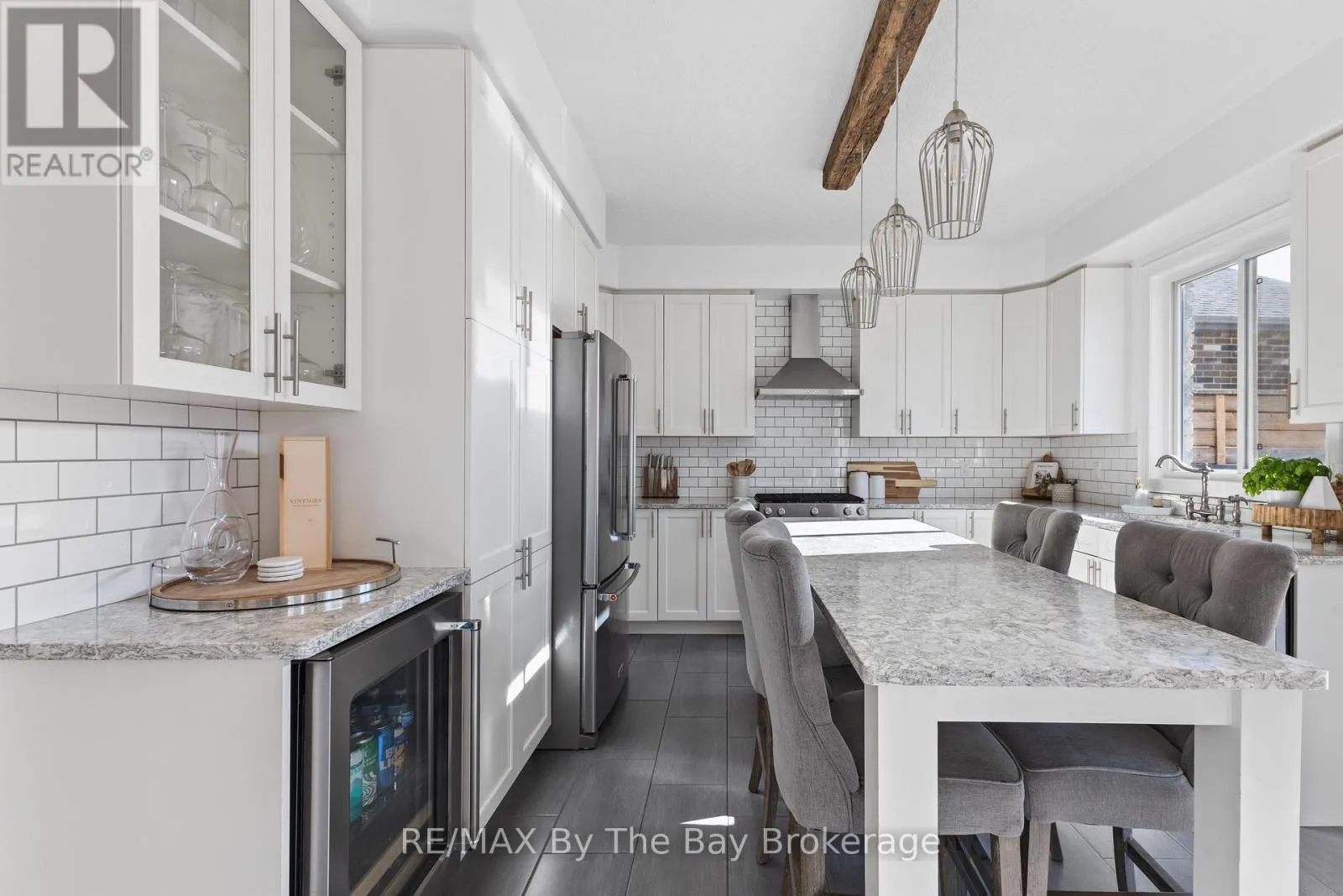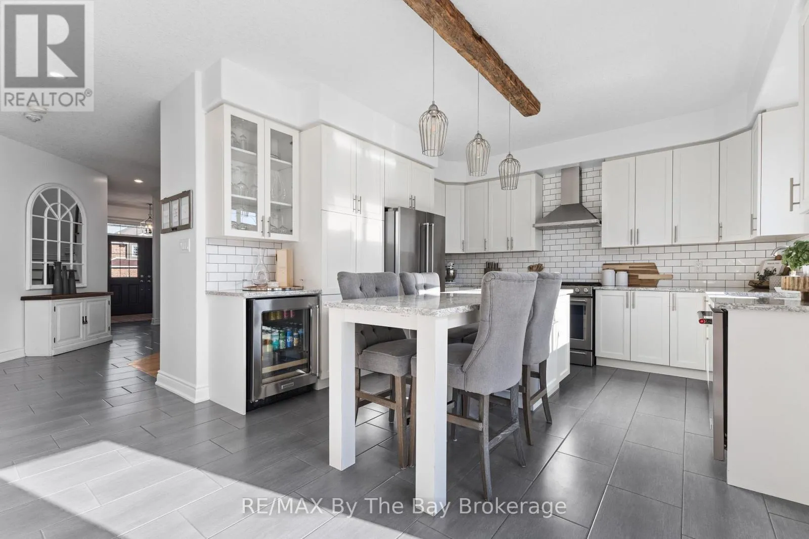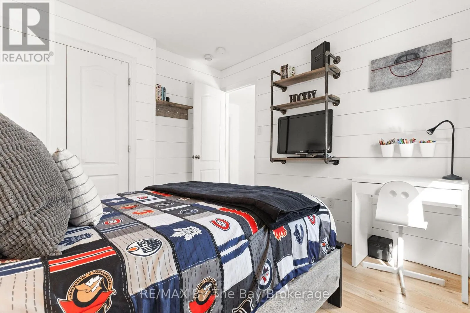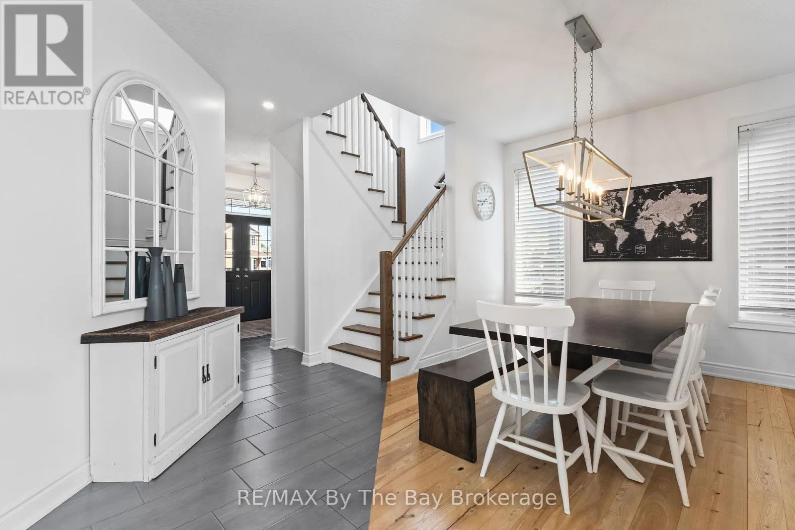 Cross Streets: High St / Poplar Sdrd. ** Directions: Poplar Sdrd to Clark St to Lockerbie Cres. Welcome to 77 Lockerbie Crescent, a beautifully designed 4-bedroom, 3.5-bathroom home in the sought-after Mountaincroft community. From the moment you step inside the foyer you are greeted with the rustic charm that sets the tone of this home. The shiplap details, reclaimed Ash flooring, and barn beams create a cozy yet sophisticated atmosphere. The gourmet kitchen features Kitchen Aid Professional series appliances, Cambria Quartz counters, a kitchen island with table-style seating and so much more. Walk out to the expansive deck with built in seating and salt water hot tub, enjoy the convenience of a gas fire table & BBQ hook up. The upper level boasts 4 bright & spacious bedrooms, a large main bath with a double sink & additional linen closet. The primary bedroom offers stunning mountain views, a board and batten accent wall, and custom double barn doors leading to a walk-in closet and luxurious 5-piece ensuite with a glass shower, soaker tub, and double vanity. The fully finished basement was designed with ultimate entertainment for adults and children in mind, featuring luxury vinyl plank flooring, knotty pine shiplap walls and ceiling, and a full 3-piece bath with a custom glass shower. A playroom with a climbing rope, a rock climbing wall, and an under-stair nook, while sports fans will appreciate the mini hockey arena room - both versatile rooms that can be easily suited to your own families needs. Entertain guests at the custom wet bar with a granite countertops and island with bar seating. This exceptional home offers a rare combination of rustic elegance, family-friendly features, and modern upgrades, all in an unbeatable Collingwood location. Don't miss your chance to make it yours! (id:27476)