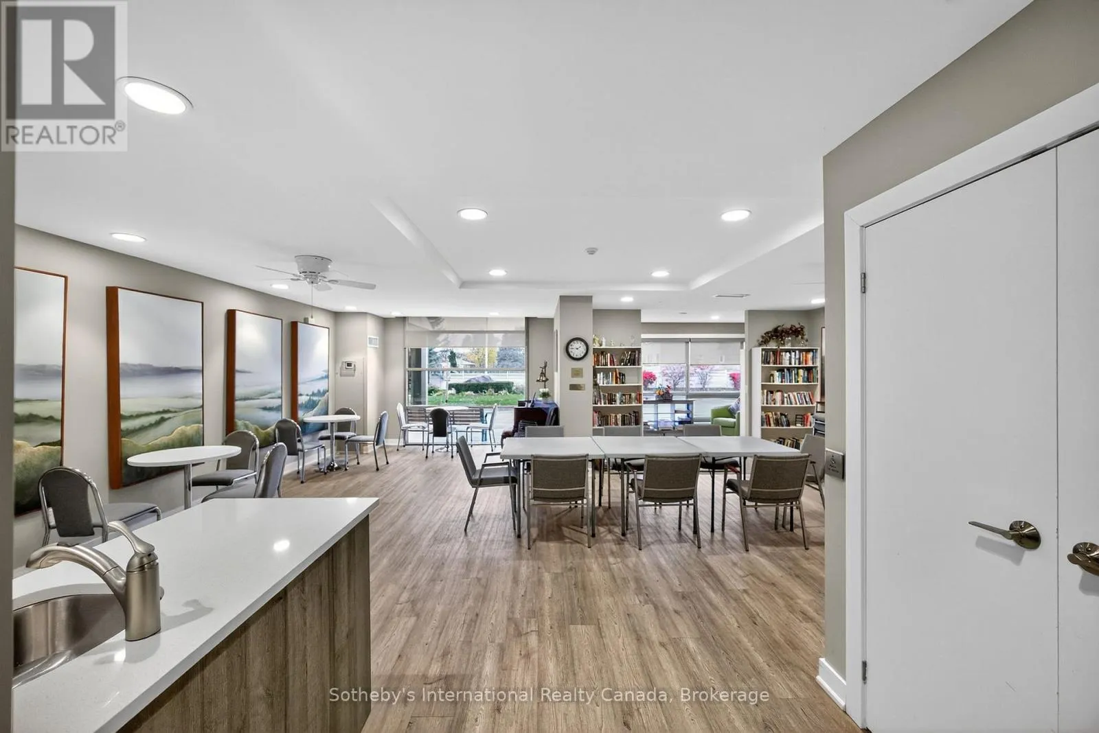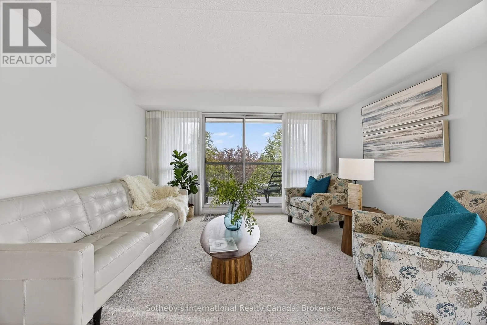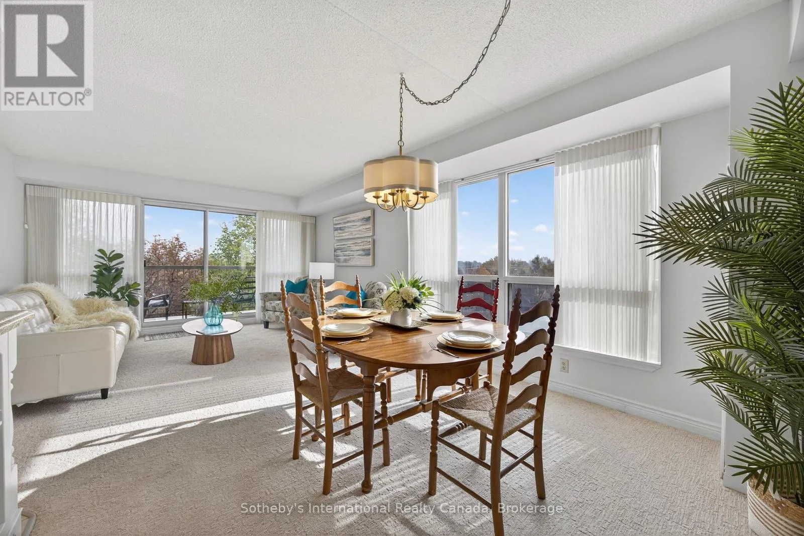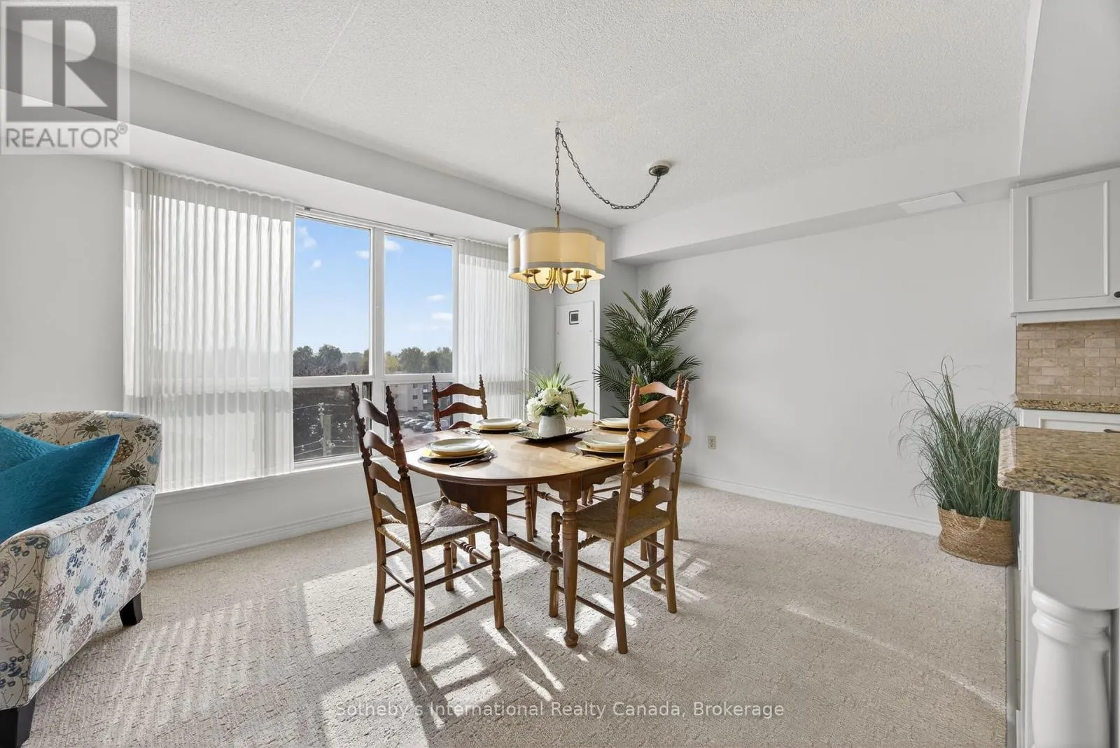 Cross Streets: Eighth/oak/walnut. ** Directions: From Oak to Eighth St to The Galleries. Light-filled corner unit in The Galleries with spectacular views of Blue Mountain from your private balcony! This spacious condo offers a beautifully updated kitchen featuring custom cabinetry, granite countertops, a dropped ceiling with spotlights, and a new sink and faucet (2025). The bathroom includes a walk-in shower and ceramic tile flooring, while the two generously sized bedrooms feature laminate flooring and abundant closet space. Enjoy the open-concept dining and living area, complete with walkout access to the balcony-perfect for taking in the views. The entry, hallway, living, dining, and kitchen areas were freshly painted in October 2025.This unit also includes a designated underground parking space and storage locker. The Galleries is a well-maintained, secure, and pet-friendly building (small pets only), offering a full suite of amenities: a fully equipped gym, sauna, party room, library, and a guest suite available for rent. Elevators and concierge service add to the convenience. Condo fees include heat, air conditioning, water, and sewer. Short closing available! (id:27476)
