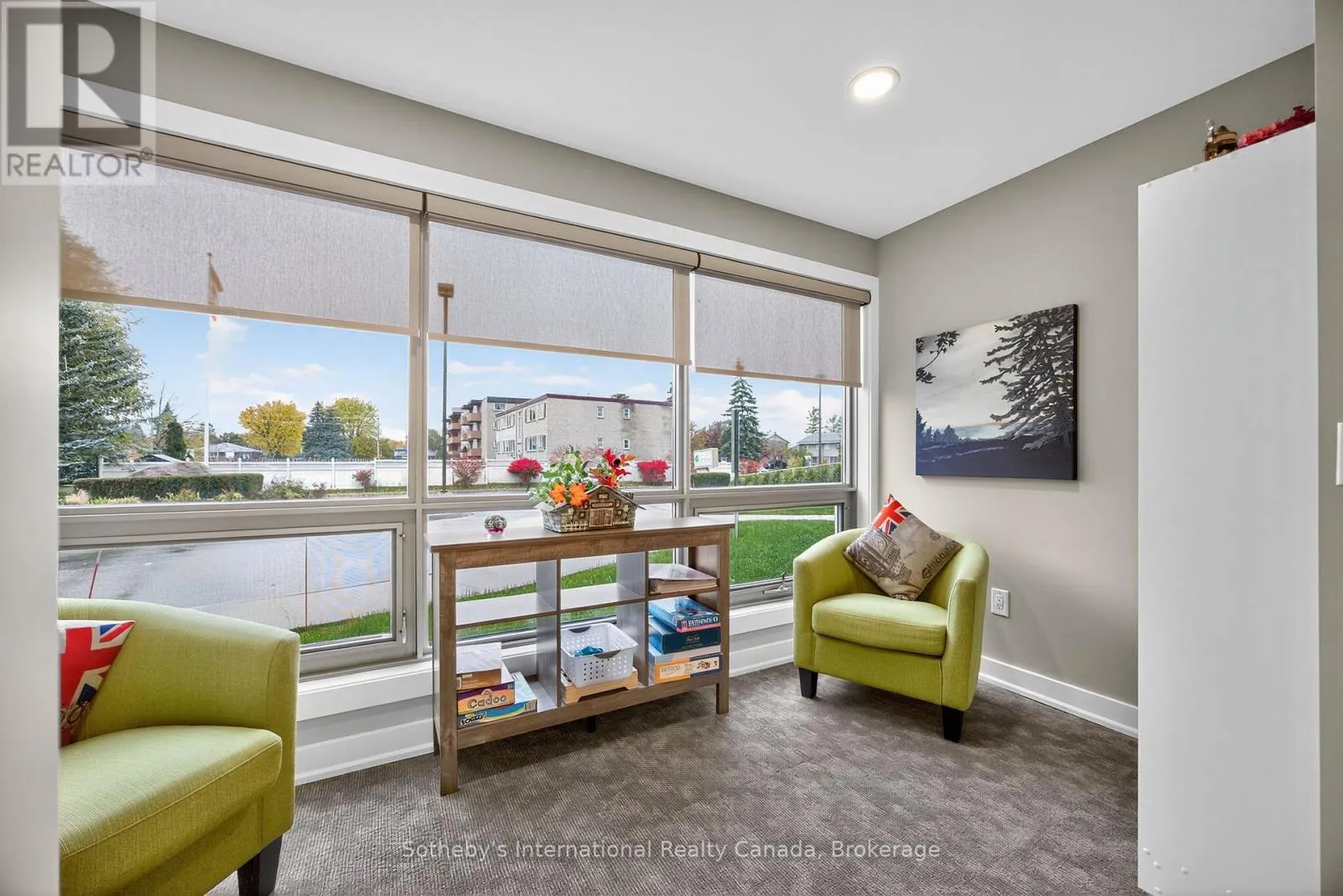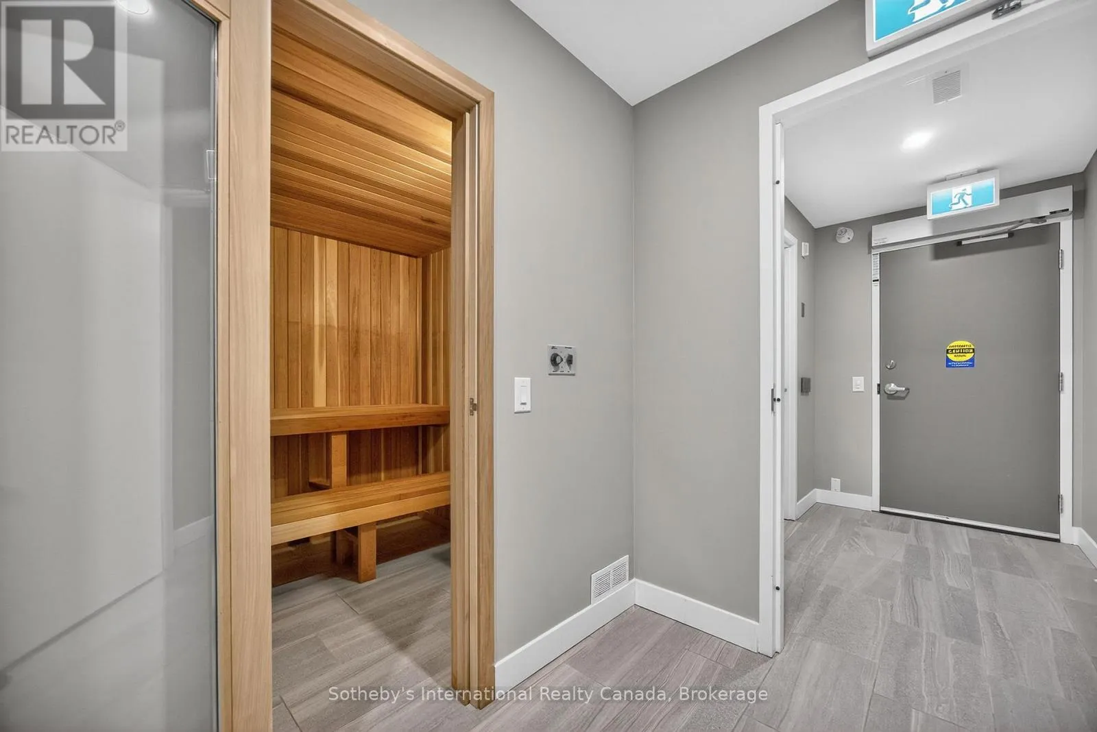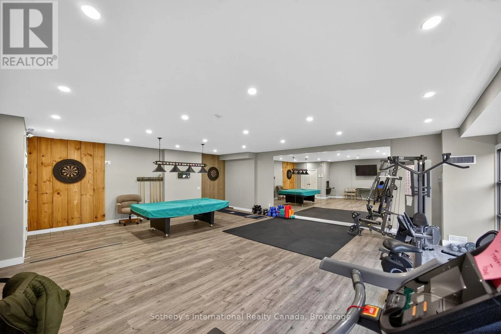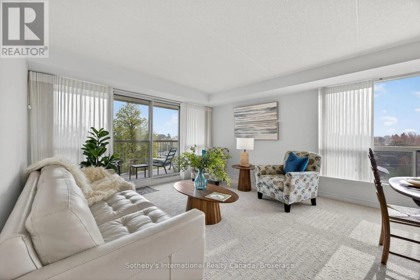 Cross Streets: Eighth/oak/walnut. ** Directions: From Oak to Eighth St to The Galleries. Light-filled corner unit in The Galleries with spectacular views of Blue Mountain from your private balcony! This spacious condo offers a beautifully updated kitchen featuring custom cabinetry, granite countertops, a dropped ceiling with spotlights, and a new sink and faucet (2025). The bathroom includes a walk-in shower and ceramic tile flooring, while the two generously sized bedrooms feature laminate flooring and abundant closet space. Enjoy the open-concept dining and living area, complete with walkout access to the balcony-perfect for taking in the views. The entry, hallway, living, dining, and kitchen areas were freshly painted in October 2025.This unit also includes a designated underground parking space and storage locker. The Galleries is a well-maintained, secure, and pet-friendly building (small pets only), offering a full suite of amenities: a fully equipped gym, sauna, party room, library, and a guest suite available for rent. Elevators and concierge service add to the convenience. Condo fees include heat, air conditioning, water, and sewer. Short closing available! (id:27476)