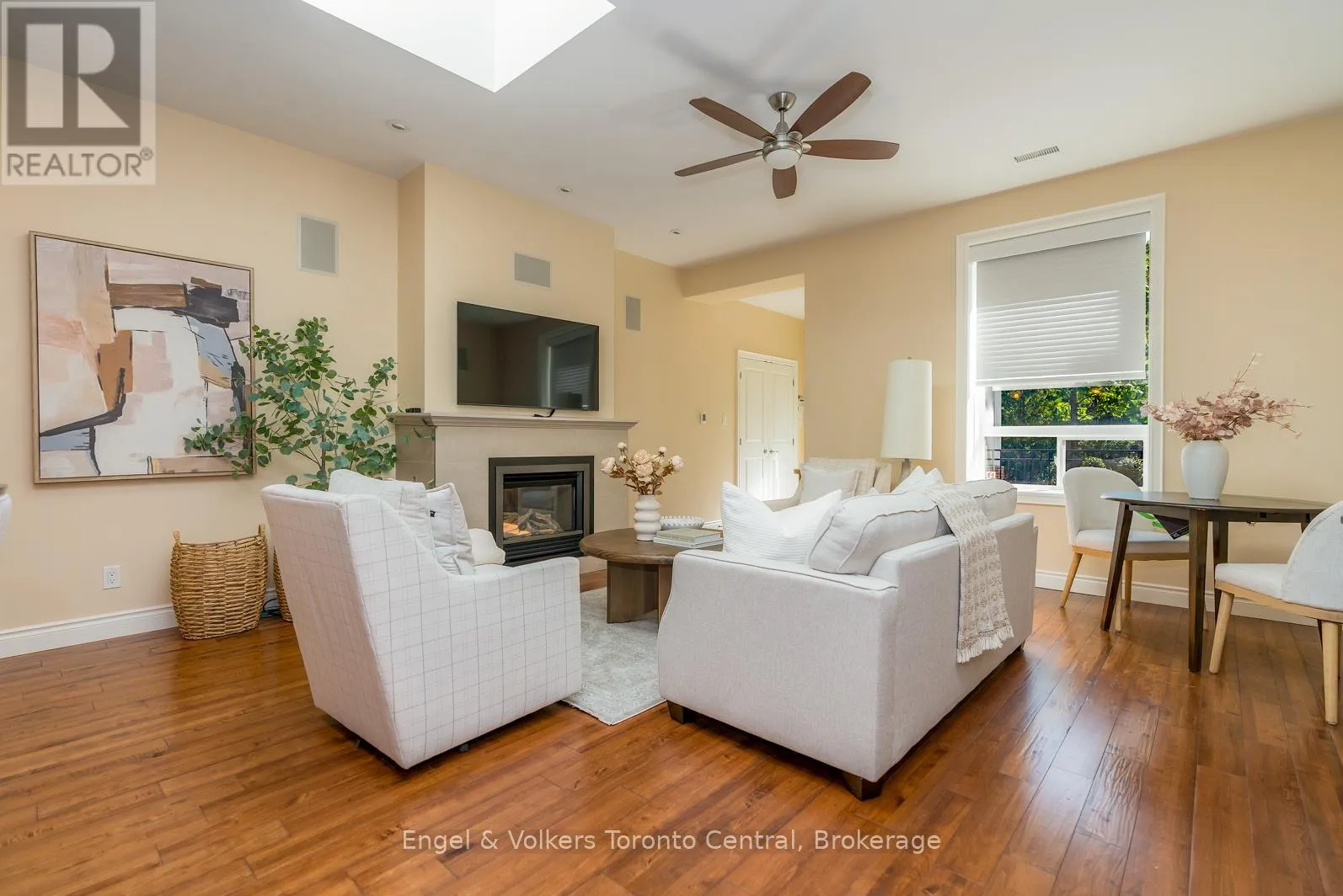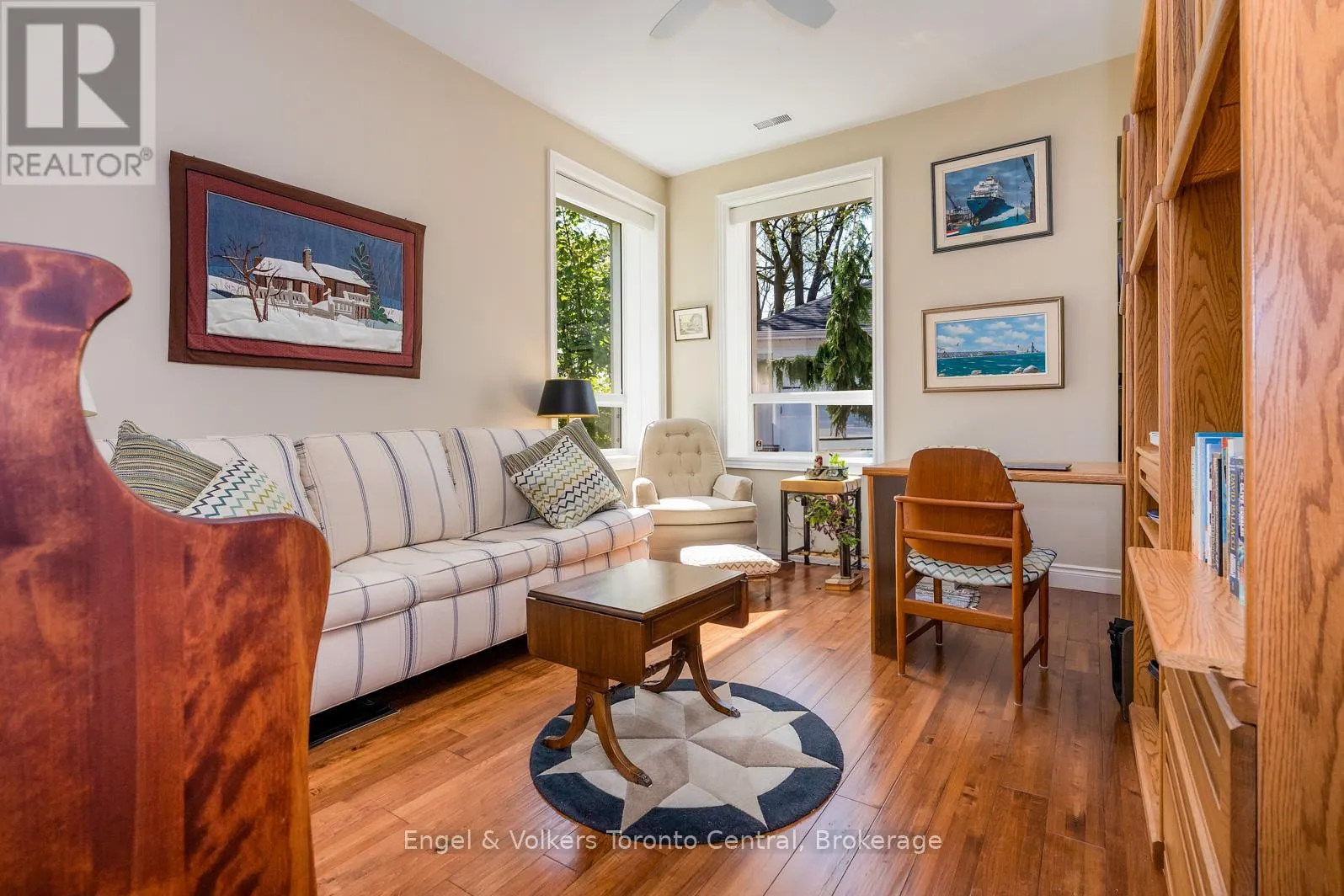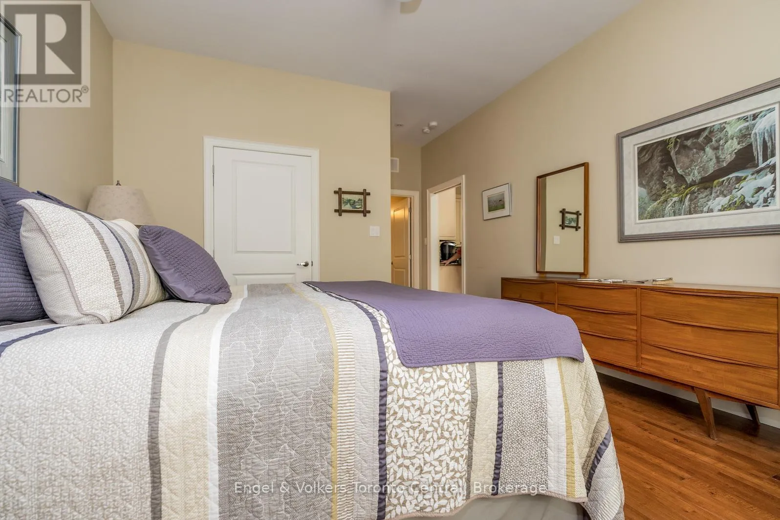 Cross Streets: Second and Maple. ** Directions: Hurontario Street to Second Street...entrance to unit is from Maple Street. This 2 bedroom, 2 bathroom condo is privately located in the heart of downtown Collingwood. Leave your car in the exclusive detached garage and walk to all that that downtown Collingwood has to offer..grocery shopping, restaurants, financial institutions, the waterfront trail system and many special events such as the Farmers Market, concerts and sporting events. This 1290 square foot condo offers open concept living, hardwood flooring, custom kitchen cabinetry, a large entrance foyer and living room skylights for added natural lighting. The primary bedroom has a spacious walk-in closet with built-in shelving and large 4 piece ensuite. The second bedroom also has a walk-in closet and corner windows. A second washroom is situated near this bedroom. The laundry and mechancial room is conveniently located in the unit. A south facing patio allows for outdoor entertaining, gardening, or an area for relaxation. The oversized single garage provides plenty of space for a vehicle and storage. Guest parking is located next to the garage. Entrance to the condo is located from an exclusive laneway off of Maple Street. This private, quiet property is ideal for those who wish to be 'close to downtown amenities' without having to drive. The current owners have taken pride in the maintenance and upkeep. Call today for a showing. (id:27476)