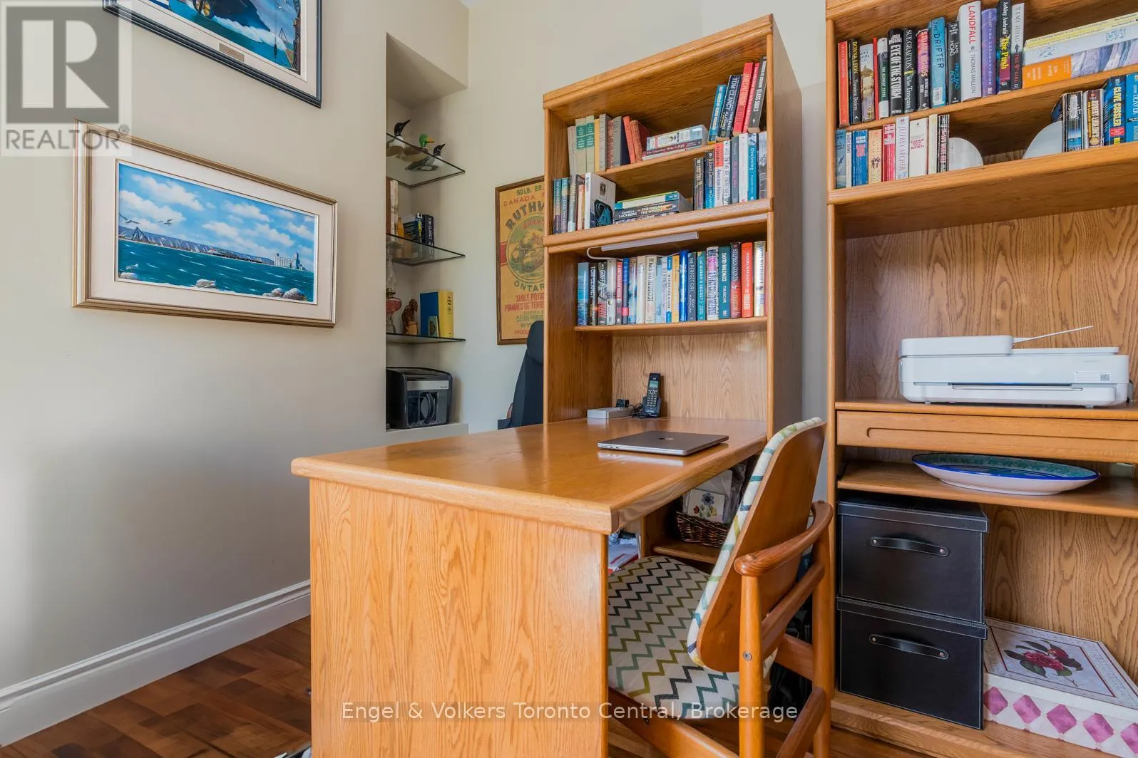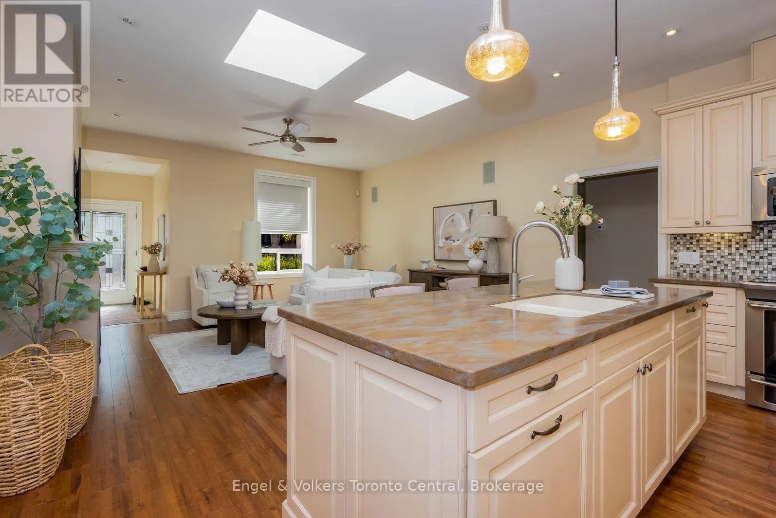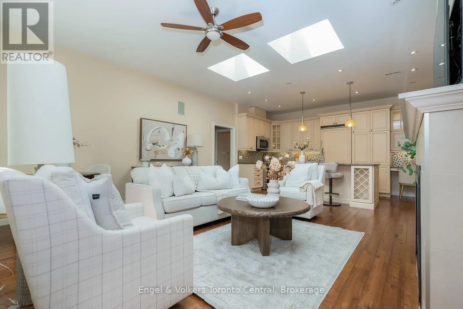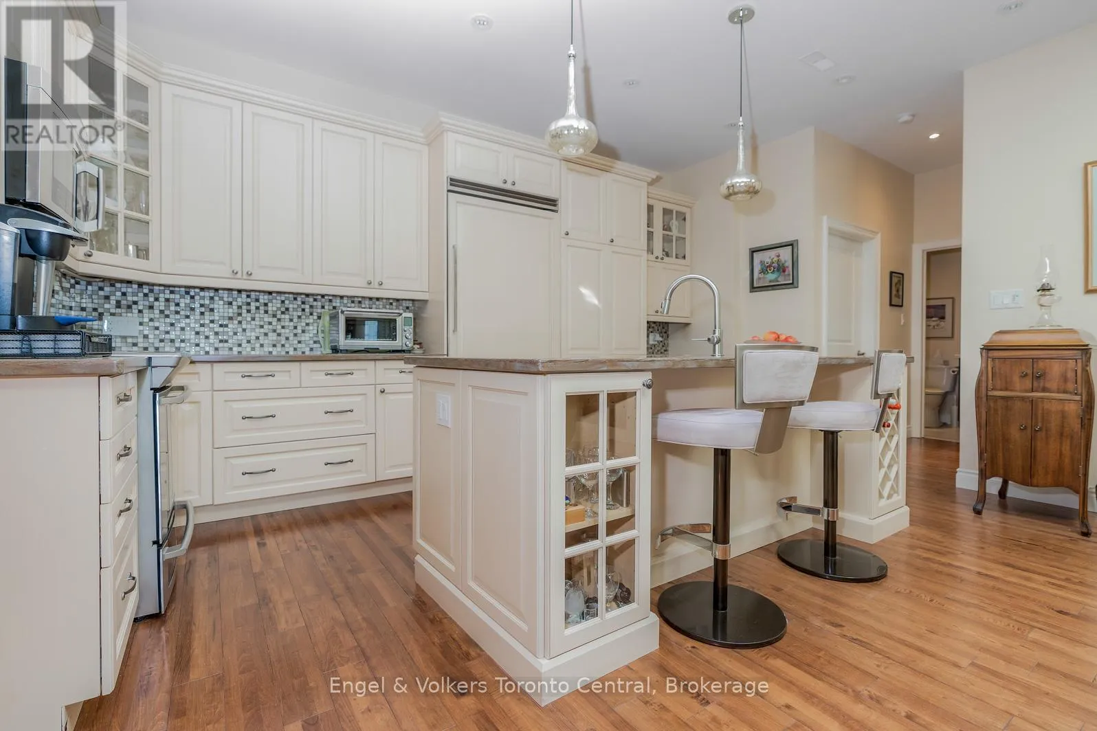 Cross Streets: Second and Maple. ** Directions: Hurontario Street to Second Street...entrance to unit is from Maple Street. This 2 bedroom, 2 bathroom condo is privately located in the heart of downtown Collingwood. Leave your car in the exclusive detached garage and walk to all that that downtown Collingwood has to offer..grocery shopping, restaurants, financial institutions, the waterfront trail system and many special events such as the Farmers Market, concerts and sporting events. This 1290 square foot condo offers open concept living, hardwood flooring, custom kitchen cabinetry, a large entrance foyer and living room skylights for added natural lighting. The primary bedroom has a spacious walk-in closet with built-in shelving and large 4 piece ensuite. The second bedroom also has a walk-in closet and corner windows. A second washroom is situated near this bedroom. The laundry and mechancial room is conveniently located in the unit. A south facing patio allows for outdoor entertaining, gardening, or an area for relaxation. The oversized single garage provides plenty of space for a vehicle and storage. Guest parking is located next to the garage. Entrance to the condo is located from an exclusive laneway off of Maple Street. This private, quiet property is ideal for those who wish to be 'close to downtown amenities' without having to drive. The current owners have taken pride in the maintenance and upkeep. Call today for a showing. (id:27476)