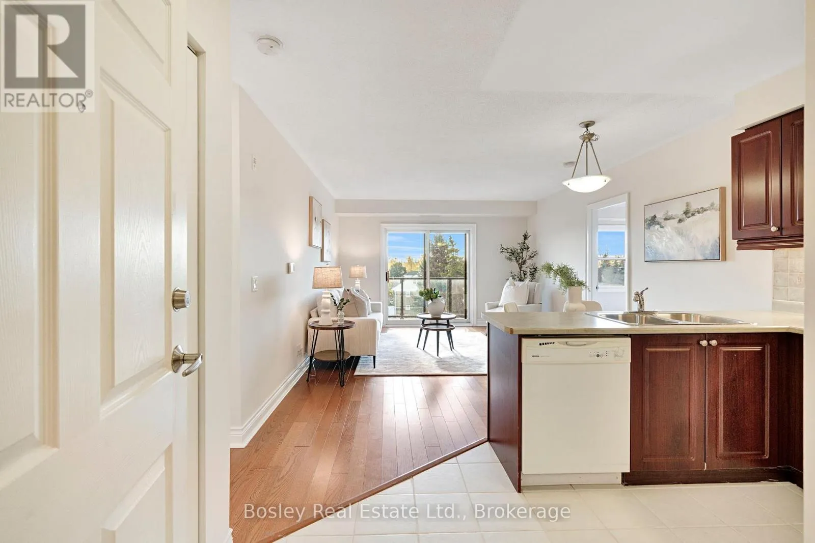 Raglan St and Ontario St Welcome to Raglan Village - Unit #411A warm, welcoming community designed for inspired retirement living in the heart of Collingwood. This beautifully refreshed 2-bed, 2-bath home offers a lifestyle of connection, wellness, and ease just minutes from downtown shops, cafés, waterfront paths, and scenic walking trails right outside your door. Inside, enjoy a bright open-concept layout with an updated kitchen featuring tiled floors and backsplash, hardwood flooring through the living areas, brand-new bedroom carpeting, and fresh paint throughout. The spacious primary bedroom offers its own private ensuite with a walk-in shower, while the second bedroom and bathroom provide excellent separation for guests or hobbies. Sliding doors lead to a sun-filled south-facing balcony - perfect for your morning coffee or peaceful afternoons enjoying natural light. What truly sets Raglan Village apart is the lifestyle. Residents enjoy access to the Raglan Club, including daily exercise and wellness classes, a saltwater lap pool, library, bar and bistro spaces, and a packed calendar of activities and social programs that foster connection, friendship, and an uplifting community atmosphere. With water, sewer, basic Rogers TV/internet/phone, and access to all amenities included - plus optional full or partial meal plans - this move-in-ready suite offers comfort, convenience, and an engaging way of life. Surrounded by nature, close to downtown, and designed for both independence and community, this is retirement living at its best. (id:27476)