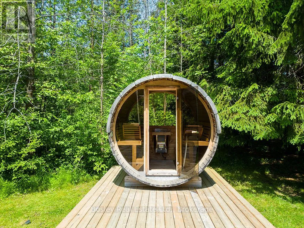 Hwy 26 and Silver Creek Dr. Nestled on a secluded, park-like acre within the Town of Collingwood, this exceptional estate blends refined luxury with natural beauty. Surrounded by towering mature trees, perennial gardens, and a spring-fed pond from Silver Creek, this renovated five-bedroom, five-bathroom residence offers the ultimate in privacy and tranquility. Designed for multi-generational living or sophisticated entertaining, the home features flexible dual-family layouts, with separate quarters ideal for extended family or guests. The elegant interior showcases contemporary finishes, high-end renovations throughout. Enjoy the convenience of upper and lower-level laundry rooms and the peace of mind of modern infrastructure, including municipal water, natural gas, and fibe internet. Step outside to your own four-season oasis - a series of breathtaking outdoor living spaces perfect for gathering or relaxing. Unwind in the newly added outdoor sauna, or entertain at the stunning custom outdoor bar featuring a roll-up window, loft sleeping quarters, and generous storage. A heated and cooled three-car attached garage with workshop offers plenty of space for all your recreational gear and projects. Ideally located just minutes from skiing, golf, Georgian Bay, scenic trails, and Collingwood's charming shops and dining - this rare offering truly captures the best of luxurious country living with urban convenience. (id:27476)
