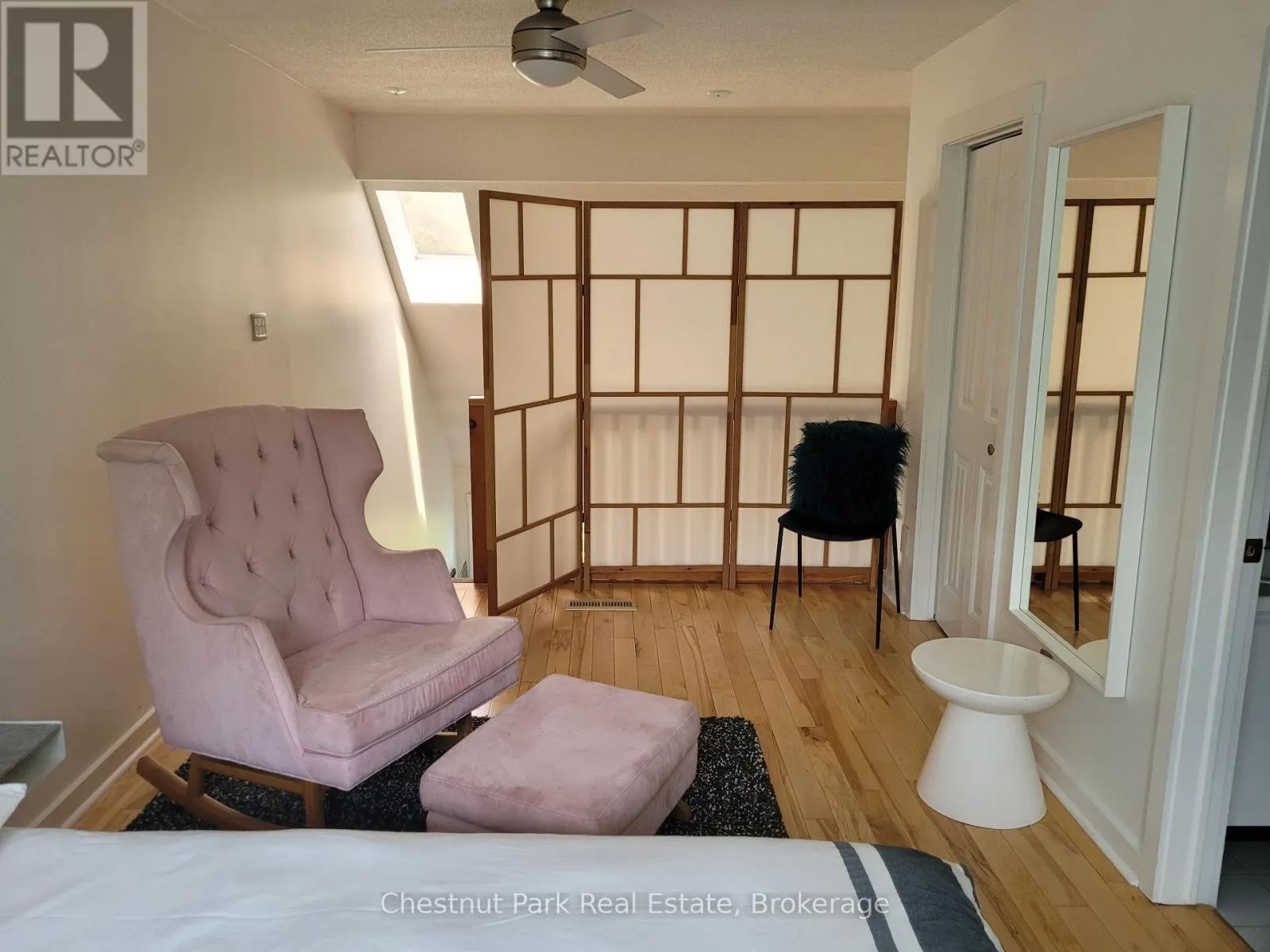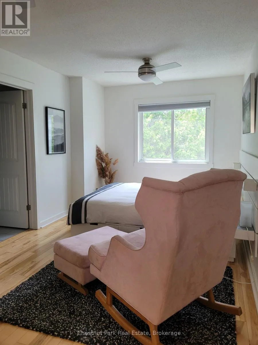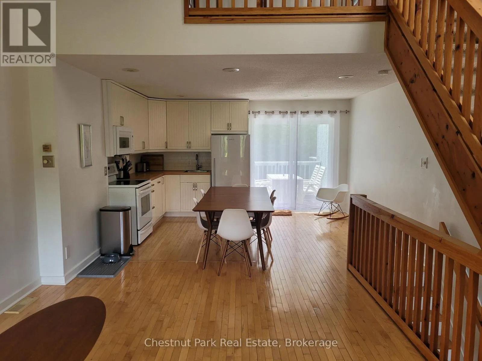 Cross Streets: Keith and Hwy 26 West. ** Directions: Hwy 26 West to Keith, south on Keith to Dawson, west on Dawson to Fairway. Annual, rental, partially furnished, can provide unfurnished if required. Welcome to 100 Fairway unit 5 in Living Stone Resort, formerly Cranberry Resort. This 3-bedroom, 2-bath, reverse floor plan features hardwood floors throughout, a vaulted ceiling, and a lovely loft with ensuite. The main floor features 1 bedroom with twin beds, 2nd bedroom with a Queen-size bed featuring patio doors (can be used as primary), a private south-facing patio/ four-piece bath, and main floor laundry room. The second level offers a bright, spacious open concept living room, dining room, and fully stocked kitchen/sliding doors to a deck approximately 14 x 8 with BBQ and patio furniture. The living room boasts vaulted ceilings, a gas fireplace, and stairs leading to the third-floor loft with a queen-size bed, a large closet and ensuite. Ceiling fans throughout this home with a fabulous cross breeze. Numbered parking spot at front door and an exterior locker. On-site Golf Course with great summer entertainment on the patio, on-site trails leading to the Georgian Trail System. Moments to a marina and public launch, hiking, shopping, and all this fabulous four-season recreational area has to offer. Rental application, employment letter, and references. UTILITIES NOT INCLUDED. (id:27476)