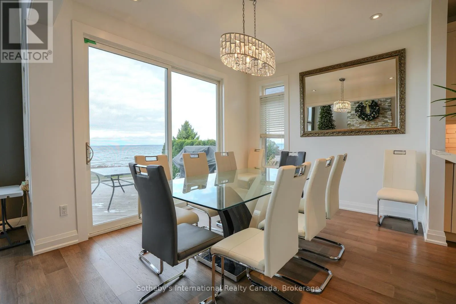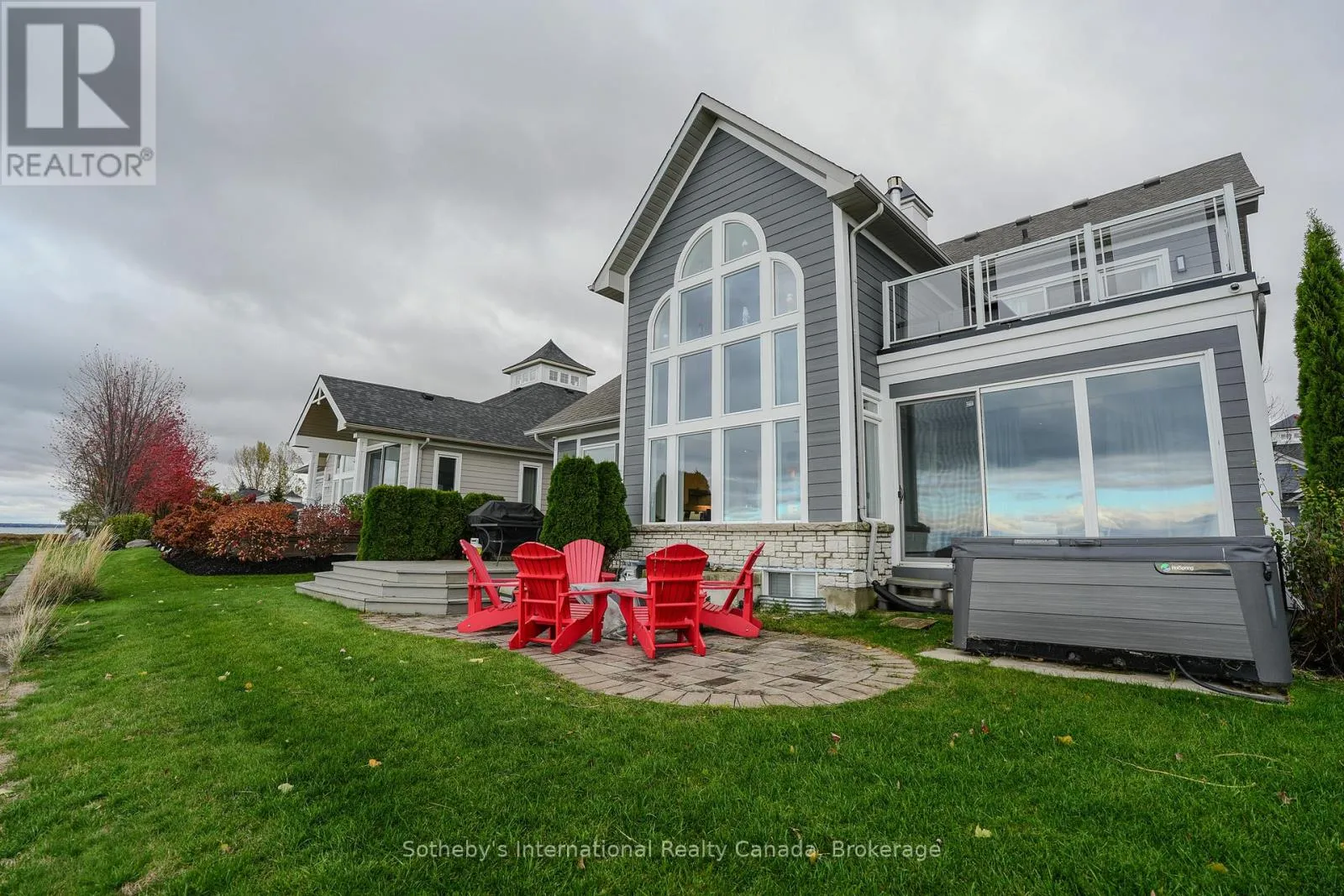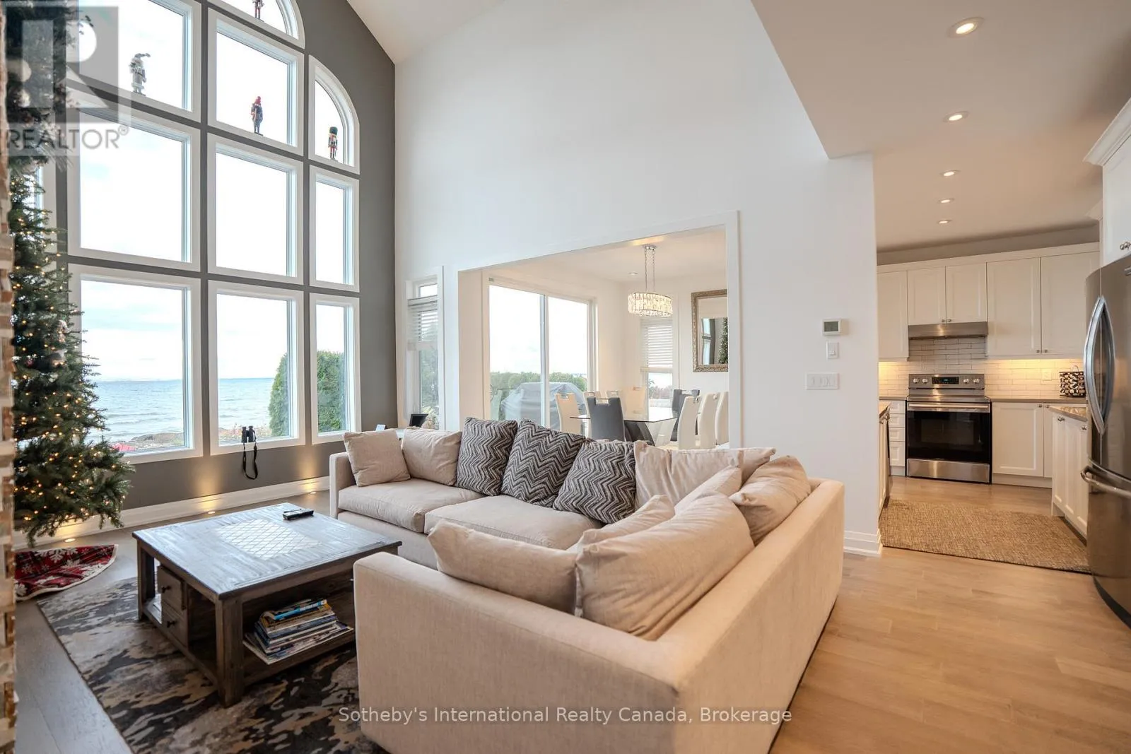 Cross Streets: Marine View Dr, Waterfront Circle. ** Directions: Hwy 26 E to Marine View Dr. to 50 Waterfront Circle. Spectacular waterfront property in Blue Shores development. Tasteful, custom renovation offering exceptional quality, space and flow for the discerning ski season family. And oh, the panoramic view! Spacious open concept Great room incorporating lounge area with large gas fireplace, plenty of seating for the whole family and guests, and a beautiful view of Georgian Bay! Large dining area and custom kitchen, perfect for entertaining during ski season. Primary bedroom suite (king bed) with seating area, fireplace and direct view of the lake/ Added features of mud room (laundry) off the garage entry, butler pantry and den with double pullout increase the flexibility of this space. Second level boasts additional 4 large bedrooms (2 queen; 2 dbls and double/twin bunk beds); laundry/pantry and second sitting area. The lower basement level also has a large rec. room with bed area; and 2 additional bedrooms (sleeping 6 on this level). Additional powder room on this level for convenience. No pets permitted. Tenant must provide proof of liability insurance before lease starts. Utility/damage deposit of $4,000 plus total rental fee are due before lease start date. Utilities used, plus end of lease cleaning will be deducted from deposit. 50% of rental due after signing of lease. Tenants will have use of recreation facility including indoor pool, gym. Hot tub on rear deck, tenants responsible for maintenance of hot tub. Double car driveway. NO use of garage. Snow removal included. (id:27476)