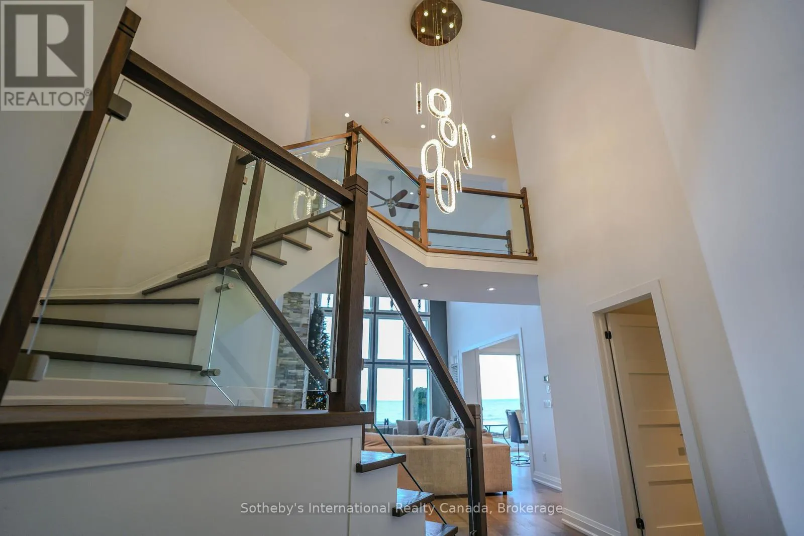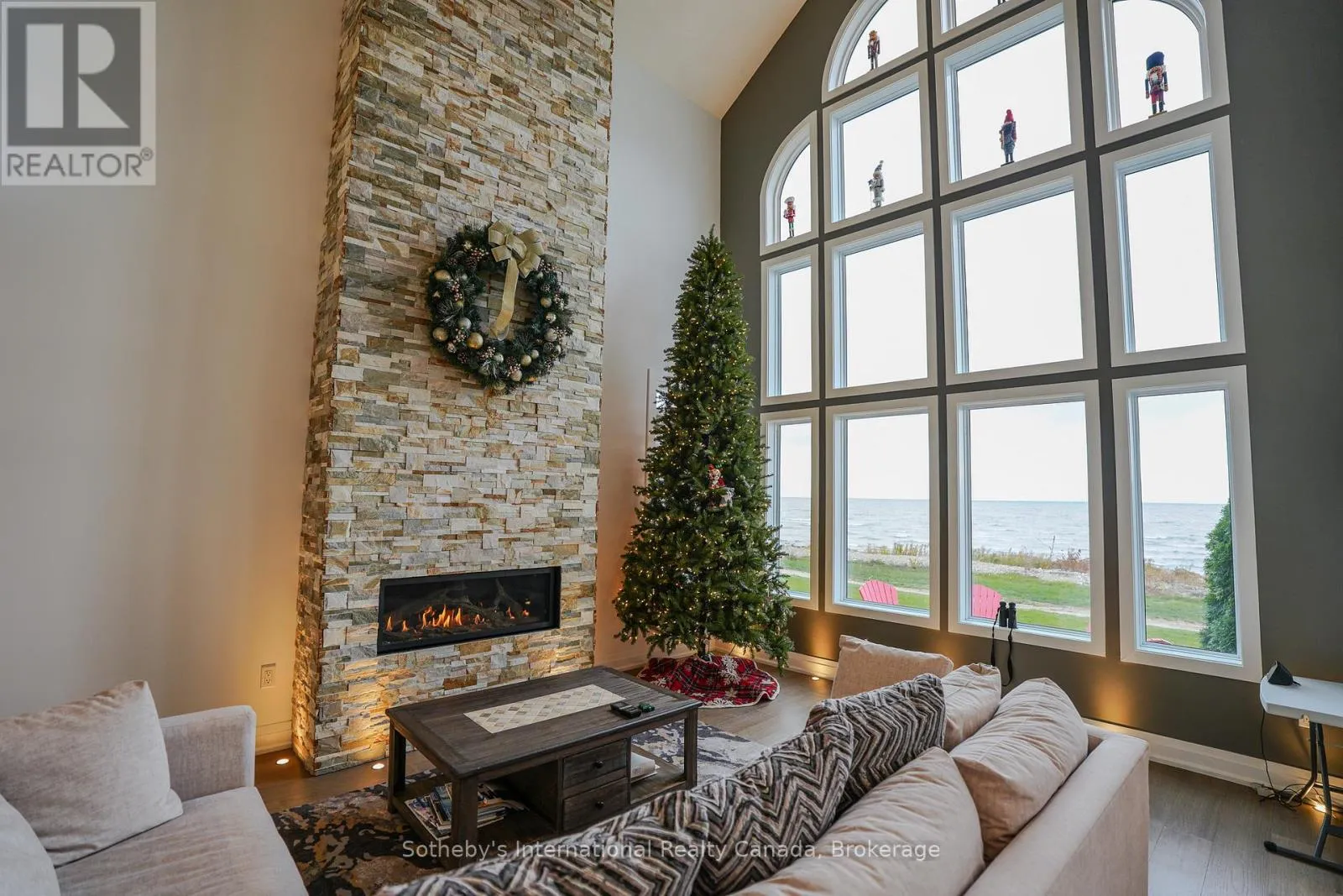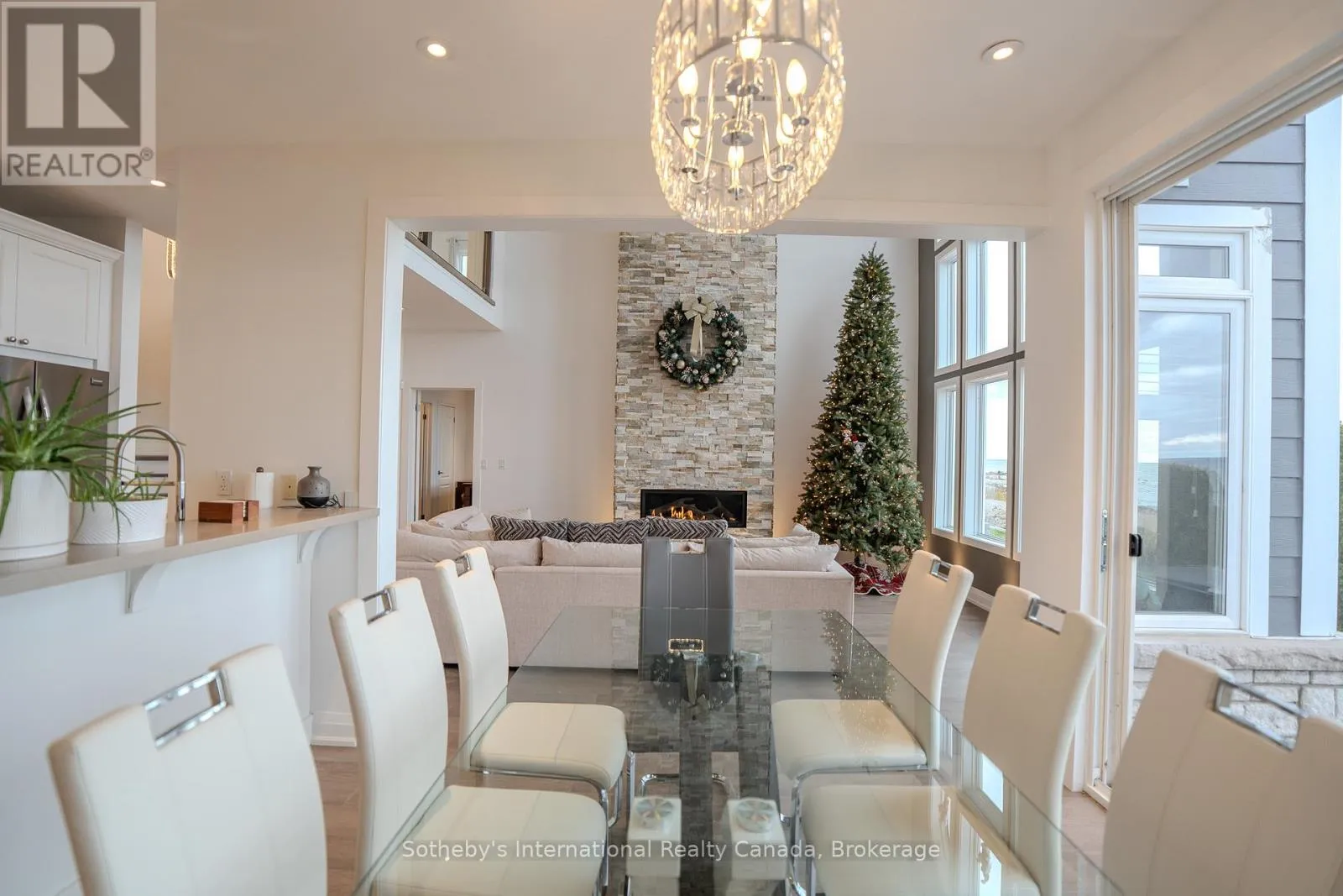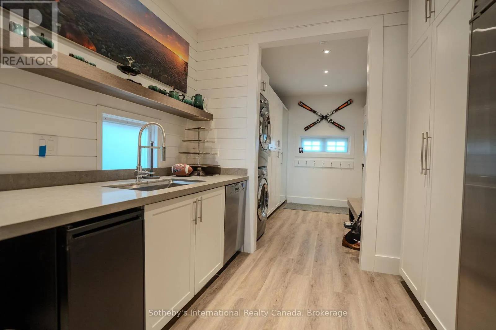 Cross Streets: Marine View Dr, Waterfront Circle. ** Directions: Hwy 26 E to Marine View Dr. to 50 Waterfront Circle. Spectacular waterfront property in Blue Shores development. Tasteful, custom renovation offering exceptional quality, space and flow for the discerning ski season family. And oh, the panoramic view! Spacious open concept Great room incorporating lounge area with large gas fireplace, plenty of seating for the whole family and guests, and a beautiful view of Georgian Bay! Large dining area and custom kitchen, perfect for entertaining during ski season. Primary bedroom suite (king bed) with seating area, fireplace and direct view of the lake/ Added features of mud room (laundry) off the garage entry, butler pantry and den with double pullout increase the flexibility of this space. Second level boasts additional 4 large bedrooms (2 queen; 2 dbls and double/twin bunk beds); laundry/pantry and second sitting area. The lower basement level also has a large rec. room with bed area; and 2 additional bedrooms (sleeping 6 on this level). Additional powder room on this level for convenience. No pets permitted. Tenant must provide proof of liability insurance before lease starts. Utility/damage deposit of $4,000 plus total rental fee are due before lease start date. Utilities used, plus end of lease cleaning will be deducted from deposit. 50% of rental due after signing of lease. Tenants will have use of recreation facility including indoor pool, gym. Hot tub on rear deck, tenants responsible for maintenance of hot tub. Double car driveway. NO use of garage. Snow removal included. (id:27476)