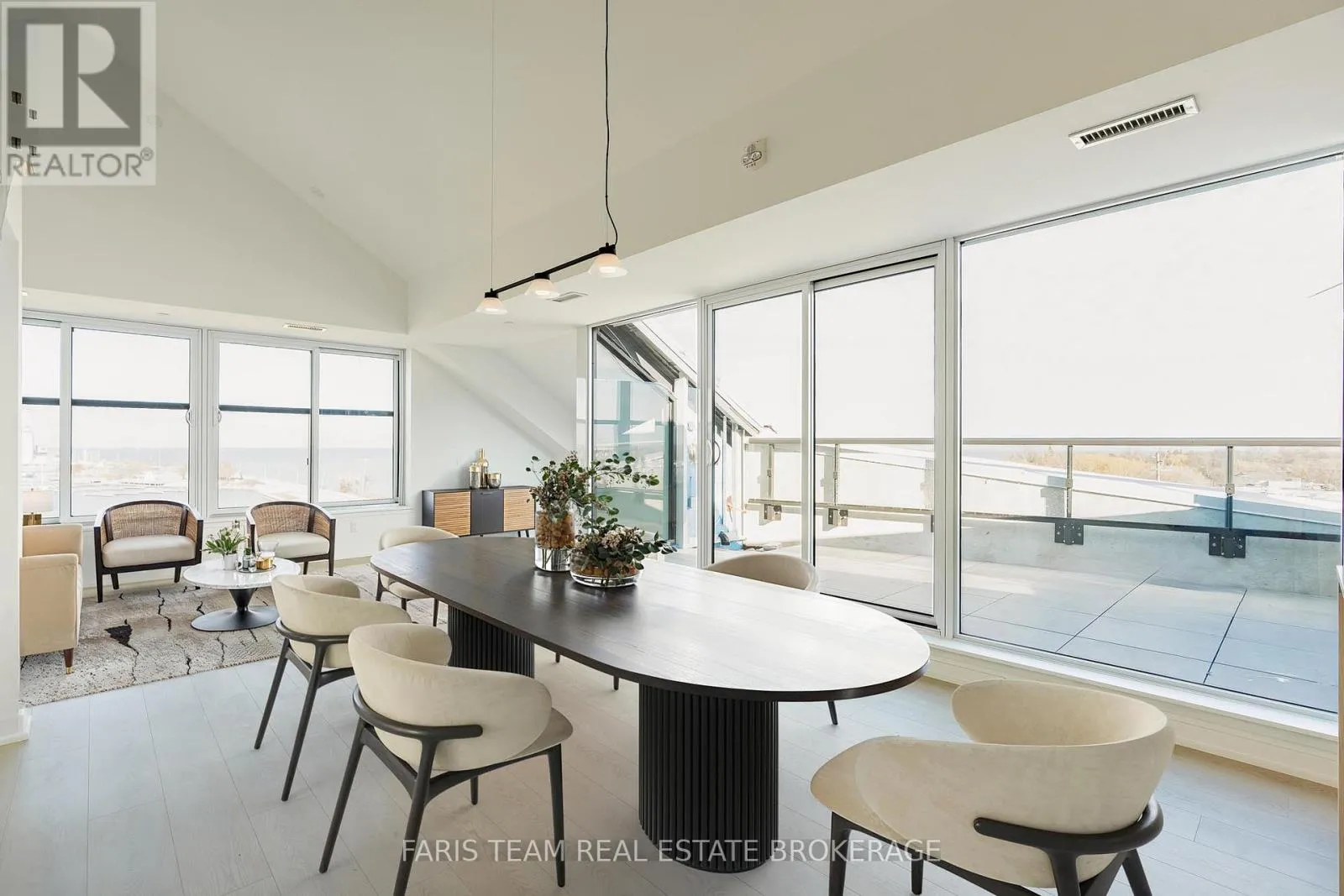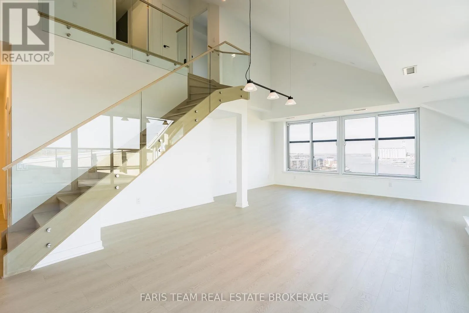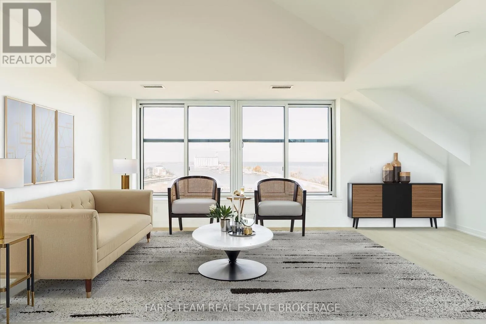 Hurontario St/Huron St Top 5 Reasons You Will Love This Condo: 1) Discover the most impressive penthouse offering in the entire building, a rare 1,523 square feet, three bedroom, two and a half bathroom corner suite that delivers extraordinary space, elevated design, and incredible privacy at the very top 2) Marvel at breathtaking vistas from every principal room and from the expansive private terrace, giving you a seamless indoor-outdoor lifestyle framed by stunning, ever-changing scenery 3) Enjoy a truly exceptional outdoor experience on your oversized terrace, complete with a gas barbeque hookup, an infrared heater, and captivating views of Georgian Bay, perfect for year-round entertaining or unwinding in total serenity 4) Appreciate everyday convenience with two premium parking spaces, including one equipped with an EV charger, paired with a dedicated storage locker to keep everything organized and accessible 5) Live comfortably with bright open-concept living spaces that mix luxury, functionality, and modern comfort in perfect harmony. 1,523 fin.sq.ft. *Please note some images have been virtually staged to show the potential of the condo. (id:27476)