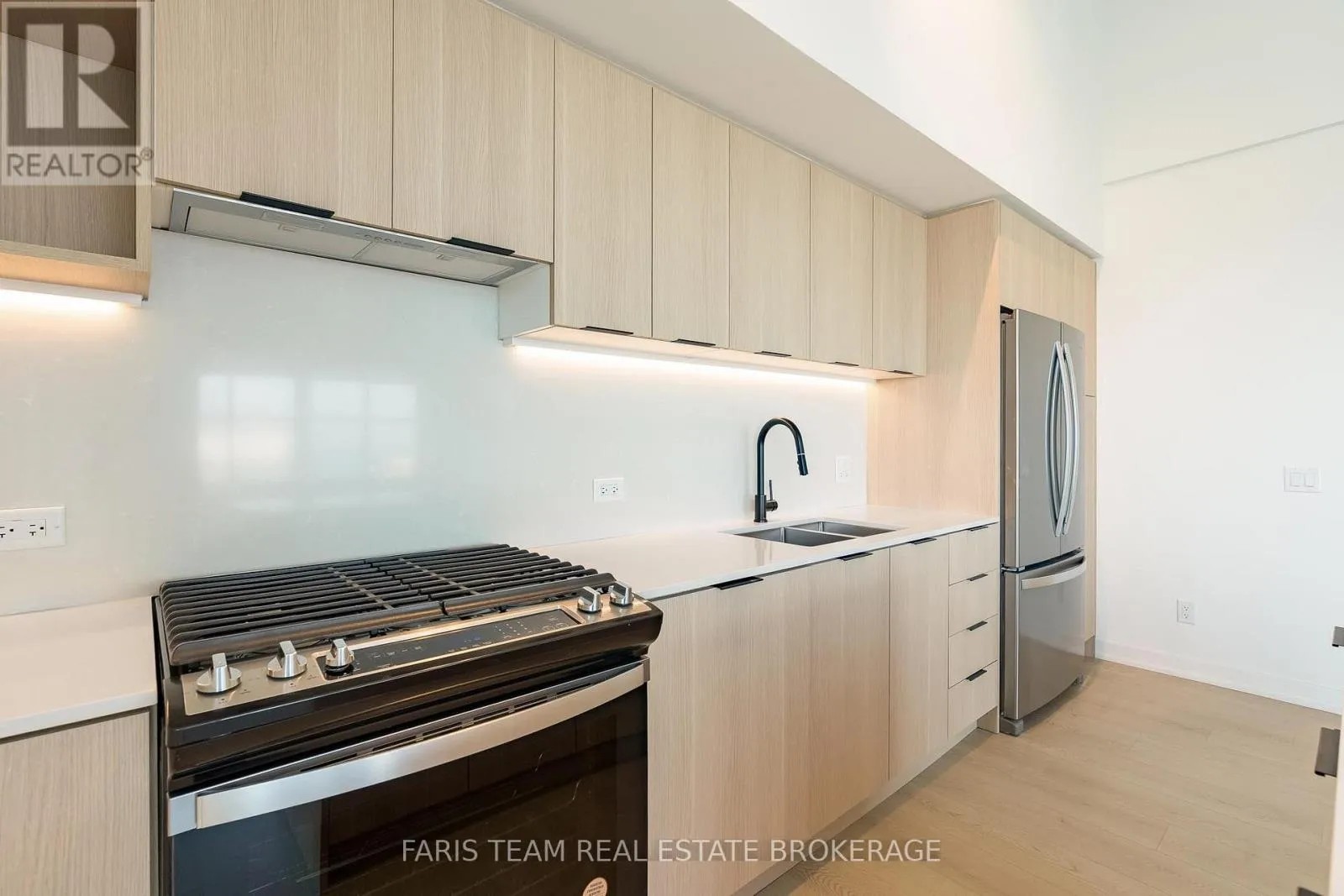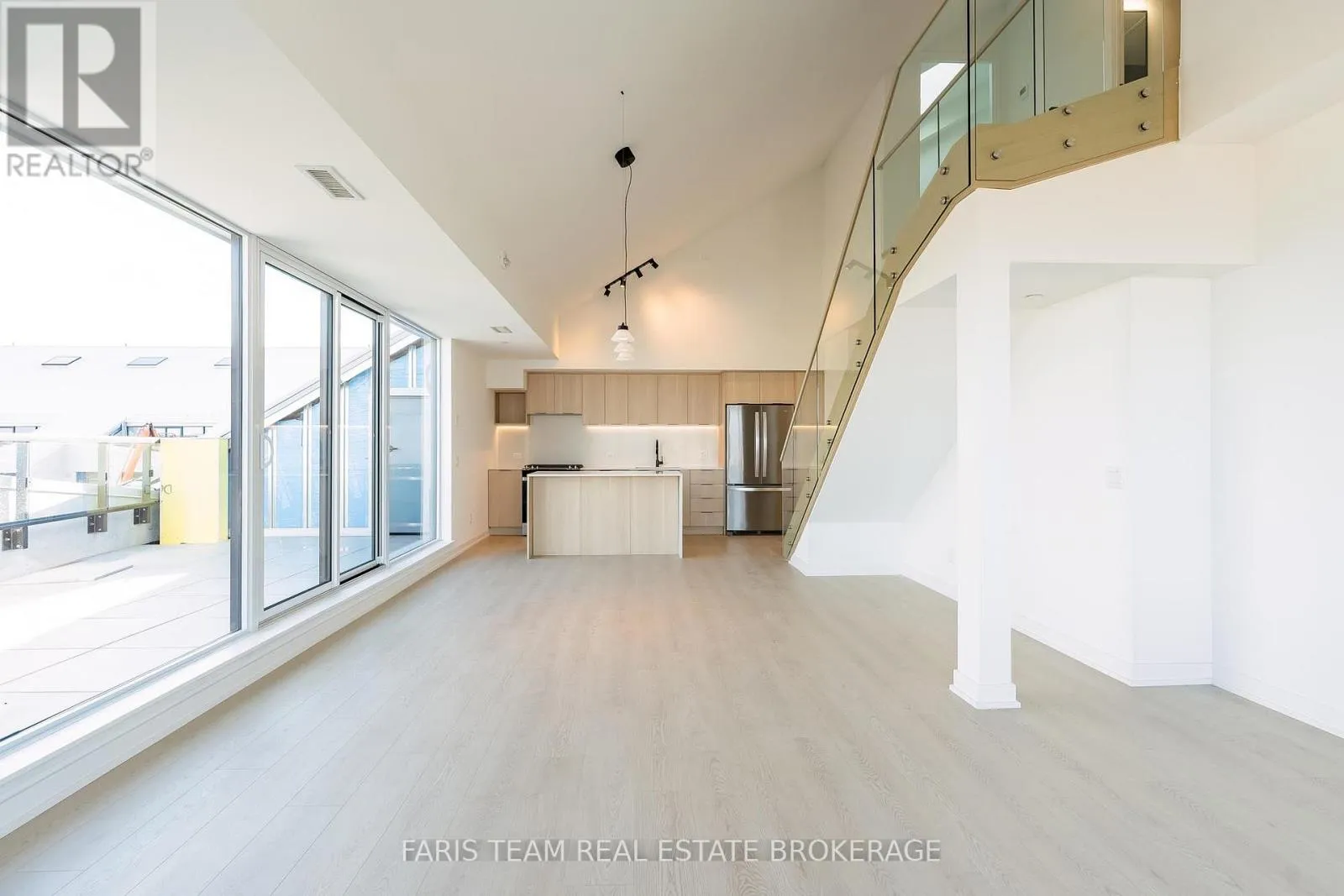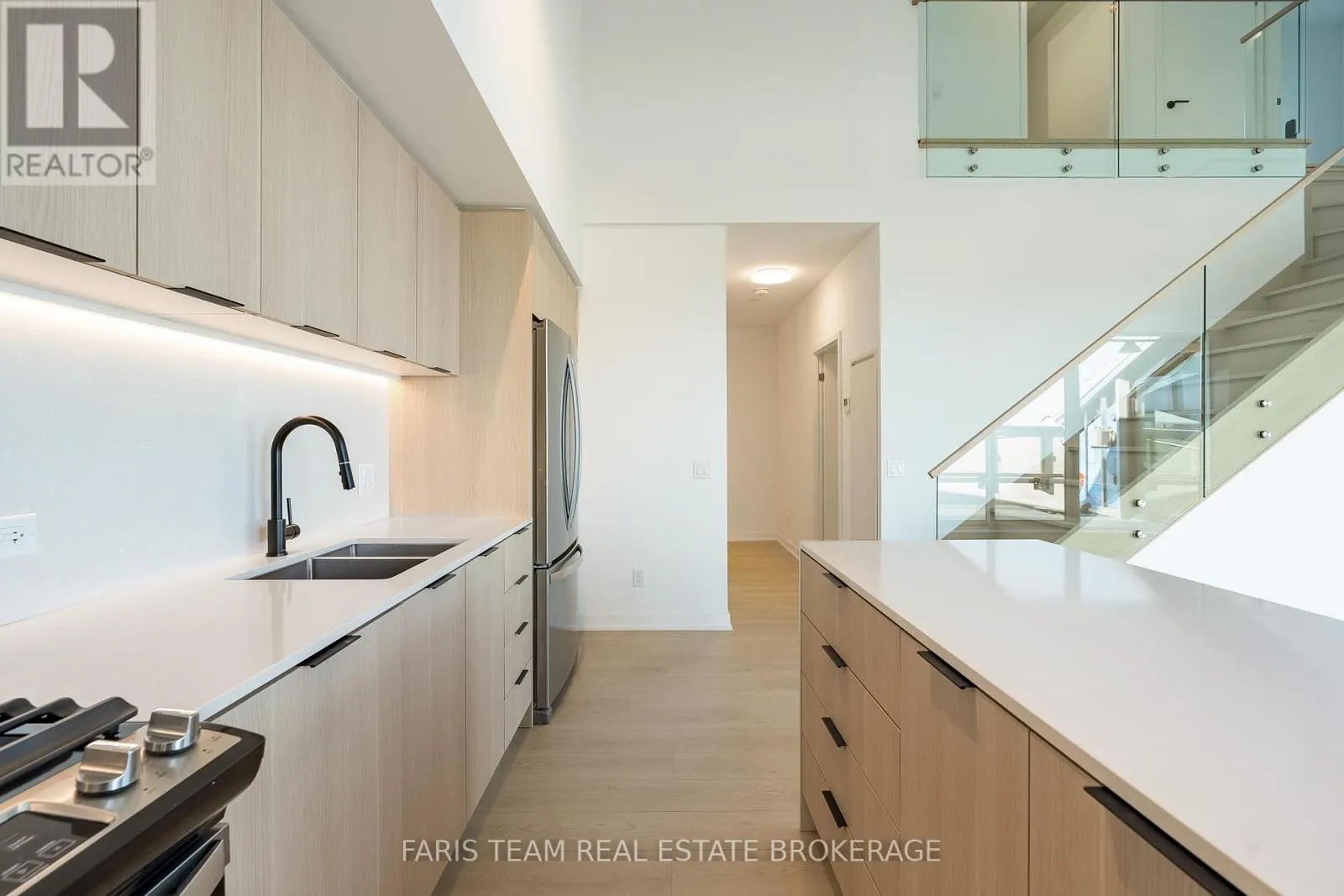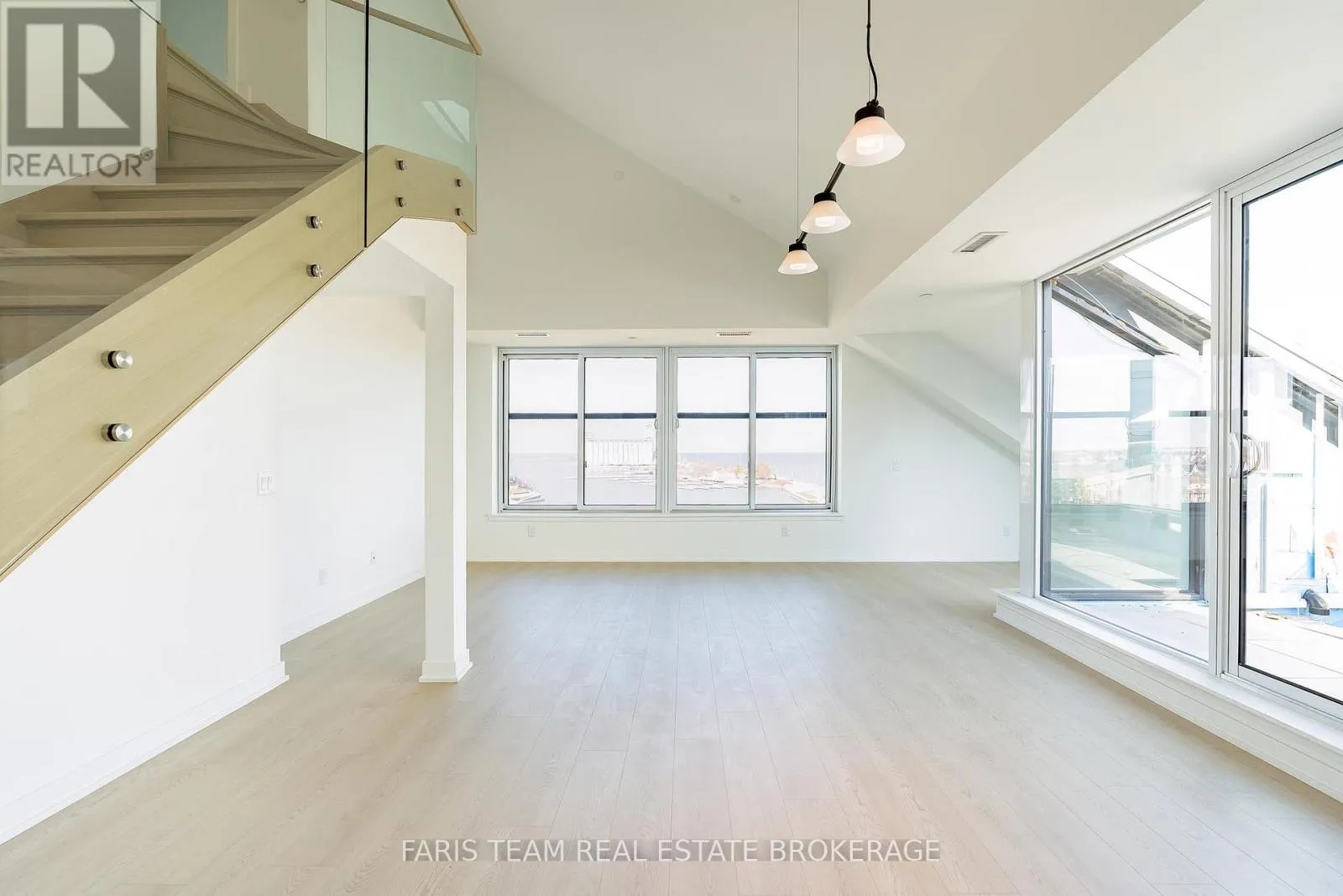 Hurontario St/Huron St Top 5 Reasons You Will Love This Condo: 1) Discover the most impressive penthouse offering in the entire building, a rare 1,523 square feet, three bedroom, two and a half bathroom corner suite that delivers extraordinary space, elevated design, and incredible privacy at the very top 2) Marvel at breathtaking vistas from every principal room and from the expansive private terrace, giving you a seamless indoor-outdoor lifestyle framed by stunning, ever-changing scenery 3) Enjoy a truly exceptional outdoor experience on your oversized terrace, complete with a gas barbeque hookup, an infrared heater, and captivating views of Georgian Bay, perfect for year-round entertaining or unwinding in total serenity 4) Appreciate everyday convenience with two premium parking spaces, including one equipped with an EV charger, paired with a dedicated storage locker to keep everything organized and accessible 5) Live comfortably with bright open-concept living spaces that mix luxury, functionality, and modern comfort in perfect harmony. 1,523 fin.sq.ft. *Please note some images have been virtually staged to show the potential of the condo. (id:27476)