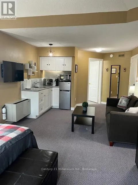 Cross Streets: Dawson/Fairway Cres. ** Directions: HWY 26 to Cranberry trail E, left on Dawson. Welcome to 34 Dawson Drive, Unit 825, a unique and versatile upper-level condo located in Collingwood's sought-after Cranberry/Living Stone Resort community. This spacious two-bedroom unit has been thoughtfully divided into two separate living areas, offering exceptional flexibility for multi-generational living, private guest accommodations, or a dedicated work-from-home space. The main suite features a generous one-bedroom layout with an open-concept living and dining area, a cozy fireplace, a full kitchen, in-suite laundry, a 4-piece bath, and a private balcony surrounded by mature trees. Up the enclosed interior staircase, the bright studio suite offers an inviting open layout with its own 4-piece bath and kitchenette (no laundry), ideal for visiting family, a private office, hobbies, or personal use. Situated just minutes from downtown Collingwood, Georgian Bay, golf, trails, and Blue Mountain, this condo is the perfect opportunity to enjoy a four-season lifestyle in a prime location while benefiting from an adaptable and smartly designed living space. Please note that this studio is not a legal rental unit. Heat source of one bedroom unit - 2 new heat pumps were installed in July 2024 - these provide heat and a/c. Pictures are prior to tenant occupancy. (id:27476)