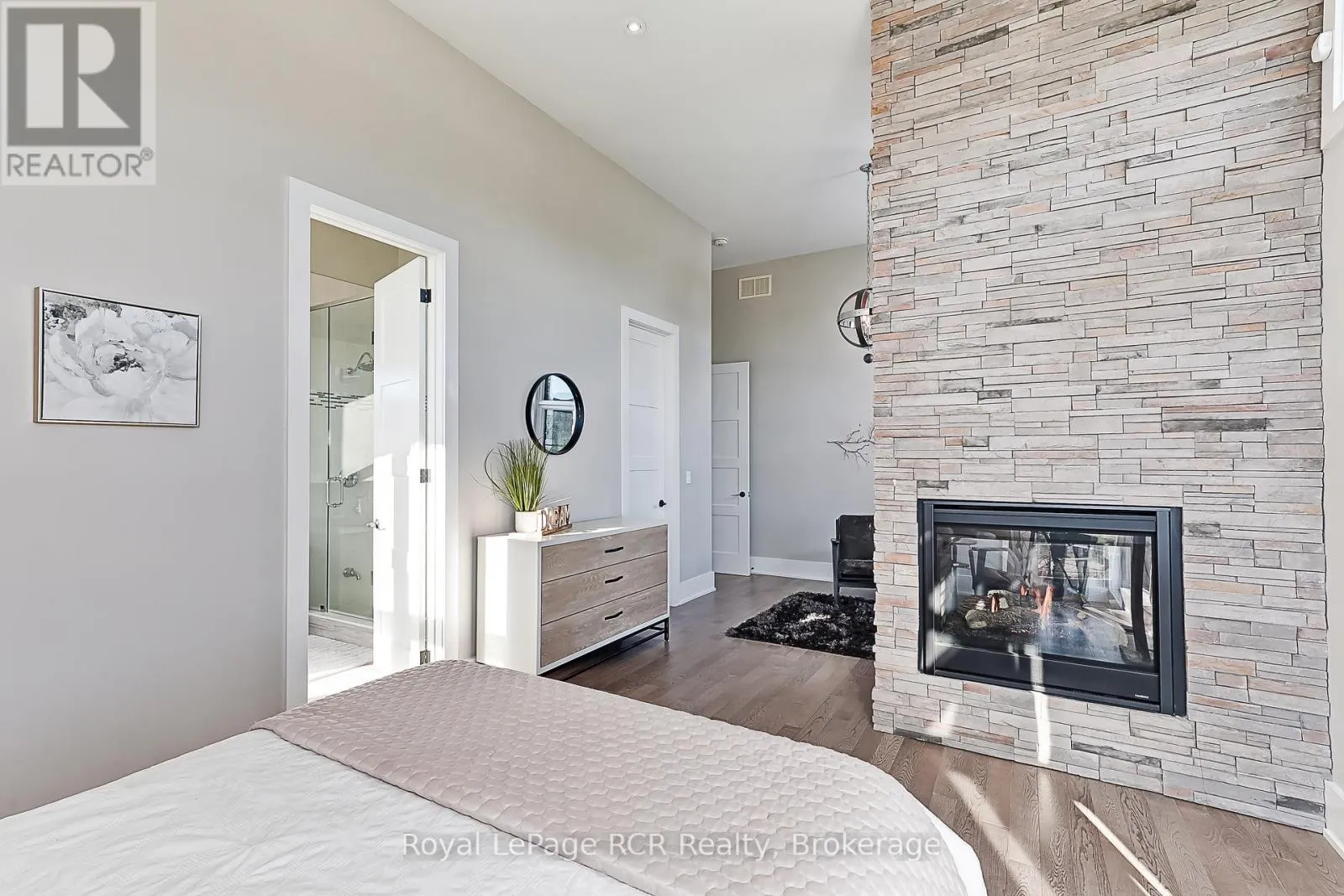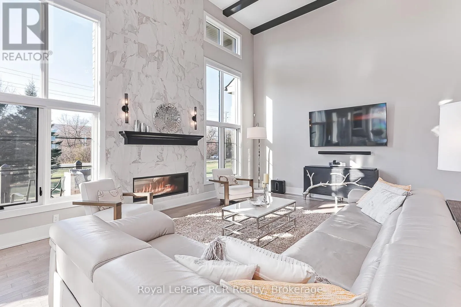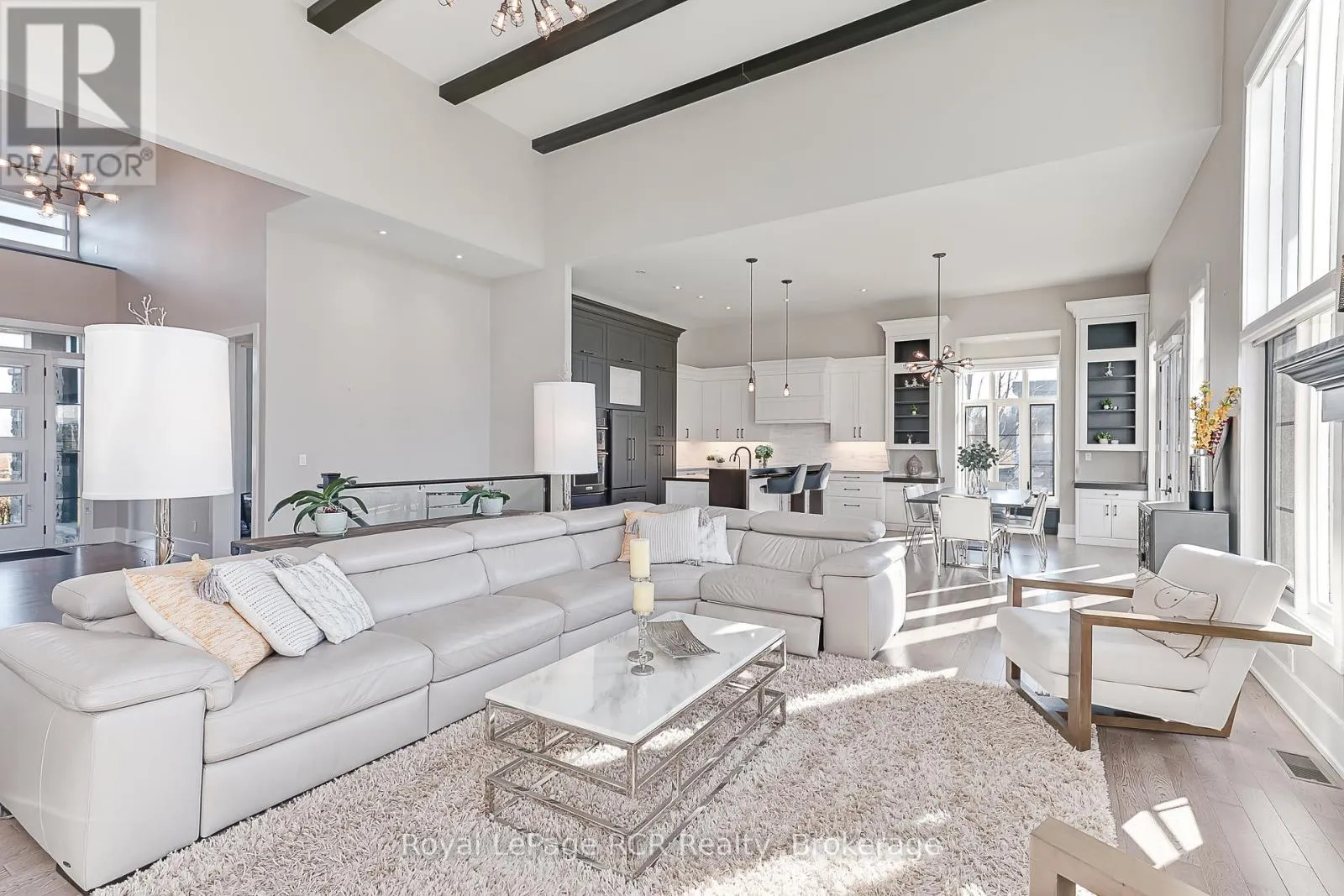 Cross Streets: 6th Street & Osler Bluff Road. ** Directions: Grey Rd 19 to Meadowlark Way to Windrose Valley Blvd. Windrose Estates Luxury Bungalow! This refined 5-bedroom, 4-bath bungalow has over 5000 square feet of finished space and sits on a 1-acre lot at the base of the escarpment, just minutes from Osler Bluff Ski Club and Blue Mountain. Sun-filled and sophisticated, the home features a dramatic Great Room with a 17' vaulted, beamed ceiling and a two-sided linear fireplace that opens to the west-facing composite deck. Designed for upscale living, the main floor includes two private primary suites with spa-inspired ensuites, a third guest bedroom with a 3-piece bath, upgraded lighting, 8' interior doors, a spacious laundry room, and a well-appointed mud/ski room. The chef's kitchen offers stone counters, premium built-in appliances, a marble mosaic backsplash, and a walk-out dining area. The fully finished lower level delivers true luxury with soaring ceilings and exceptional custom details: a glass-walled gym, a media lounge, and an entertainment bar, both clad in striking backlit white onyx marble, plus a glass-walled office/flex room, two additional bedrooms, and a 4-piece bath. The onyx bar and media space create an unmistakable wow factor. Garage parking for 3 cars, an expansive paved driveway, professionally landscaped grounds, and in-ground irrigation complete this high-end residence. Close to ski clubs, trails, beaches, and marinas, this is an exquisite four-season retreat. (id:27476)