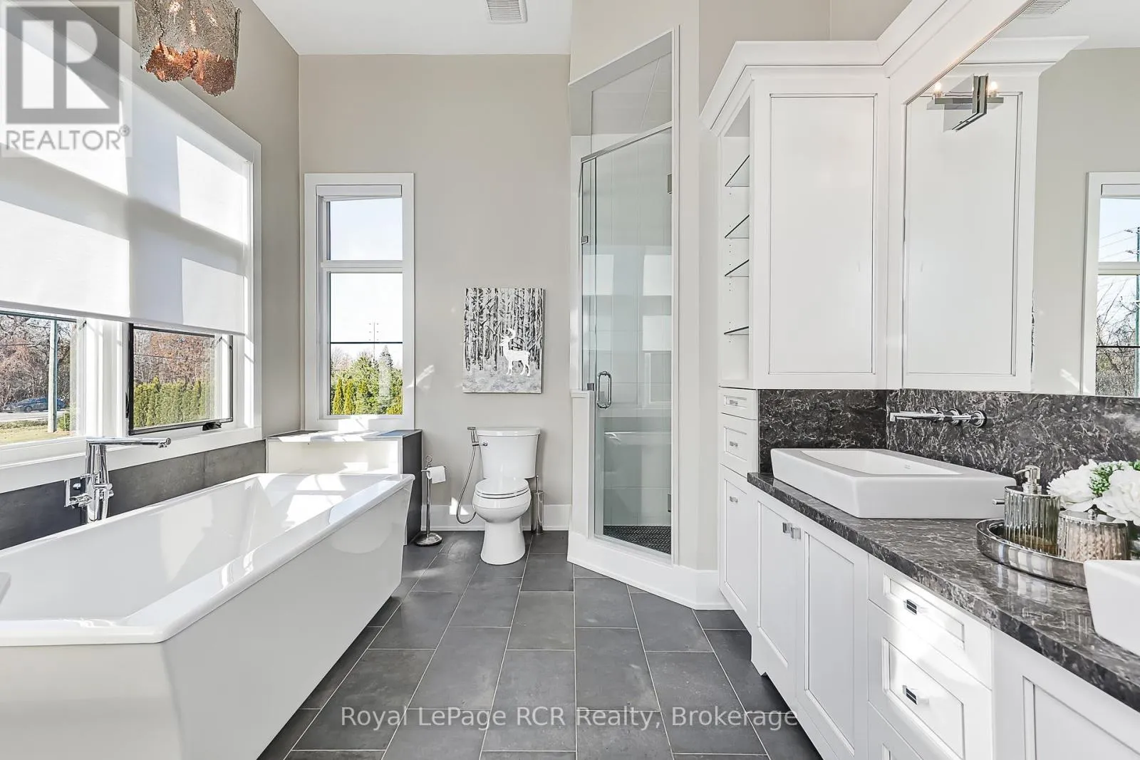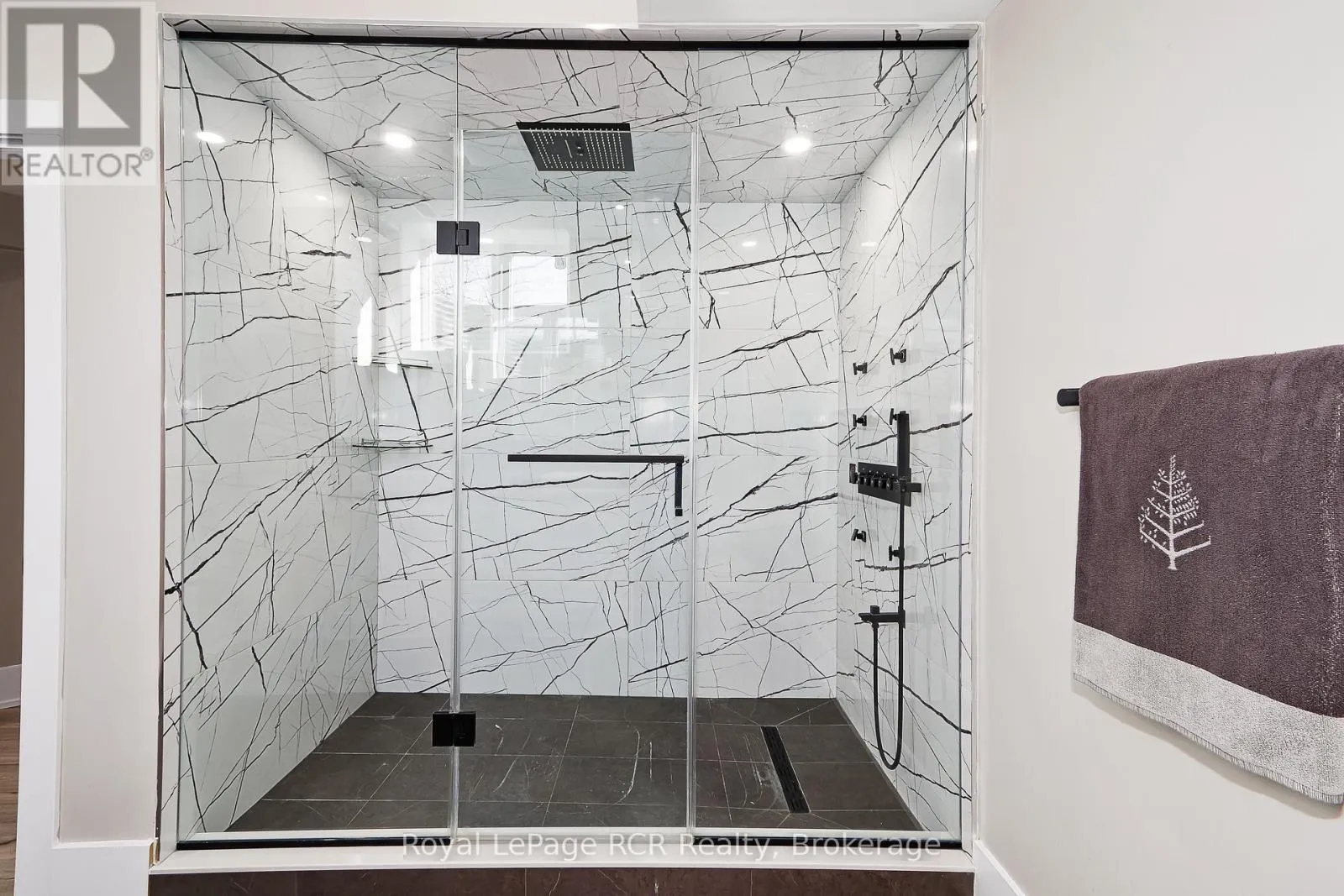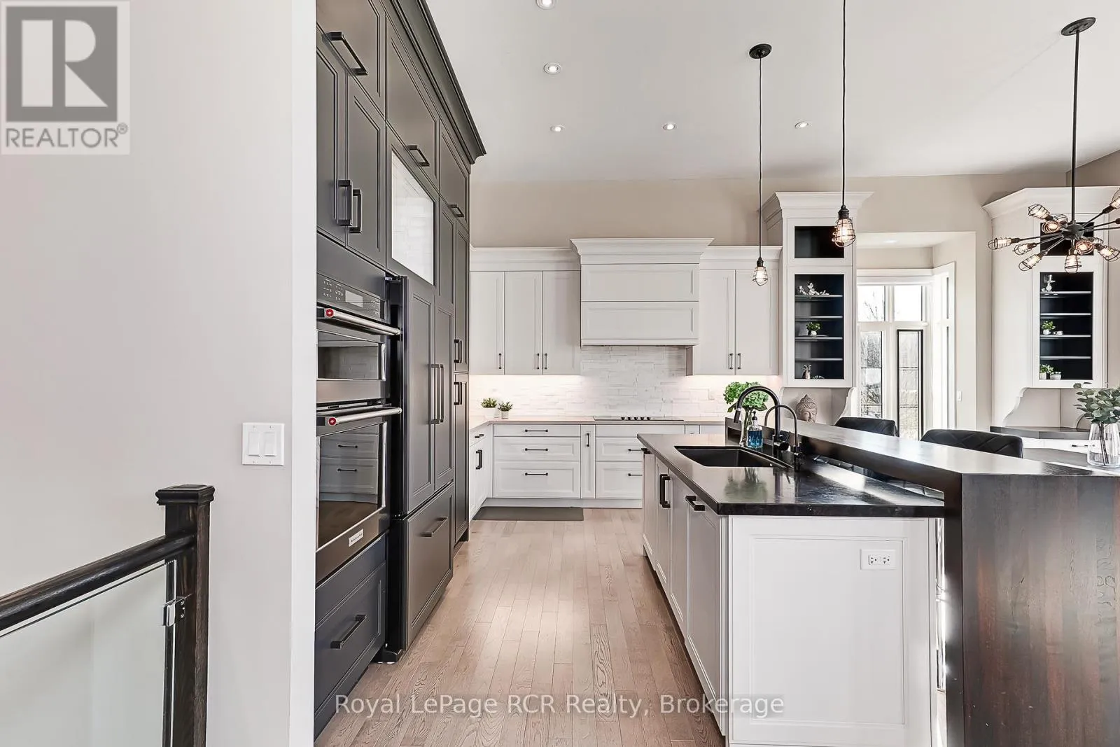 Cross Streets: 6th Street & Osler Bluff Road. ** Directions: Grey Rd 19 to Meadowlark Way to Windrose Valley Blvd. Windrose Estates Luxury Bungalow! This refined 5-bedroom, 4-bath bungalow has over 5000 square feet of finished space and sits on a 1-acre lot at the base of the escarpment, just minutes from Osler Bluff Ski Club and Blue Mountain. Sun-filled and sophisticated, the home features a dramatic Great Room with a 17' vaulted, beamed ceiling and a two-sided linear fireplace that opens to the west-facing composite deck. Designed for upscale living, the main floor includes two private primary suites with spa-inspired ensuites, a third guest bedroom with a 3-piece bath, upgraded lighting, 8' interior doors, a spacious laundry room, and a well-appointed mud/ski room. The chef's kitchen offers stone counters, premium built-in appliances, a marble mosaic backsplash, and a walk-out dining area. The fully finished lower level delivers true luxury with soaring ceilings and exceptional custom details: a glass-walled gym, a media lounge, and an entertainment bar, both clad in striking backlit white onyx marble, plus a glass-walled office/flex room, two additional bedrooms, and a 4-piece bath. The onyx bar and media space create an unmistakable wow factor. Garage parking for 3 cars, an expansive paved driveway, professionally landscaped grounds, and in-ground irrigation complete this high-end residence. Close to ski clubs, trails, beaches, and marinas, this is an exquisite four-season retreat. (id:27476)