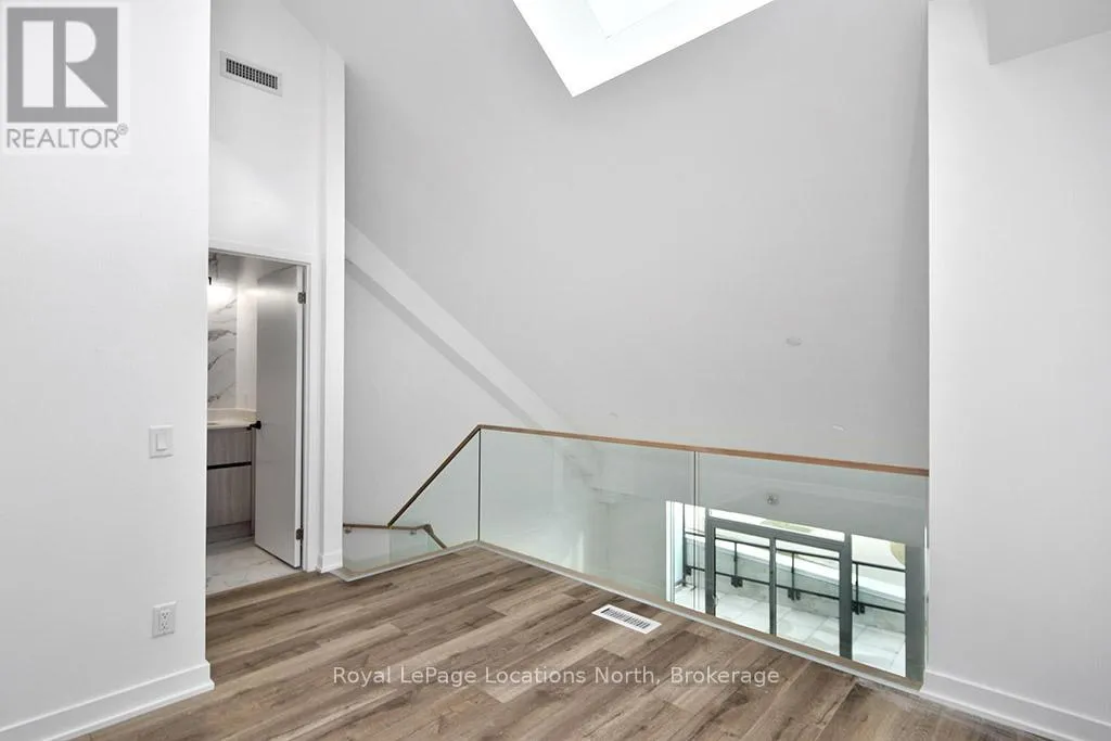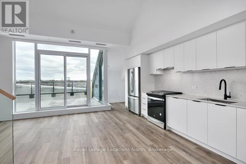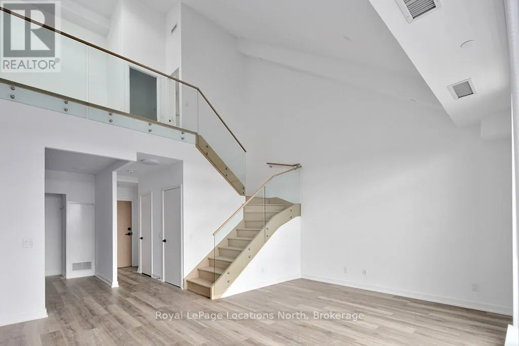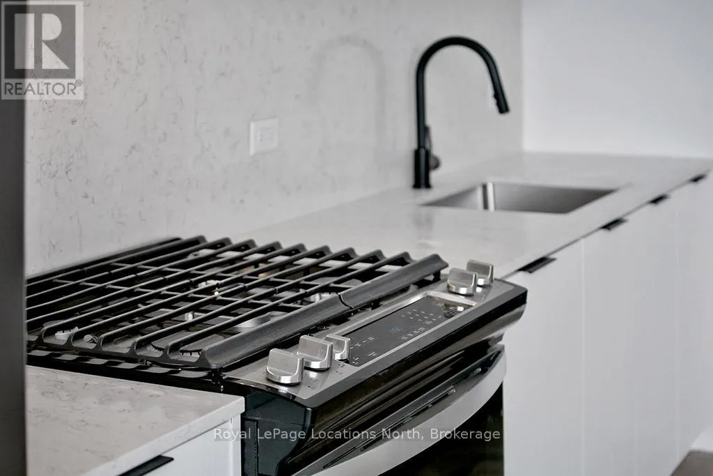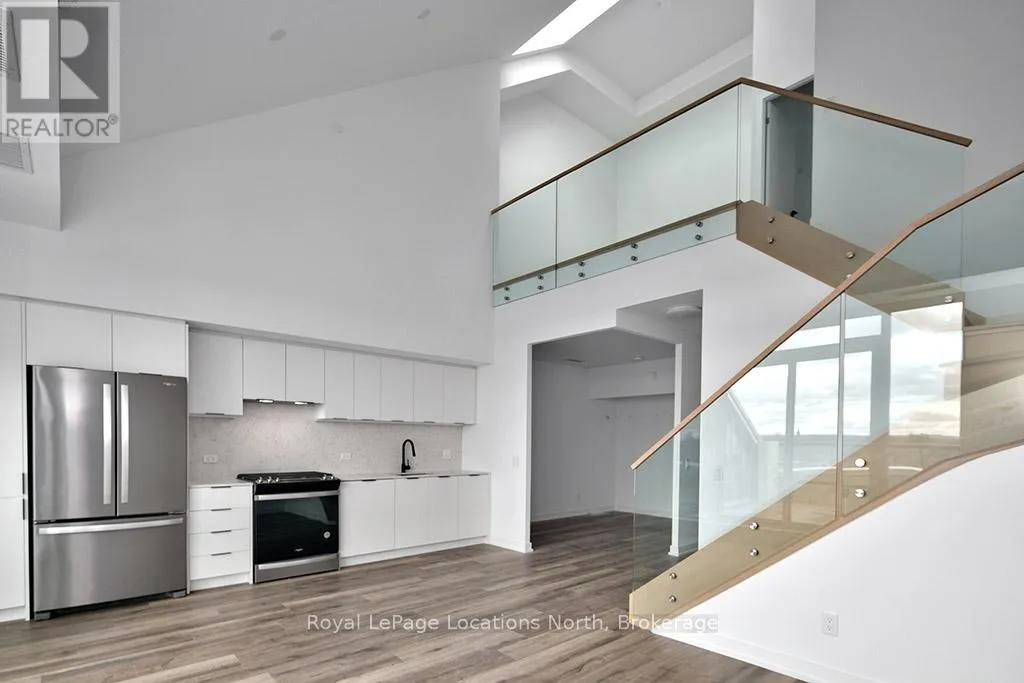 Cross Streets: Hwy 26/Heritage Drive. ** Directions: First St/Hwy 26 to Heritage Drive parking lot. Elegant penthouse apartment, ANNUAL UNFURNISHED LEASE, in Harbour House: an exceptional waterfront condominium in downtown Collingwood. This 2 level, 900 sq ft modern, 2 bedroom, plus den unit is a mix of luxury and comfort and has plenty of natural light with vaulted ceilings and open-concept living space. The kitchen features quartz countertops with matching backsplash; built-in, hidden dishwasher; a gas stove; fridge/freezer and modern flooring. Step outside to your own private 135 sq ft terrace with natural gas hookup for bbq and enjoy unobstructed panoramic views of Georgian Bay, Blue Mountain Escarpment and downtown Collingwood - perfect for morning coffee or to unwind at the end of a busy day. The main floor bedroom and den provide comfort for your guests and the flexibility to have an office space if you work from home. The main floor 4-piece bathroom has a soaker tub and overhead shower. Upstairs, the spacious loft-style primary suite has an ensuite 3-piece bathroom with shower and sink, along with a large closet. The main floor in-suite laundry is an added convenience as is the storage locker and underground parking garage with exclusive parking spot and EV connection. You will love the well considered amenities of Harbour House which include a fully equipped exercise room, dog wash station, two guest suites, underground parking and bike lock-up and fobbed entry. And let's not forget location! You are just steps to the grocery store, restaurants, amenities of downtown Collingwood, waterfront and trails. Just a short drive away are the ski hills, beach and golf. This place has it all! (id:27476)