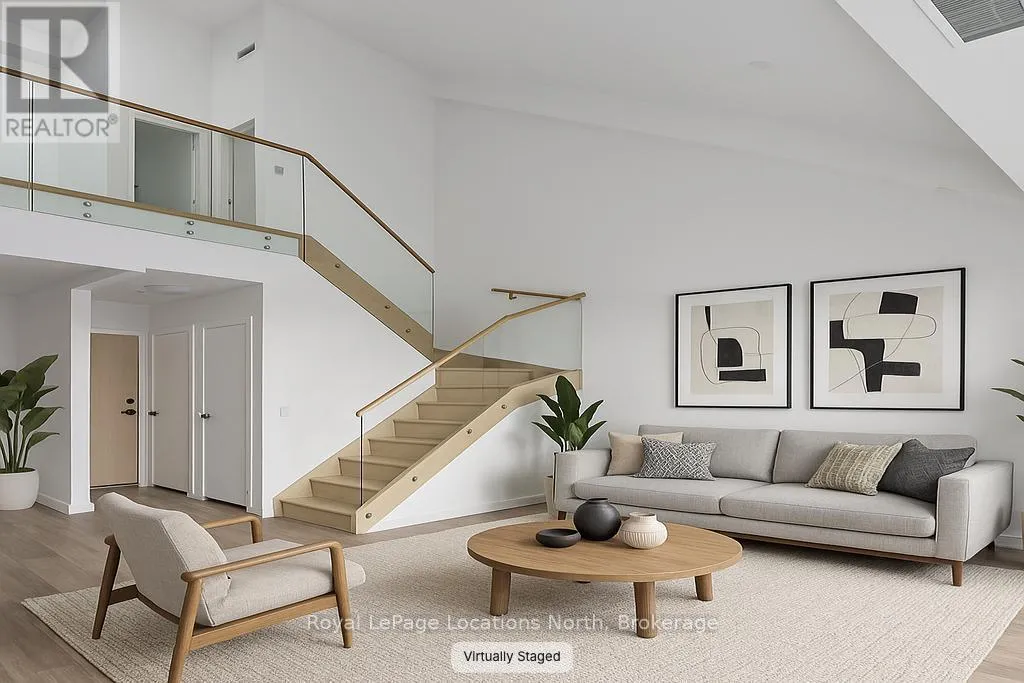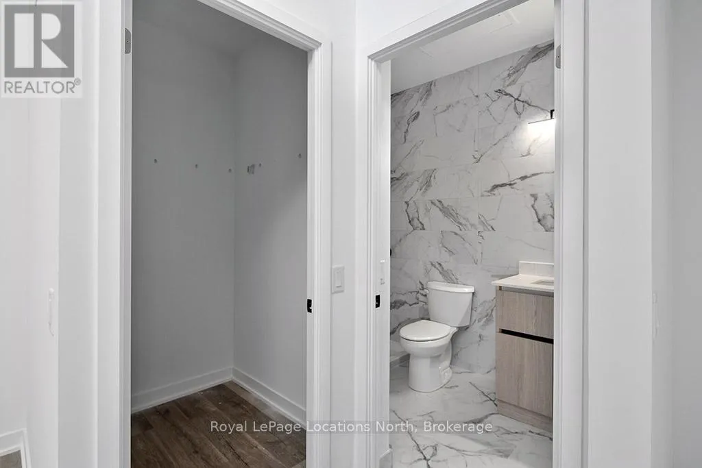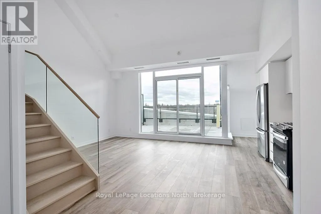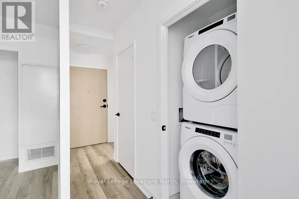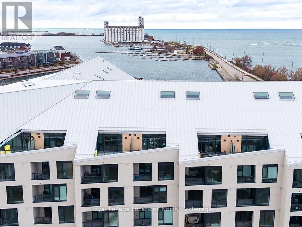 Cross Streets: Hwy 26/Heritage Drive. ** Directions: First St/Hwy 26 to Heritage Drive parking lot. Elegant penthouse apartment, ANNUAL UNFURNISHED LEASE, in Harbour House: an exceptional waterfront condominium in downtown Collingwood. This 2 level, 900 sq ft modern, 2 bedroom, plus den unit is a mix of luxury and comfort and has plenty of natural light with vaulted ceilings and open-concept living space. The kitchen features quartz countertops with matching backsplash; built-in, hidden dishwasher; a gas stove; fridge/freezer and modern flooring. Step outside to your own private 135 sq ft terrace with natural gas hookup for bbq and enjoy unobstructed panoramic views of Georgian Bay, Blue Mountain Escarpment and downtown Collingwood - perfect for morning coffee or to unwind at the end of a busy day. The main floor bedroom and den provide comfort for your guests and the flexibility to have an office space if you work from home. The main floor 4-piece bathroom has a soaker tub and overhead shower. Upstairs, the spacious loft-style primary suite has an ensuite 3-piece bathroom with shower and sink, along with a large closet. The main floor in-suite laundry is an added convenience as is the storage locker and underground parking garage with exclusive parking spot and EV connection. You will love the well considered amenities of Harbour House which include a fully equipped exercise room, dog wash station, two guest suites, underground parking and bike lock-up and fobbed entry. And let's not forget location! You are just steps to the grocery store, restaurants, amenities of downtown Collingwood, waterfront and trails. Just a short drive away are the ski hills, beach and golf. This place has it all! (id:27476)