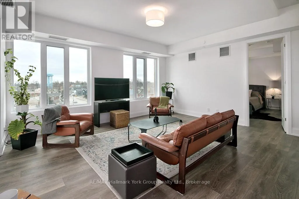 Cross Streets: HURONTARIO TO HUME. ** Directions: Hurontario to Hume st. Experience Luxury Living in the Heart of Collingwood! Imagine yourself unwinding on your expansive 322 sq ft balcony, soaking in breathtaking sunset views over the sparkling waters of Georgian Bay. This bright and airy 2-bedroom open-concept condo offers the perfect blend of comfort, style, and convenience right in the heart of downtown Collingwood. Step outside and enjoy easy access to boutique shops, top-rated dining, skiing, golfing, entertainment venues, and the scenic Georgian Trail. Whether you're taking a refreshing dip in Georgian Bay or exploring the natural beauty of the area, every day feels like a vacation. But the magic doesn't stop there - a roof-top oasis awaits! Stay fit in the state-of-the-art fitness center with panoramic views of the Escarpment, lounge in the designated relaxation area, or host memorable gatherings under the pergola surrounded by lush greenery. This is more than a home - you are truly on top of the world. (id:27476)