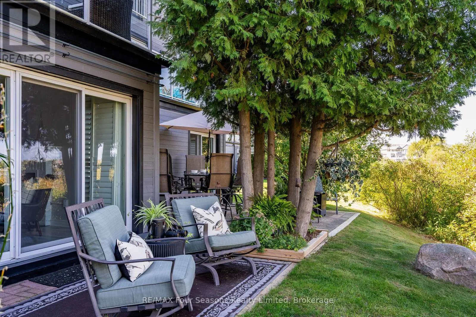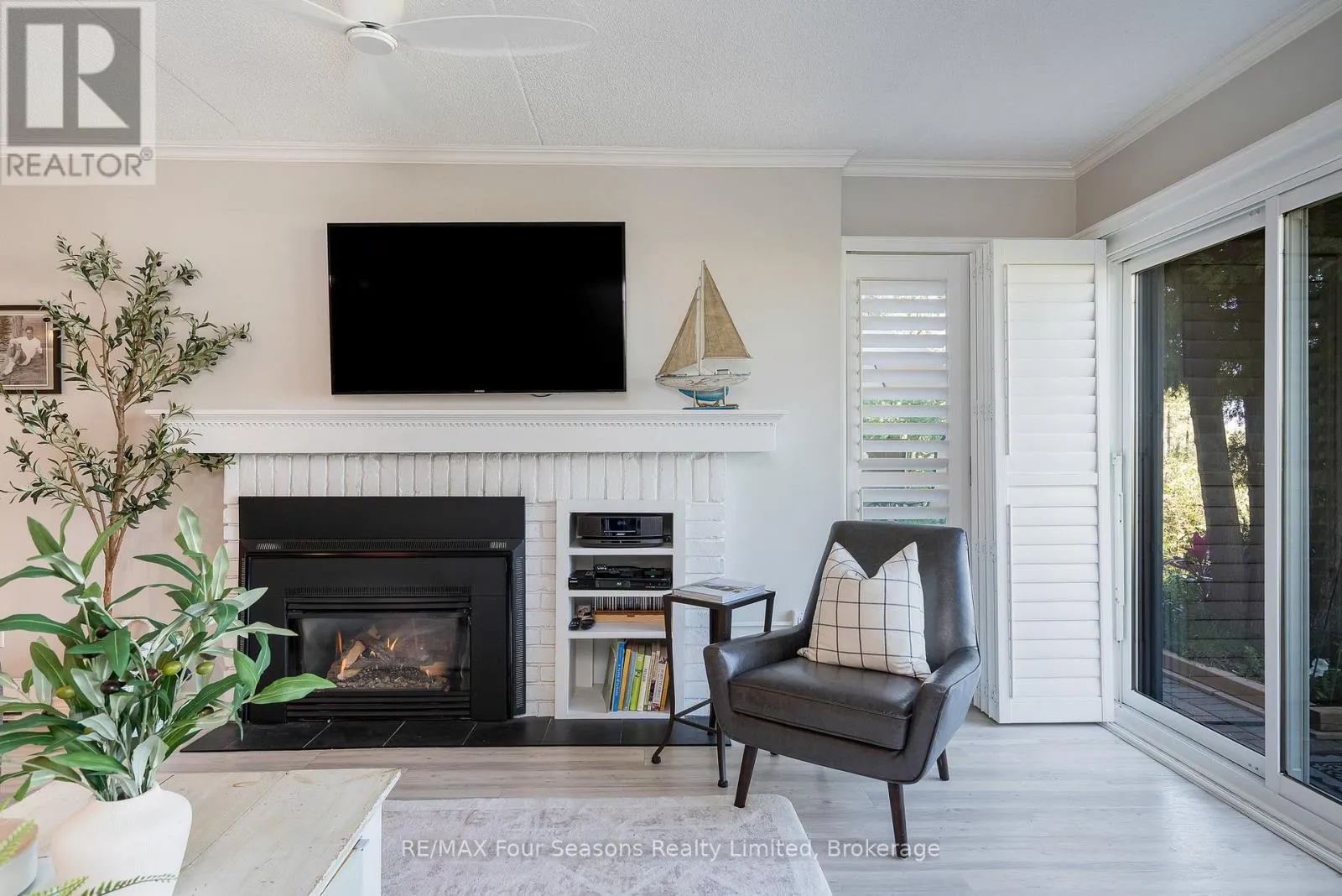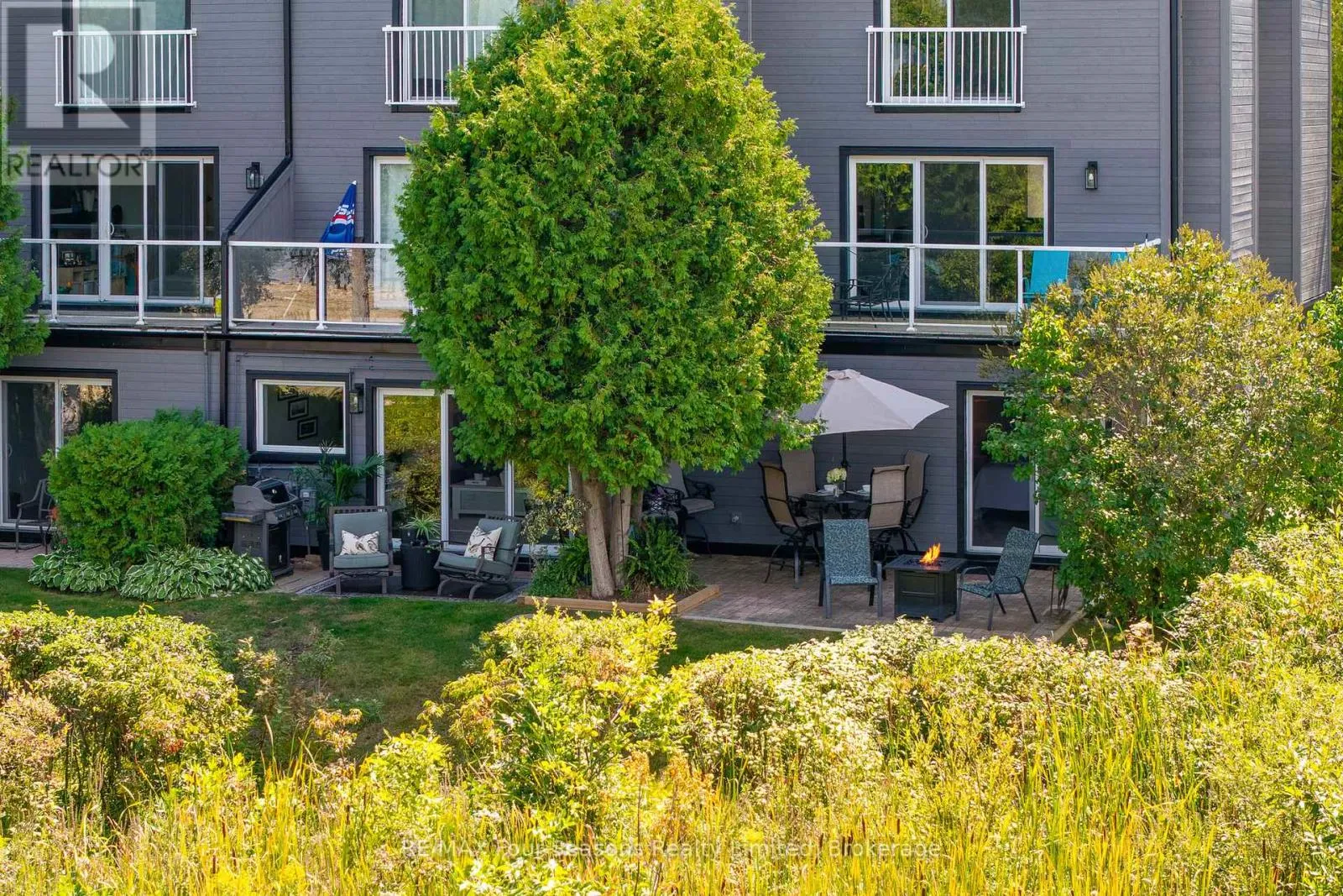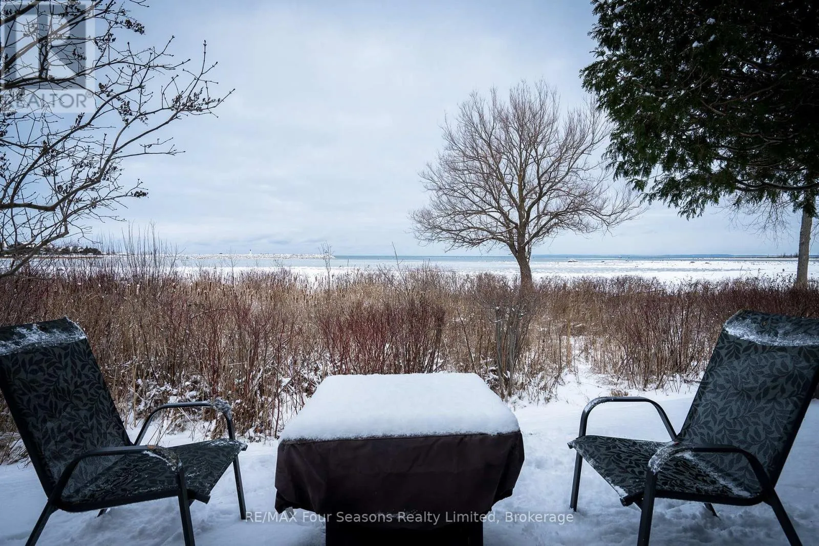 Cross Streets: Trott & Highway 26. ** Directions: Highway 26. Imagine waking up to the peaceful hush of winter-snow gently falling over Georgian Bay and the soft glow of sunrise painting the sky right outside your bedroom window. This rarely available 3-bedroom, 2-bathroom ground-level waterfront condo offers an intimate, year-round connection to the bay, with spectacular views from every room and direct access to the outdoors. Beautifully upgraded throughout, the condo features a modern kitchen with quartz countertops and high-end appliances, a bright open-concept living and dining area, and a cozy gas fireplace that makes winter mornings and evenings especially inviting. Two walkouts lead to an expansive patio overlooking the bay-perfect for bundling up with a hot coffee as you take in the serene winter landscape, and for dreaming about the warm summer days to come. Whether dusted in fresh snow or sparkling under a summer sun, the scenery here is breathtaking. Winter sunrises and sunsets feel magical, and as the seasons shift, you'll be ready to enjoy the private beach, kayak storage, and outdoor living that summer brings. Life at this condo is designed for comfort, convenience, and four-season enjoyment. Recently completed exterior improvements (all assessments fully paid) offer peace of mind, and Bell Fibre with unlimited internet-included in your condo fees-keeps you connected if you work from home. Step outside to enjoy the natural beauty of Georgian Bay, or take a short drive into Collingwood for boutique shops and great restaurants. With world-class skiing just minutes away in winter and exceptional golfing, hiking, and waterfront activities in summer, this is a true four-season retreat. Whether you're seeking a full-time residence, a weekend escape, or both, this waterfront condo offers a rare opportunity to embrace nature, comfort, and a lifestyle that feels like a getaway in every season. (id:27476)