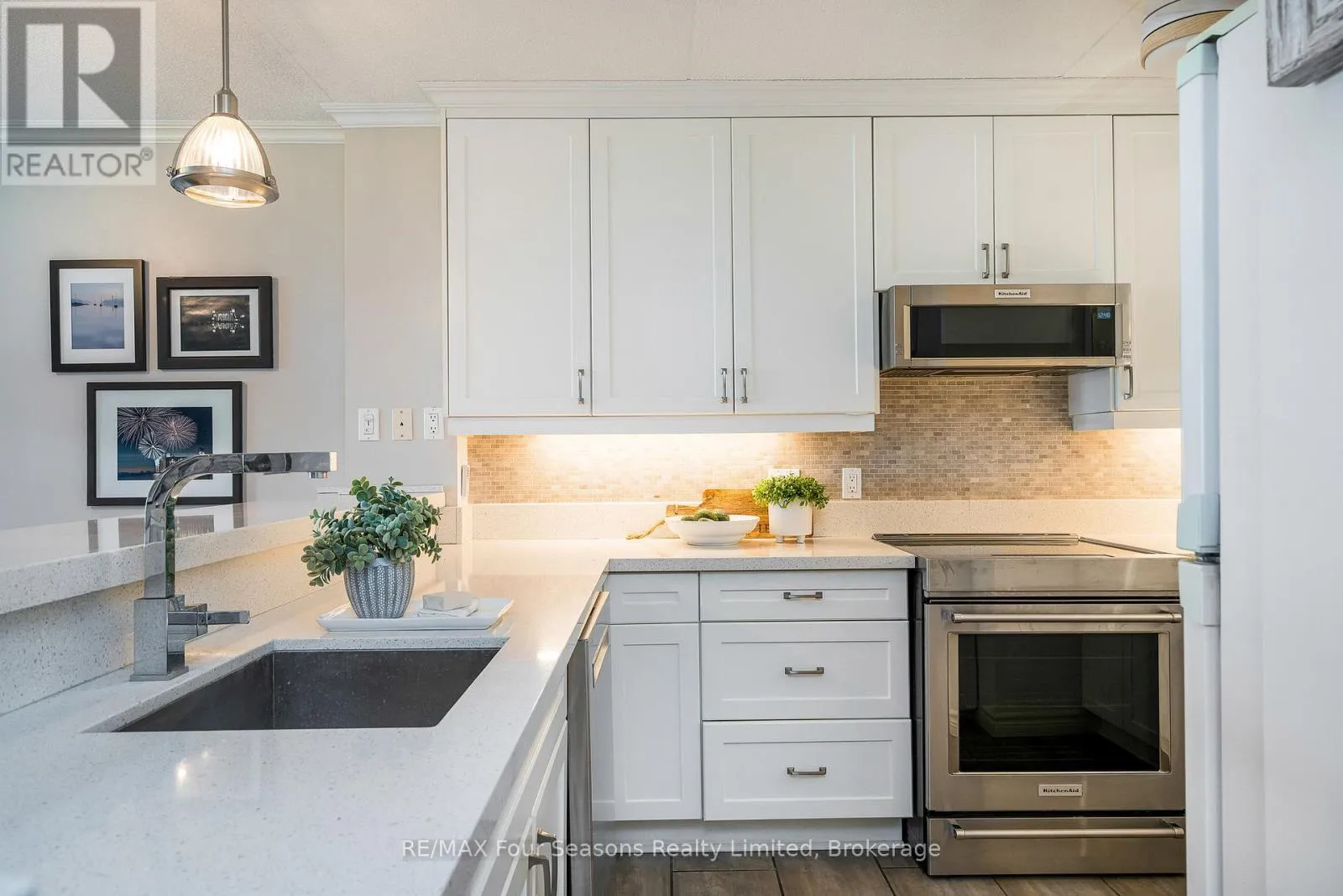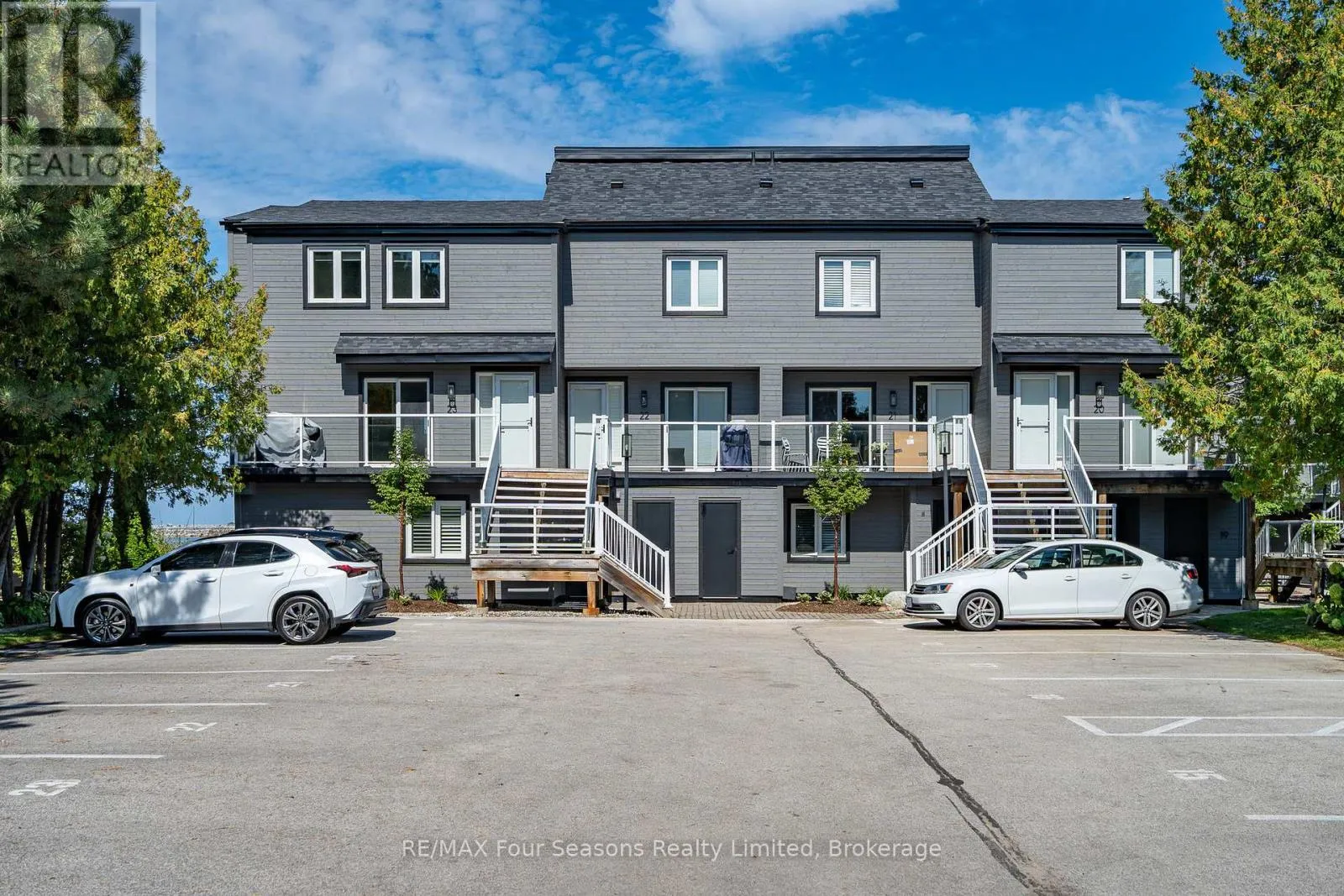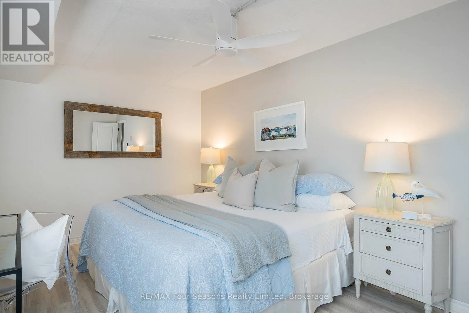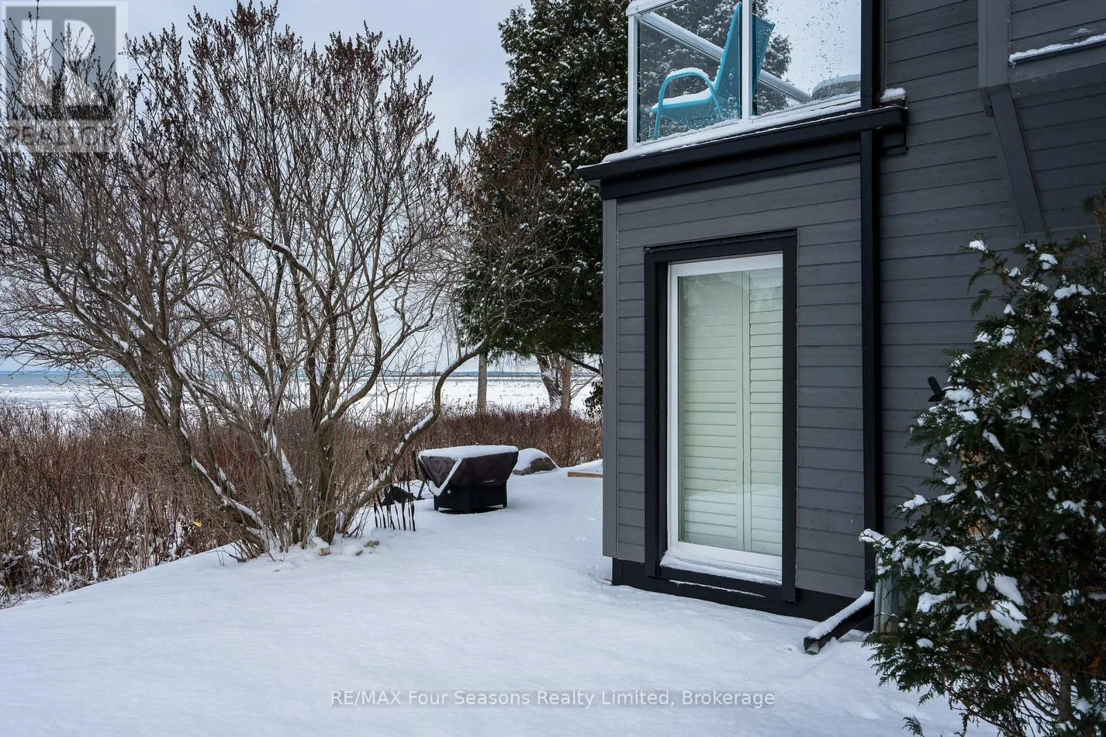 Cross Streets: Trott & Highway 26. ** Directions: Highway 26. Imagine waking up to the peaceful hush of winter-snow gently falling over Georgian Bay and the soft glow of sunrise painting the sky right outside your bedroom window. This rarely available 3-bedroom, 2-bathroom ground-level waterfront condo offers an intimate, year-round connection to the bay, with spectacular views from every room and direct access to the outdoors. Beautifully upgraded throughout, the condo features a modern kitchen with quartz countertops and high-end appliances, a bright open-concept living and dining area, and a cozy gas fireplace that makes winter mornings and evenings especially inviting. Two walkouts lead to an expansive patio overlooking the bay-perfect for bundling up with a hot coffee as you take in the serene winter landscape, and for dreaming about the warm summer days to come. Whether dusted in fresh snow or sparkling under a summer sun, the scenery here is breathtaking. Winter sunrises and sunsets feel magical, and as the seasons shift, you'll be ready to enjoy the private beach, kayak storage, and outdoor living that summer brings. Life at this condo is designed for comfort, convenience, and four-season enjoyment. Recently completed exterior improvements (all assessments fully paid) offer peace of mind, and Bell Fibre with unlimited internet-included in your condo fees-keeps you connected if you work from home. Step outside to enjoy the natural beauty of Georgian Bay, or take a short drive into Collingwood for boutique shops and great restaurants. With world-class skiing just minutes away in winter and exceptional golfing, hiking, and waterfront activities in summer, this is a true four-season retreat. Whether you're seeking a full-time residence, a weekend escape, or both, this waterfront condo offers a rare opportunity to embrace nature, comfort, and a lifestyle that feels like a getaway in every season. (id:27476)