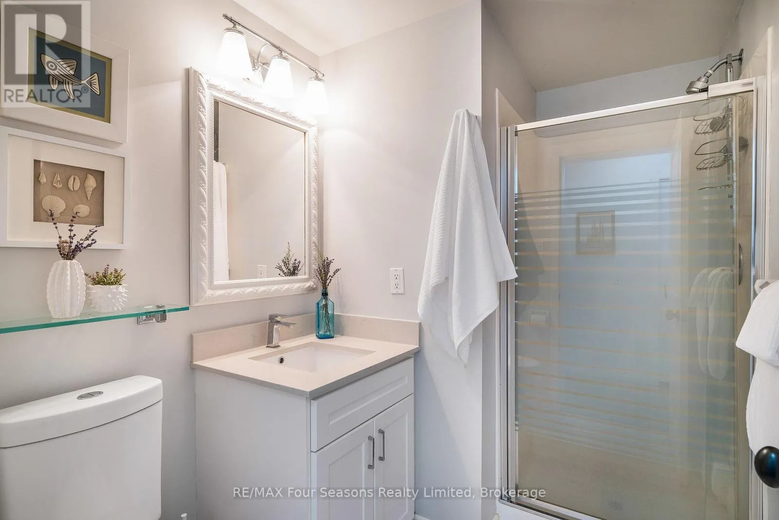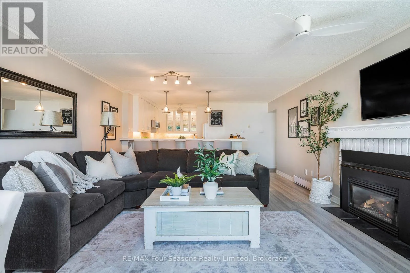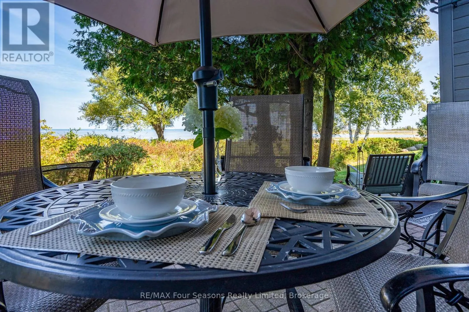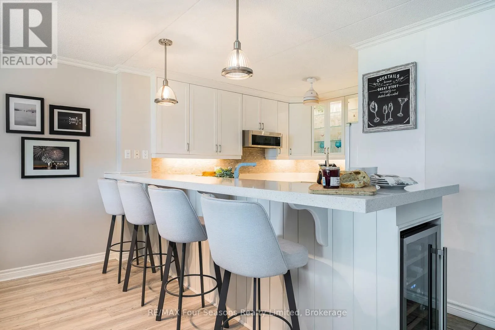 Cross Streets: Trott & Highway 26. ** Directions: Highway 26. Imagine waking up to the peaceful hush of winter-snow gently falling over Georgian Bay and the soft glow of sunrise painting the sky right outside your bedroom window. This rarely available 3-bedroom, 2-bathroom ground-level waterfront condo offers an intimate, year-round connection to the bay, with spectacular views from every room and direct access to the outdoors. Beautifully upgraded throughout, the condo features a modern kitchen with quartz countertops and high-end appliances, a bright open-concept living and dining area, and a cozy gas fireplace that makes winter mornings and evenings especially inviting. Two walkouts lead to an expansive patio overlooking the bay-perfect for bundling up with a hot coffee as you take in the serene winter landscape, and for dreaming about the warm summer days to come. Whether dusted in fresh snow or sparkling under a summer sun, the scenery here is breathtaking. Winter sunrises and sunsets feel magical, and as the seasons shift, you'll be ready to enjoy the private beach, kayak storage, and outdoor living that summer brings. Life at this condo is designed for comfort, convenience, and four-season enjoyment. Recently completed exterior improvements (all assessments fully paid) offer peace of mind, and Bell Fibre with unlimited internet-included in your condo fees-keeps you connected if you work from home. Step outside to enjoy the natural beauty of Georgian Bay, or take a short drive into Collingwood for boutique shops and great restaurants. With world-class skiing just minutes away in winter and exceptional golfing, hiking, and waterfront activities in summer, this is a true four-season retreat. Whether you're seeking a full-time residence, a weekend escape, or both, this waterfront condo offers a rare opportunity to embrace nature, comfort, and a lifestyle that feels like a getaway in every season. (id:27476)
