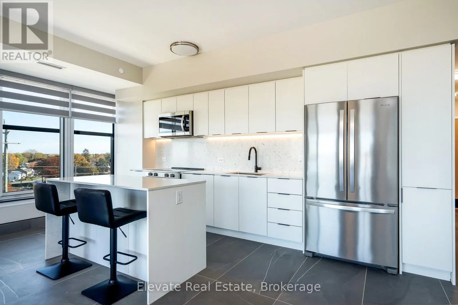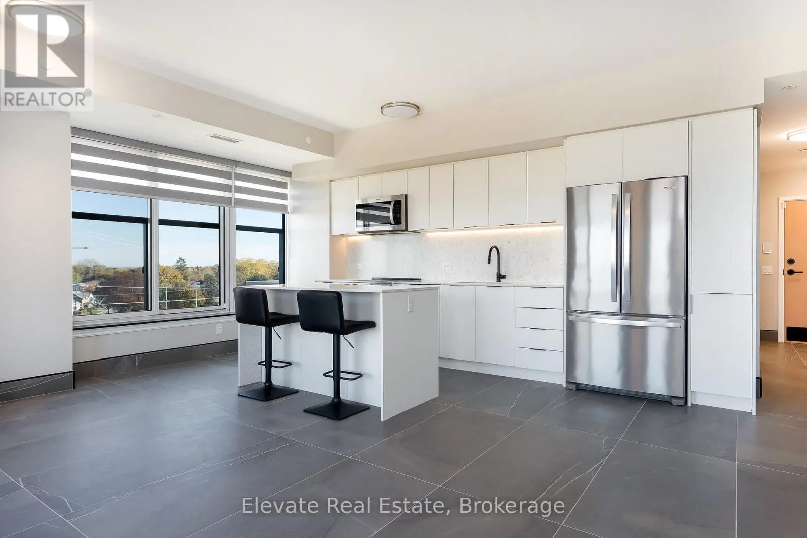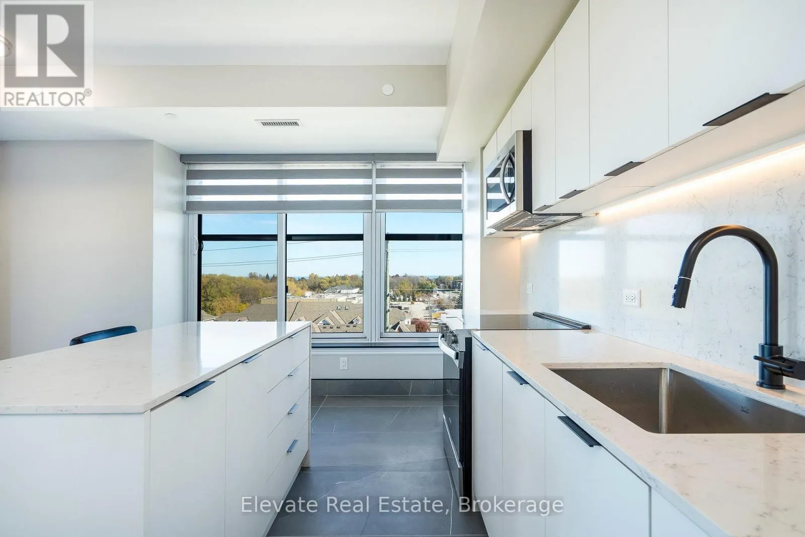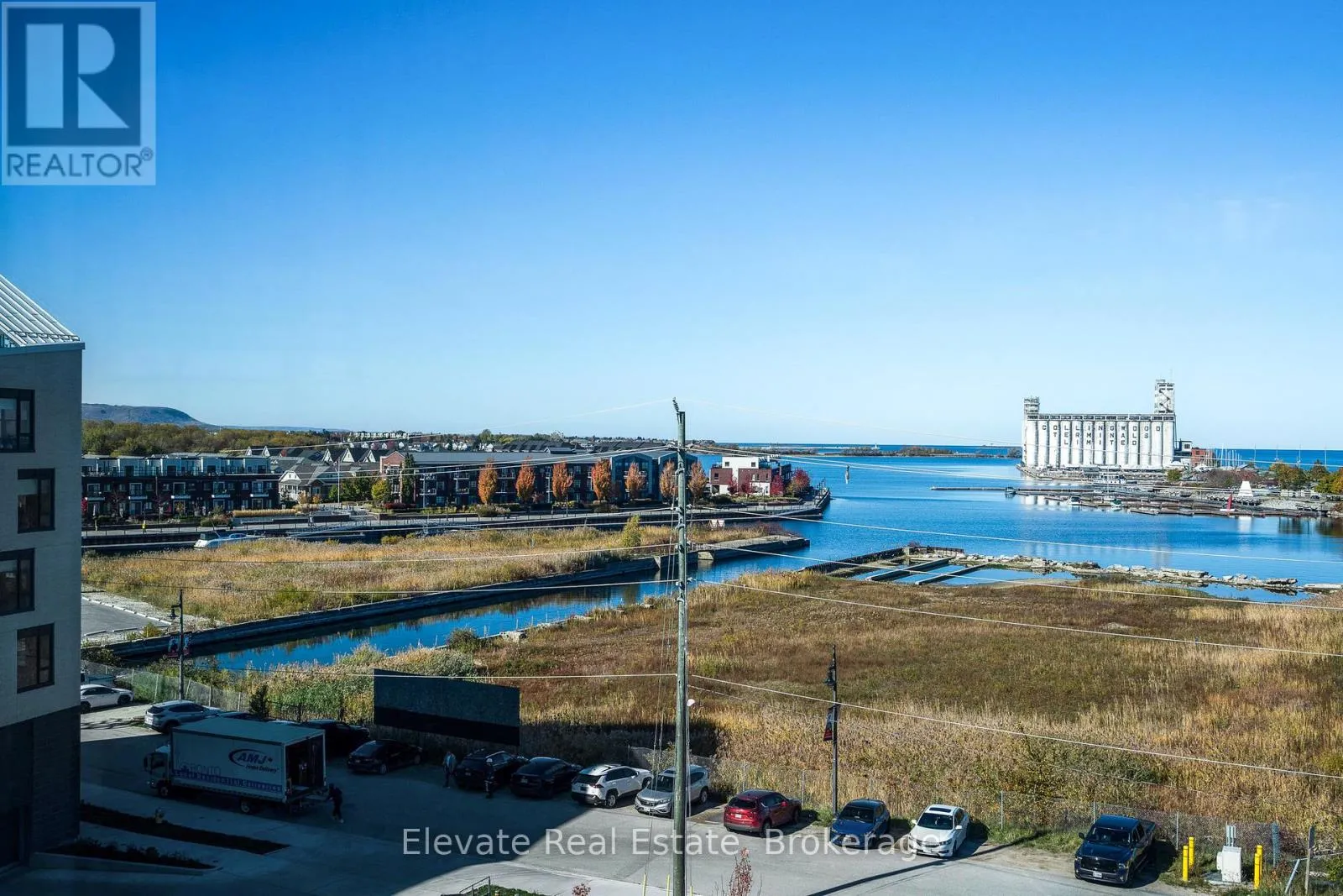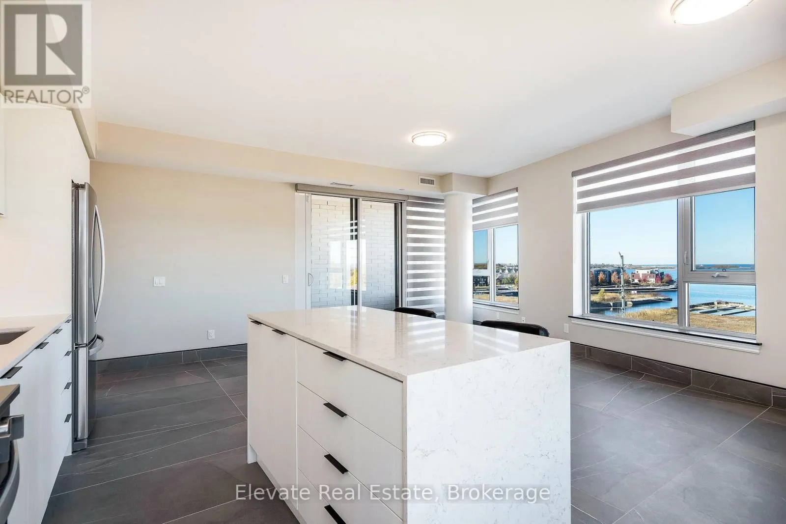 Cross Streets: Hurontario St/Huron St. ** Directions: Hurontario St - Huron Street. Experience elevated waterfront living at Harbour House, Collingwood's most coveted new luxury residence. This brand-new, fully upgraded corner suite offers sweeping, unobstructed views of Georgian Bay, the iconic Collingwood Terminals, and the Blue Mountain Escarpment. Featuring 930 sq. ft. of beautifully appointed interior space plus a 100 sq. ft. balcony, this 2-bedroom, 2-bath suite blends modern coastal aesthetics with exceptional craftsmanship. Highlights include 9-ft ceilings, a quartz waterfall island with matching backsplash, oversized 2' x 3' stone tiles, custom built-ins, marble window sills, zebra blinds, a concealed dishwasher, and a fully integrated security system. Every finish has been thoughtfully selected to create an atmosphere of comfort, sophistication, and effortless style. Resort-inspired amenities include a fitness studio, guest suites, secure fobbed entry, heated underground parking, and a private storage locker. Professionally managed, this suite promises a refined, worry-free living experience for discerning tenants. With Scandinavian-inspired architecture that reflects Collingwood's four-season lifestyle, the building harmonizes nature, design, and modern convenience. Steps to fine dining, boutiques, trails, and the waterfront-and minutes to Blue Mountain, golf, and beaches-this is Collingwood's premier address for executive living. Ideal for professionals, retirees, or anyone seeking a sophisticated home base in Ontario's most vibrant year-round destination. (id:27476)