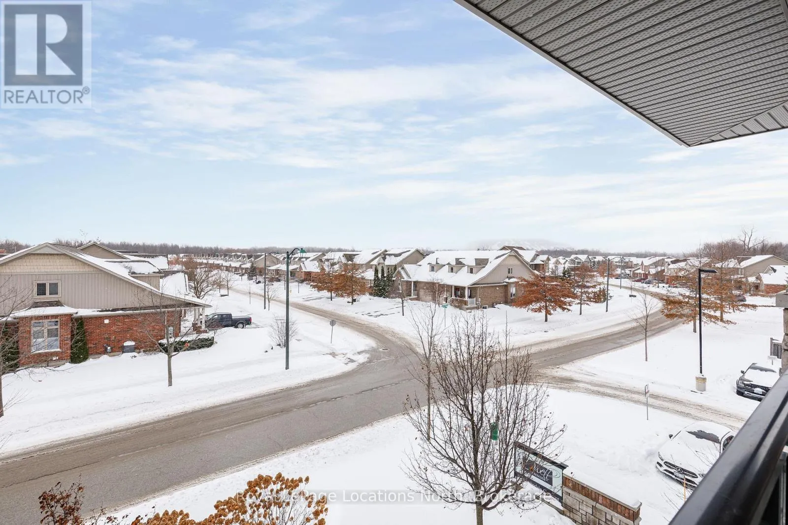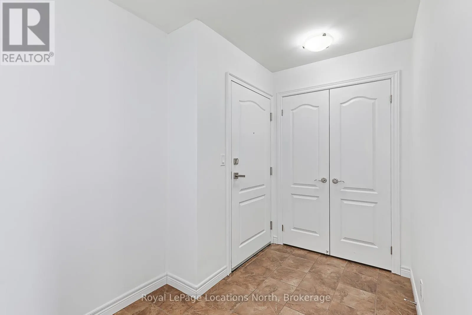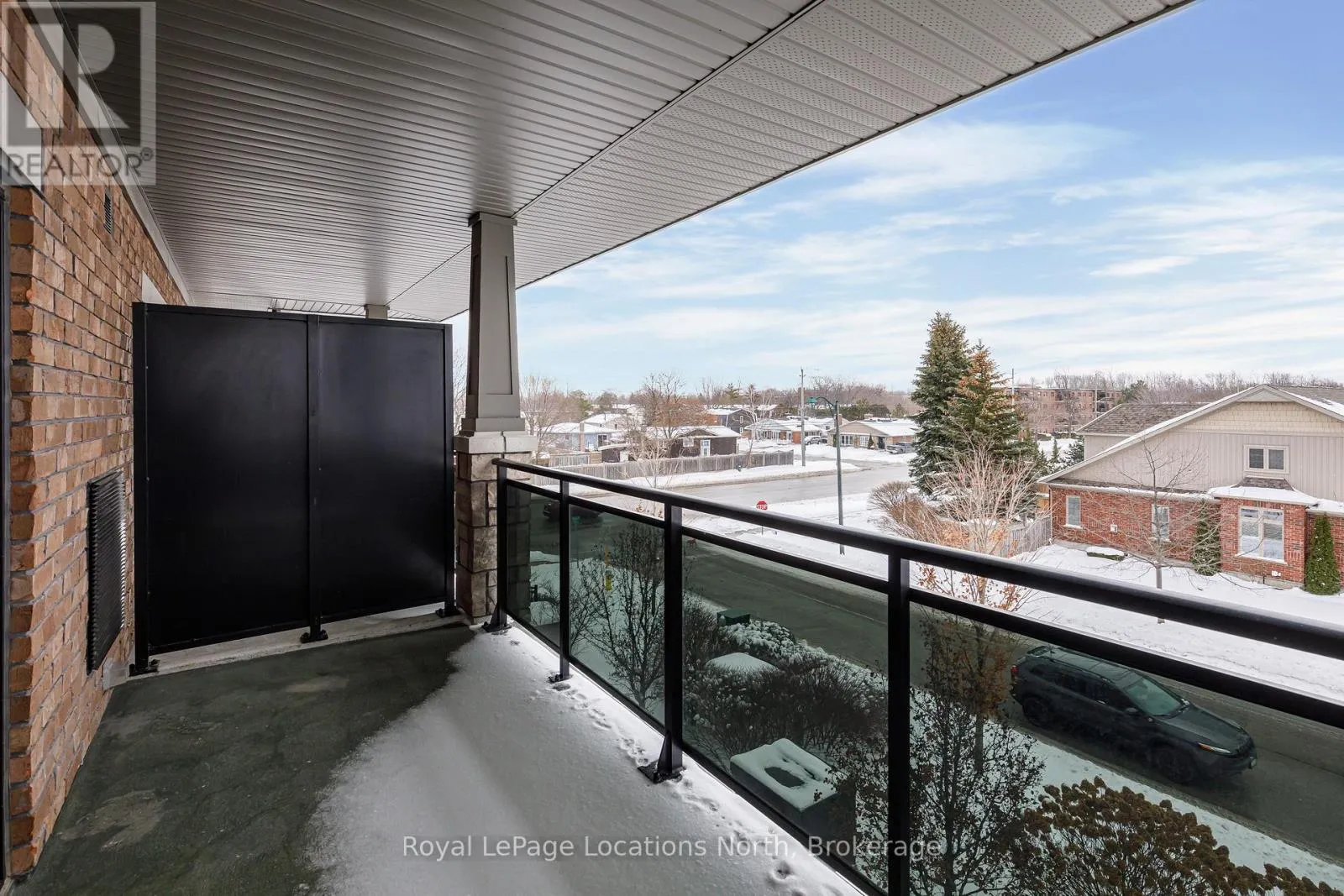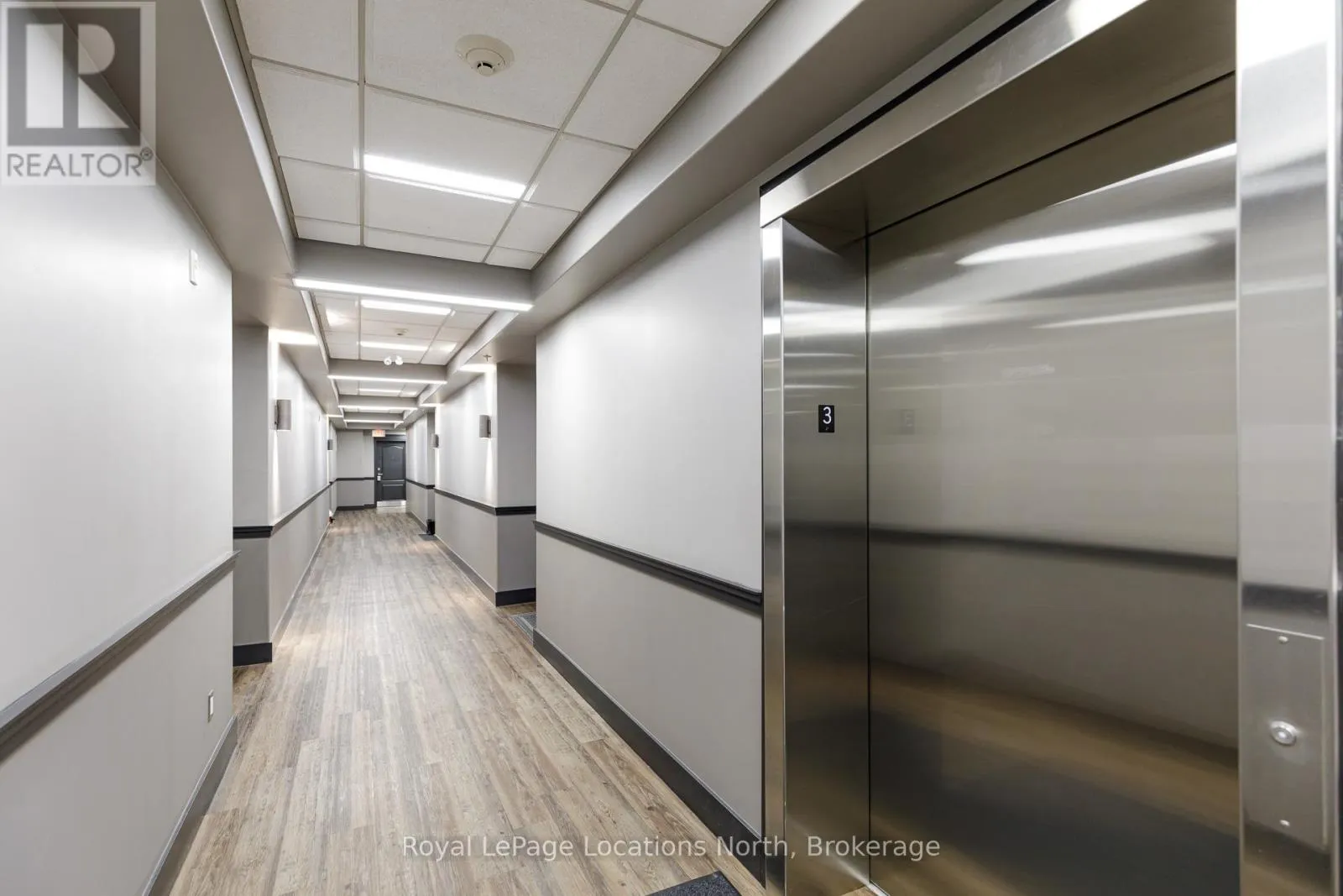 Cross Streets: Chamberlain & Barr. ** Directions: Hight St. to Chamberlain. Welcome to the luxury residence known as Dwell at Creekside. Built by Devonleigh Homes this Linden model offers 2 bedrooms, 1 bath and 924 square feet of comfortable living space. Open concept with a walk-out to a covered terrace. Great location on the top level, end unit with south facing views! Kitchen updated by Cabneato approx 5 years ago including cupboards, counters and tile backsplash. Over-sized pantry cupboard. Stainless steel appliances, bar stools and small freezer included. In-suite laundry has a laundry tub. Primary bedroom offers double windows and walk-in closet. 2nd bedroom is west facing and has a huge closet for storage. Parking space located just outside the main door! Additional parking space is $50 per month. Assigned storage locker included and additional bicycle storage available. There is also an elevator, mail room, garbage/recycling room and ample visitor parking. Located next to the lobby is the owner's meeting room with kitchenette that may be booked for use at no cost. Dwell is a very quiet building consisting of retirees, snowbirds and weekenders. Located close to shopping, trails, skiing, golf and Georgian Bay. Come and check out this well appointed unit available for immediate possession today! (id:27476)