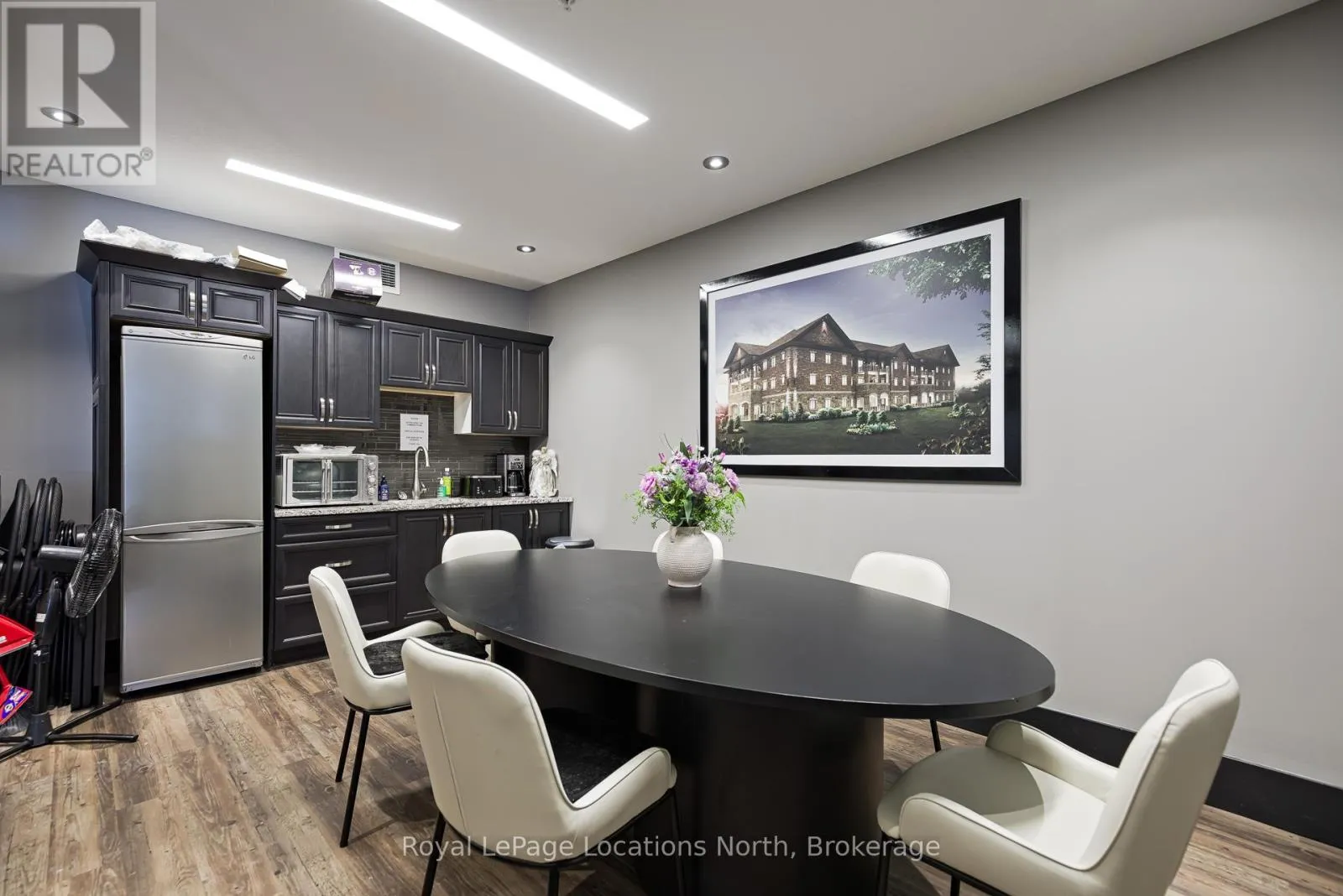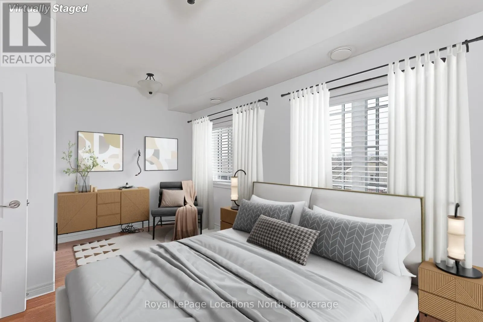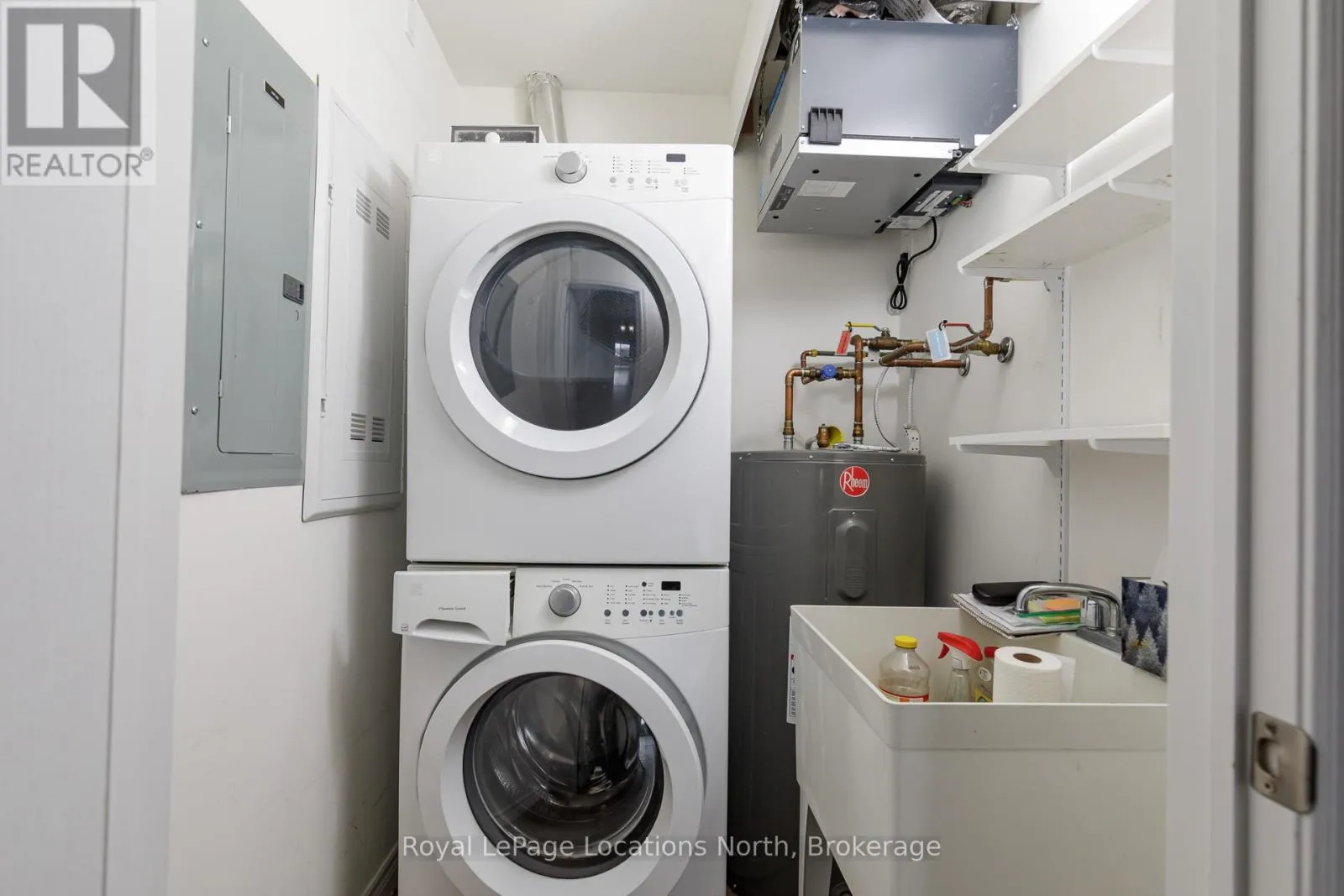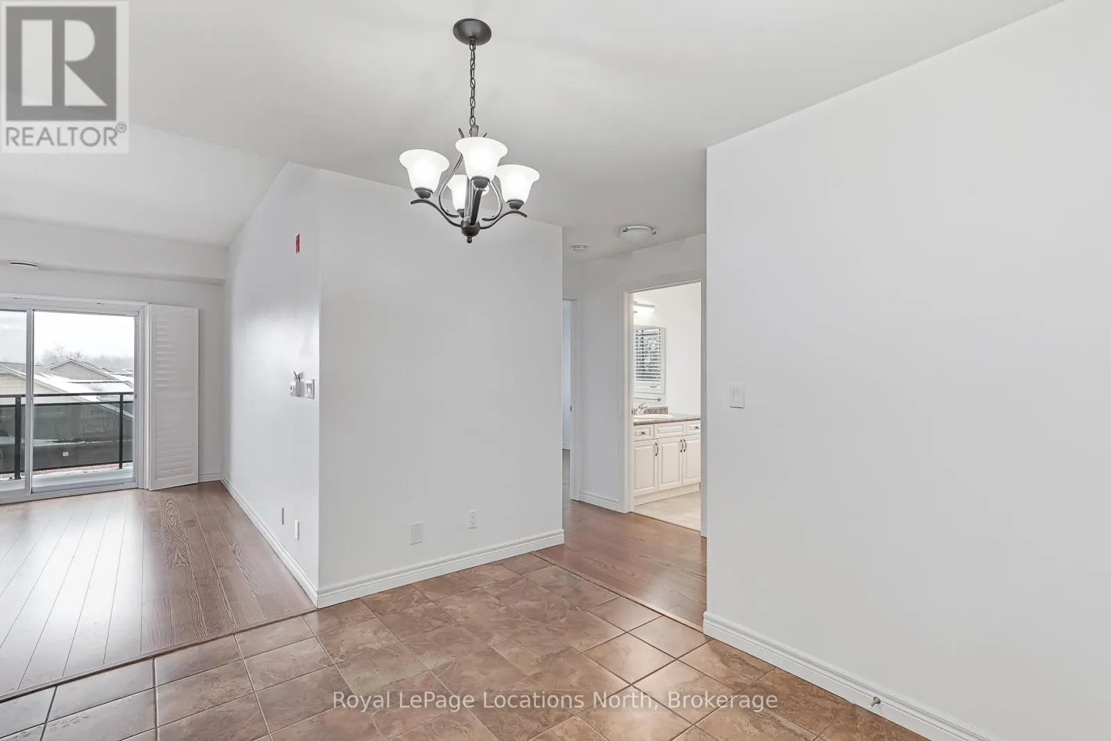 Cross Streets: Chamberlain & Barr. ** Directions: Hight St. to Chamberlain. Welcome to the luxury residence known as Dwell at Creekside. Built by Devonleigh Homes this Linden model offers 2 bedrooms, 1 bath and 924 square feet of comfortable living space. Open concept with a walk-out to a covered terrace. Great location on the top level, end unit with south facing views! Kitchen updated by Cabneato approx 5 years ago including cupboards, counters and tile backsplash. Over-sized pantry cupboard. Stainless steel appliances, bar stools and small freezer included. In-suite laundry has a laundry tub. Primary bedroom offers double windows and walk-in closet. 2nd bedroom is west facing and has a huge closet for storage. Parking space located just outside the main door! Additional parking space is $50 per month. Assigned storage locker included and additional bicycle storage available. There is also an elevator, mail room, garbage/recycling room and ample visitor parking. Located next to the lobby is the owner's meeting room with kitchenette that may be booked for use at no cost. Dwell is a very quiet building consisting of retirees, snowbirds and weekenders. Located close to shopping, trails, skiing, golf and Georgian Bay. Come and check out this well appointed unit available for immediate possession today! (id:27476)
