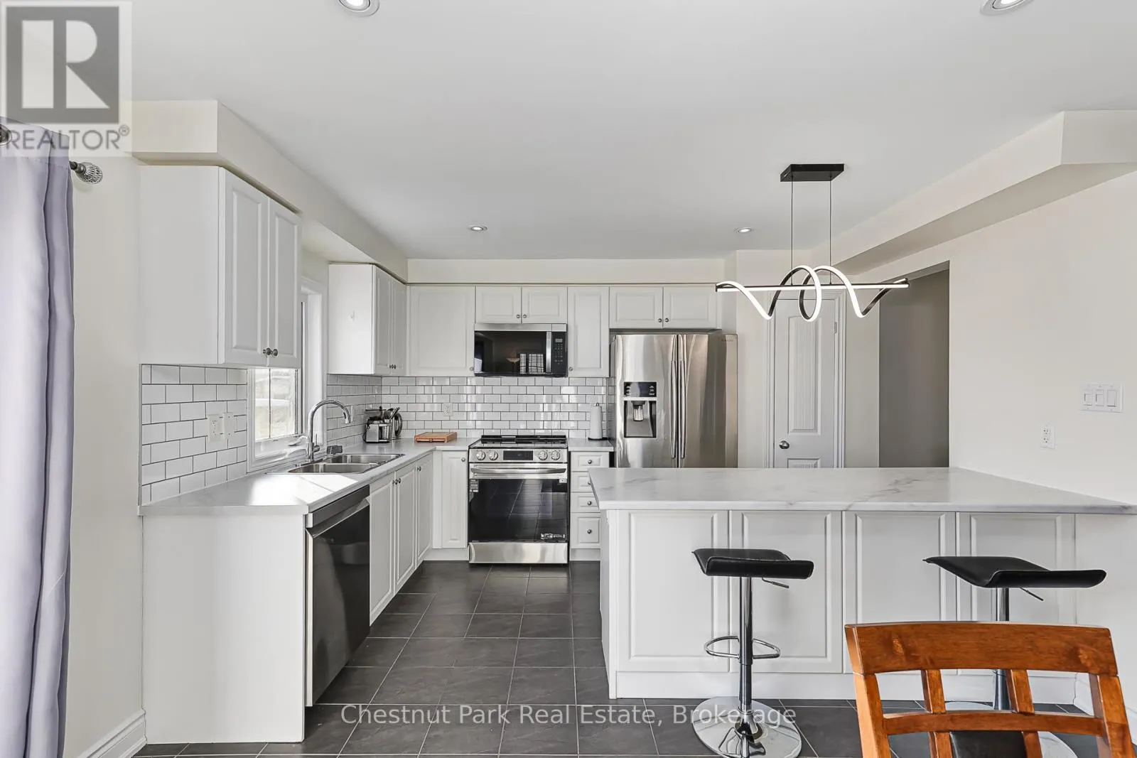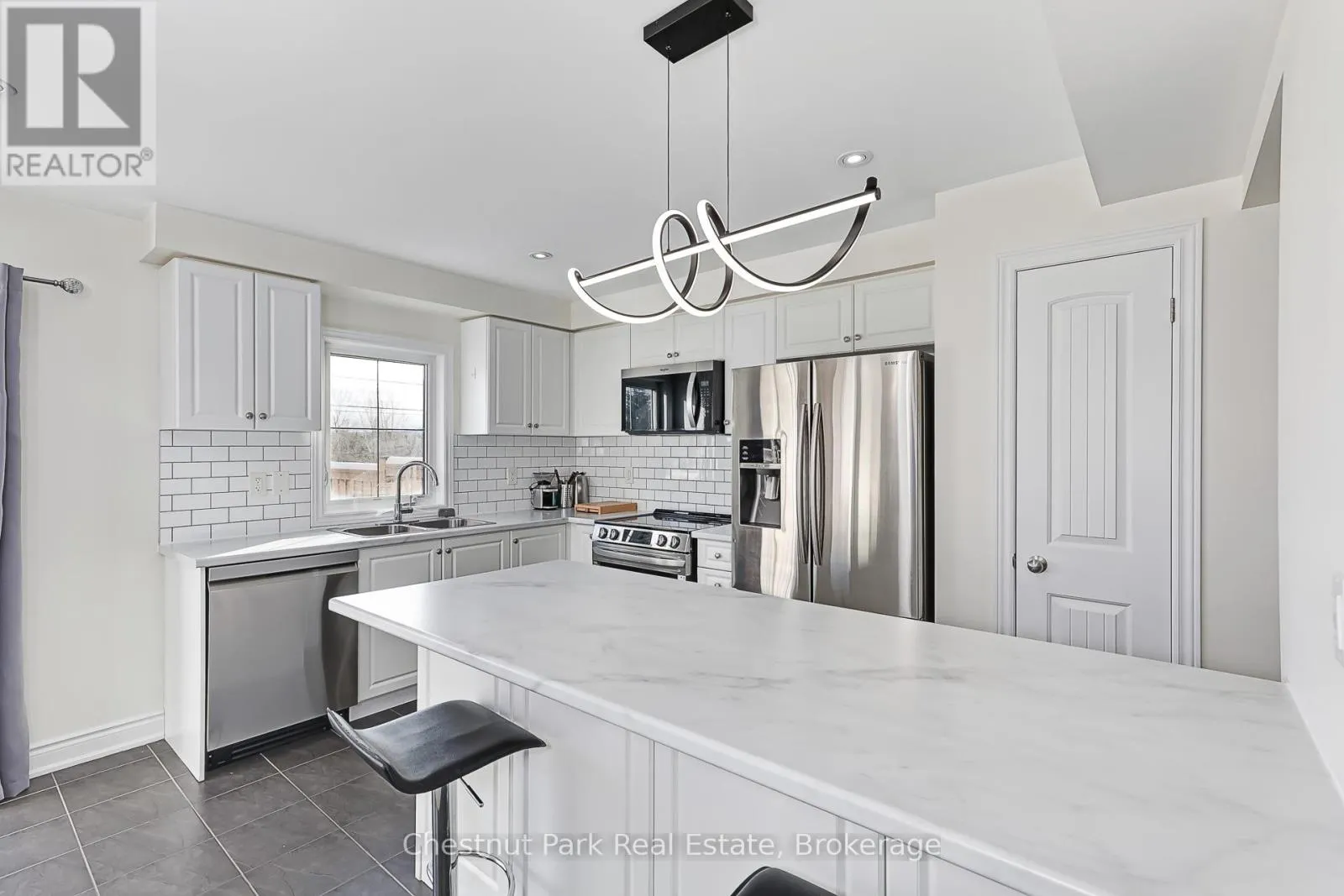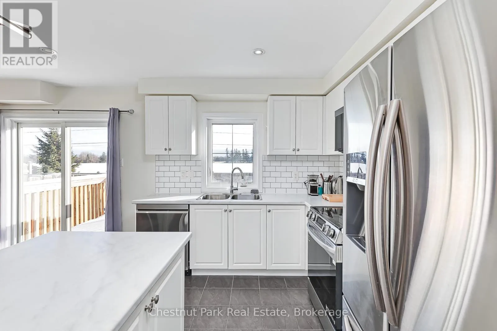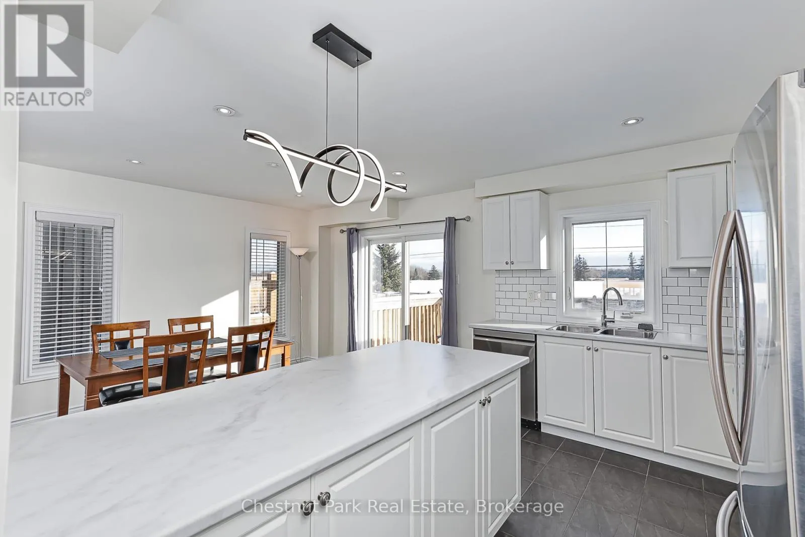 Cross Streets: Hughes and Robertson. ** Directions: Poplar Side Road to Pretty River Estates onto Hughes then onto Robertson. PRETTY RIVER ESTATES: A very popular location close to Collingwood and only a short drive to Blue Mountain and The Village. This freshly painted end semi offers 3 Beds and 3 Baths, over 1,700 finished sq ft of living space that is bright and welcoming. Open Concept Kitchen/Living/Dining with majority of stainless appliances being brand new together with an updated Kitchen comprising new centre island countertop & light fixture. A cozy gas fireplace makes the living space cozy for those cooler Winter evenings. Staircase to 2nd floor where double doors open into the Primary bedroom, with double doors and a spacious walk-in closet and 4PC en-suite with new vanity. Far reaching views across open countryside. A further 2 bedrooms with another 4PC bathroom complete with new vanity and a large laundry room complete the 2nd floor. A large unfinished basement awaits your personal touch to finish how you wish. The rear garden has a new fence and lawn to savour sultry Summer evenings. Enjoy everything this wonderful property and spectacular 4 Season area has to offer in beautiful Southern Georgian Bay. Some photos have been virtually staged. (id:27476)