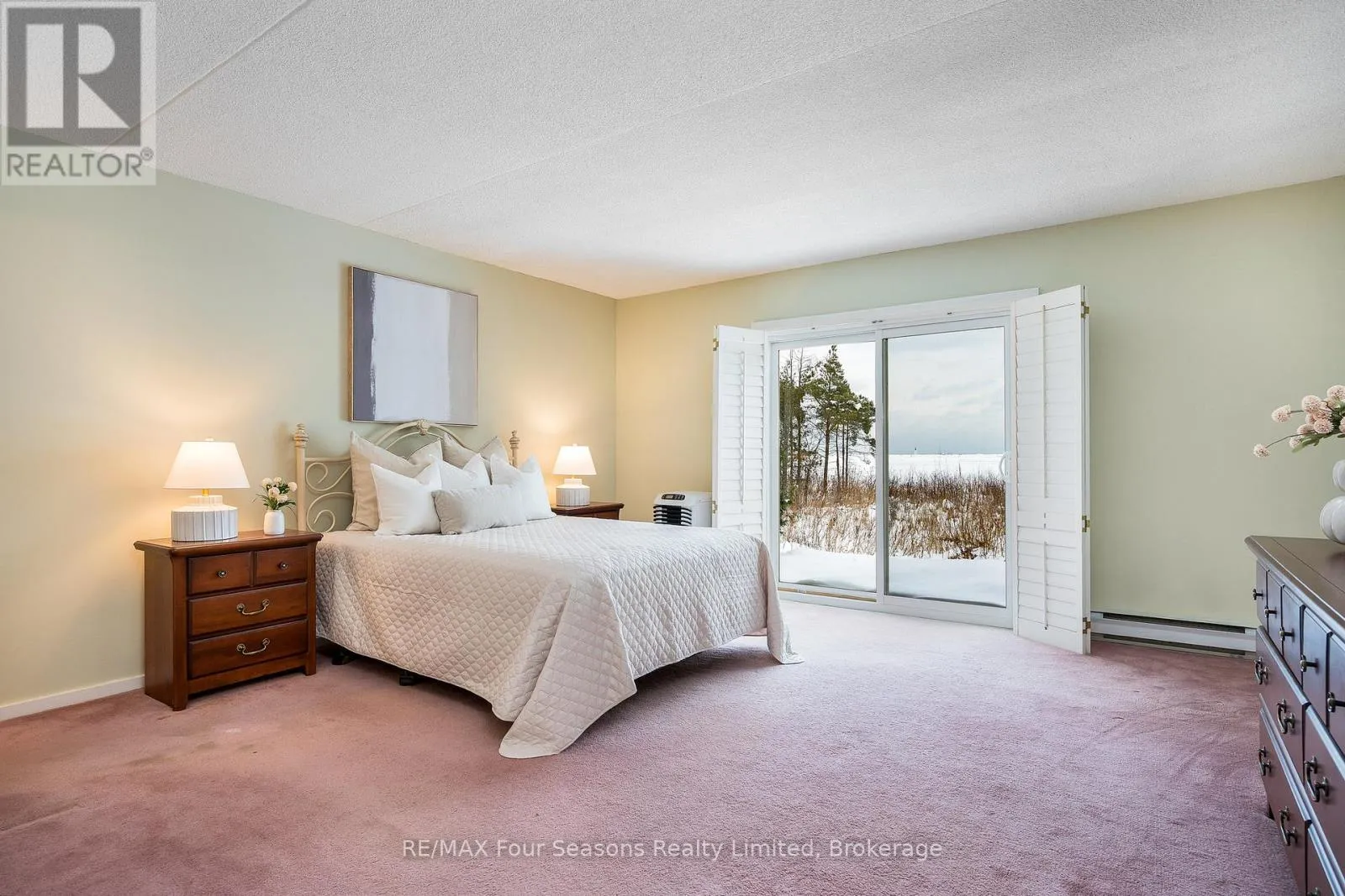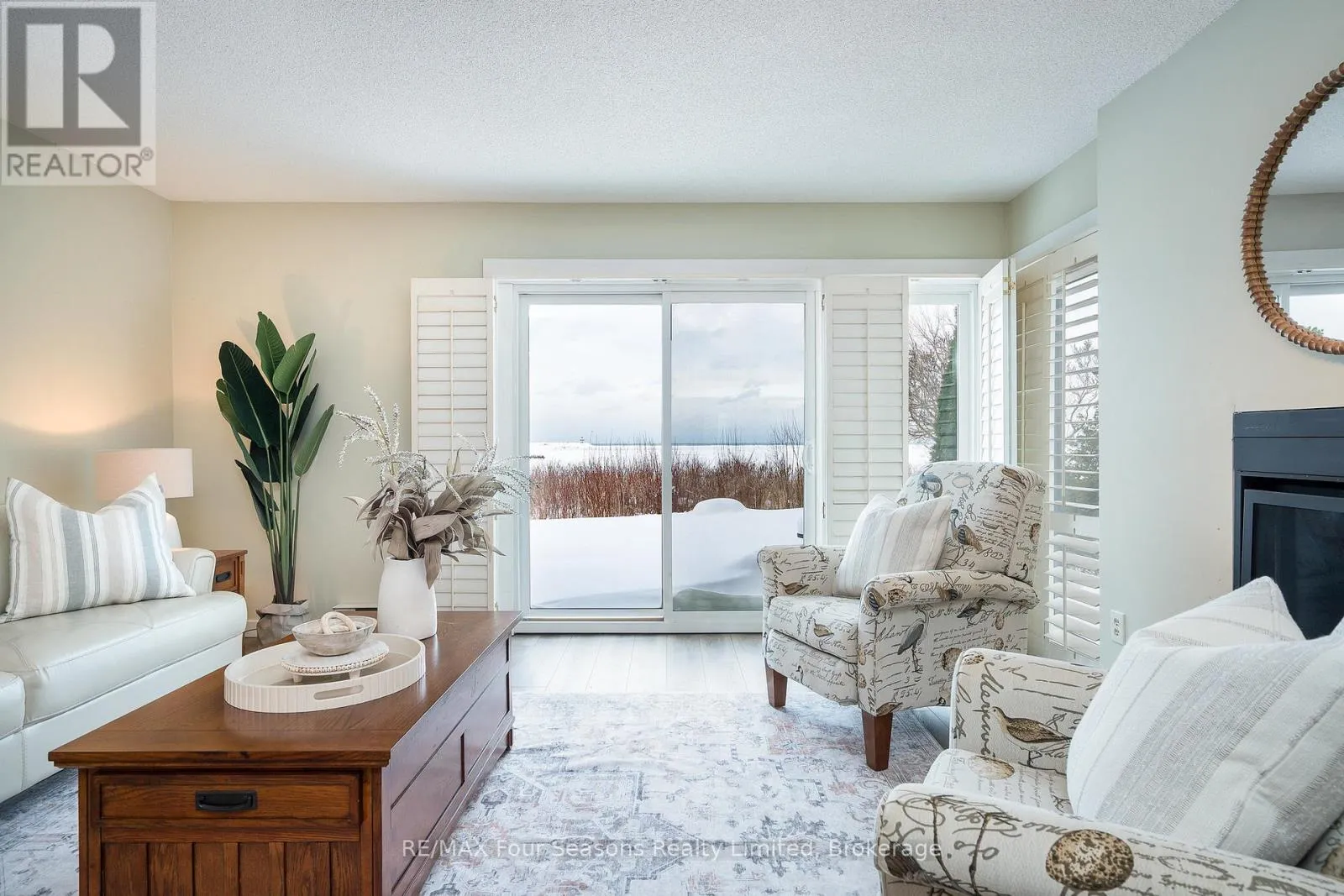 Cross Streets: Trott & Hwy 26. ** Directions: Turn onto Trott from Hwy 26. Wake up every day feeling like you're on vacation. This ground-level 2-bedroom, 2-bathroom condo offers an unbeatable Georgian Bay lifestyle just minutes from Collingwood. With a spacious kitchen, a separate laundry room, and walkouts from both the living room and bedroom, indoor living flows effortlessly to a private patio overlooking the bay-your front-row seat to sunrise, sunsets, and ever-changing water views. Step outside to private walking trails, spend winter days skiing at Blue Mountain, summers golfing or by the water, and enjoy vibrant, year-round activities close to home. Whether you're seeking a full-time residence, weekend retreat, or low-maintenance lifestyle surrounded by nature, this is a place where memories are made and every season is something to look forward to. (id:27476)