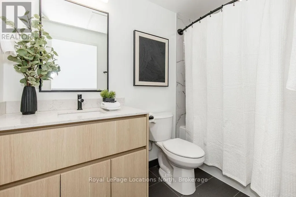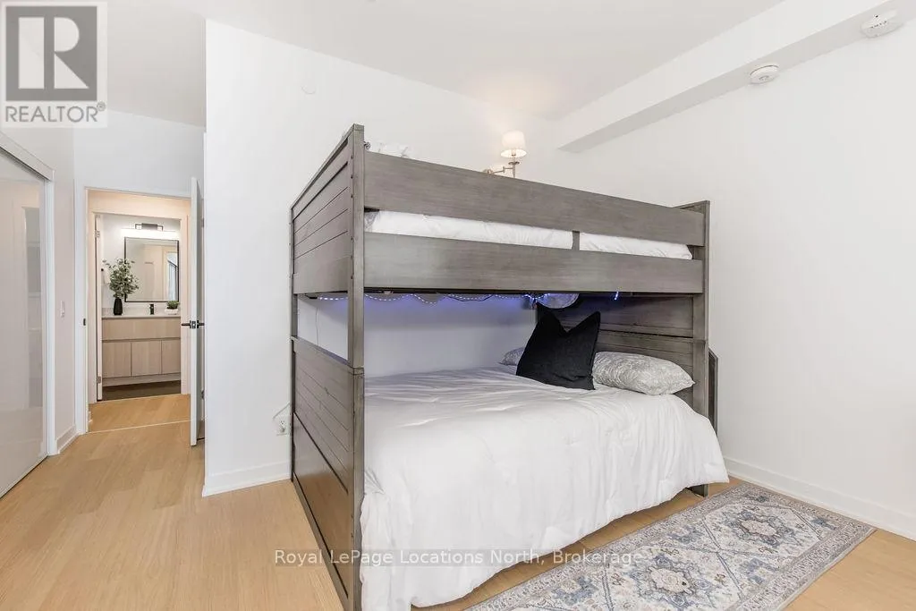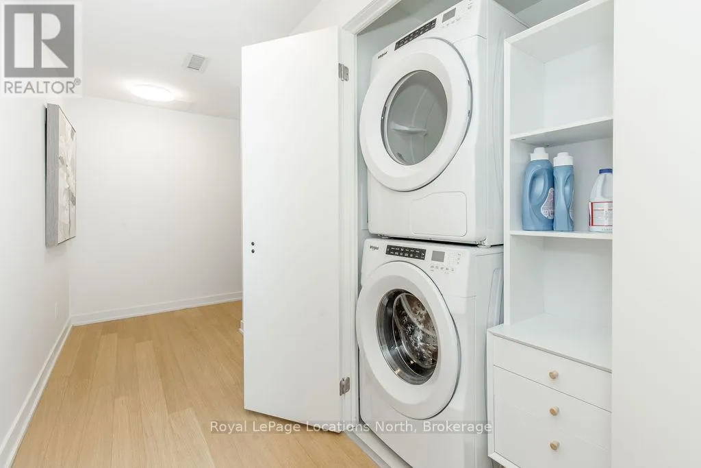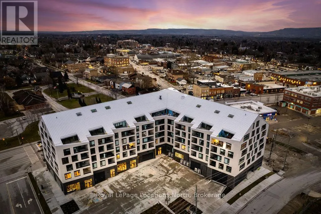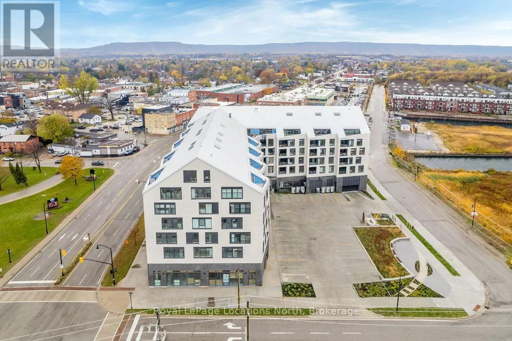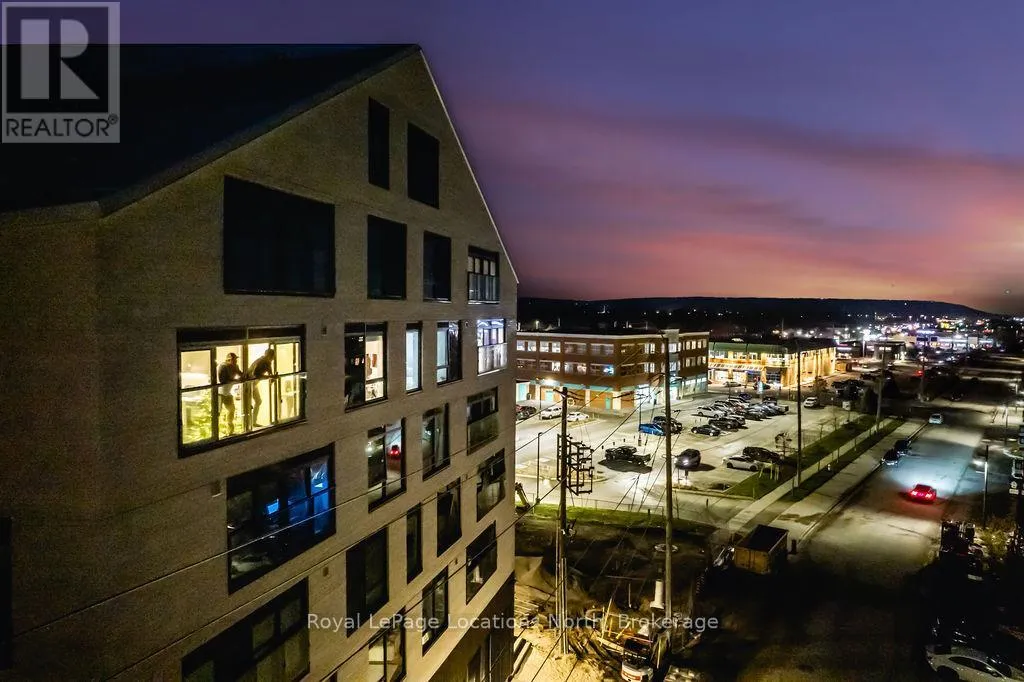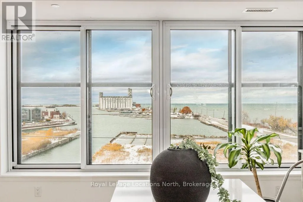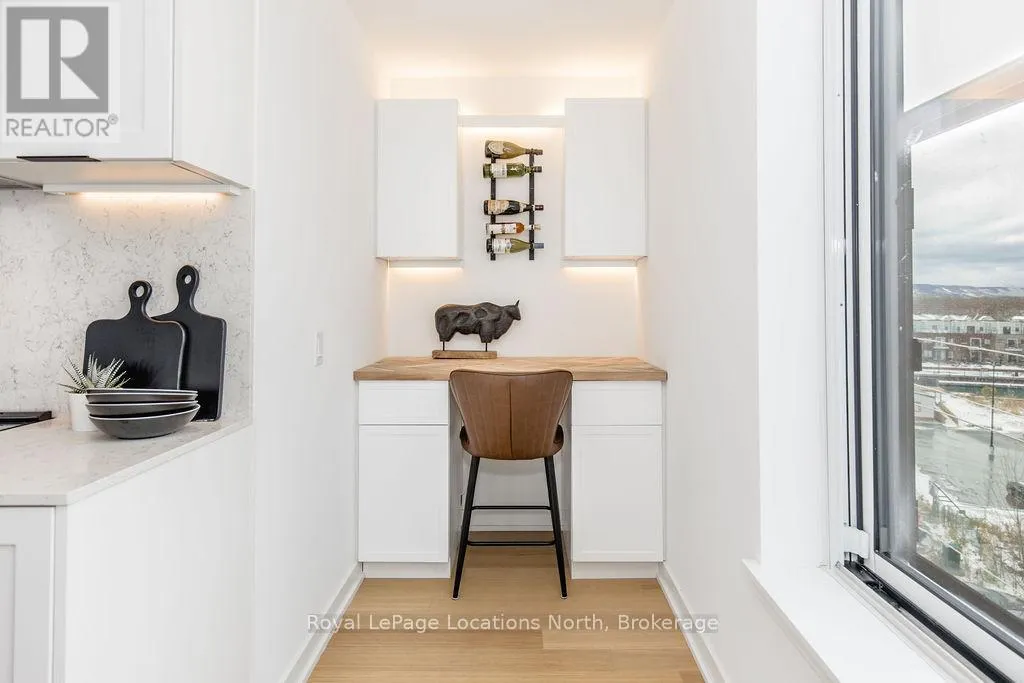 Cross Streets: Hurontario St and Huron St. ** Directions: Hurontario Street to Huron Street. The Best Views in the Building | Day or Night. This is the one everyone talks about. From this unit, you'll watch downtown Collingwood light up at night, see the hills of Blue Mountain glowing in the distance, and take in the harbour with boats and shipyards below. It's a view that never gets old.Set in a modern boutique building completed in 2022, this waterfront condo offers approximately 1,200 sq ft of well-designed living space with 2 bedrooms and 2 bathrooms. The layout is open and inviting, with oversized windows that flood the home with natural light and frame those incredible views from nearly every angle.The kitchen is bright and timeless, finished with classic white cabinetry, quartz countertops with a waterfall edge, a matching quartz backsplash, and a large island that's perfect for both entertaining and everyday living. The open living and dining space flows effortlessly to a 100 sq ft private terrace, creating an ideal spot to enjoy your morning coffee or unwind in the evening as the sun sets over the bay with a glass of wine. A thoughtfully designed built-in desk overlooking the water offers a beautiful and functional space for a home office or creative workspace.Every detail has been thoughtfully finished to create a comfortable, low-maintenance home that suits Collingwood's four-season lifestyle. The building offers excellent amenities including a fitness room, social lounge, guest suites, pet spa, and a rooftop terrace with panoramic views. Secure underground parking adds convenience and storage locker for all your outdoor sporting gear. Just outside your door you're instantly connected to the best of downtown, restaurants, shops, galleries, waterfront trails, and the marina are all just steps away. This is true walkable living, where you can leave the car behind and enjoy everything Collingwood has to offer. (id:27476)