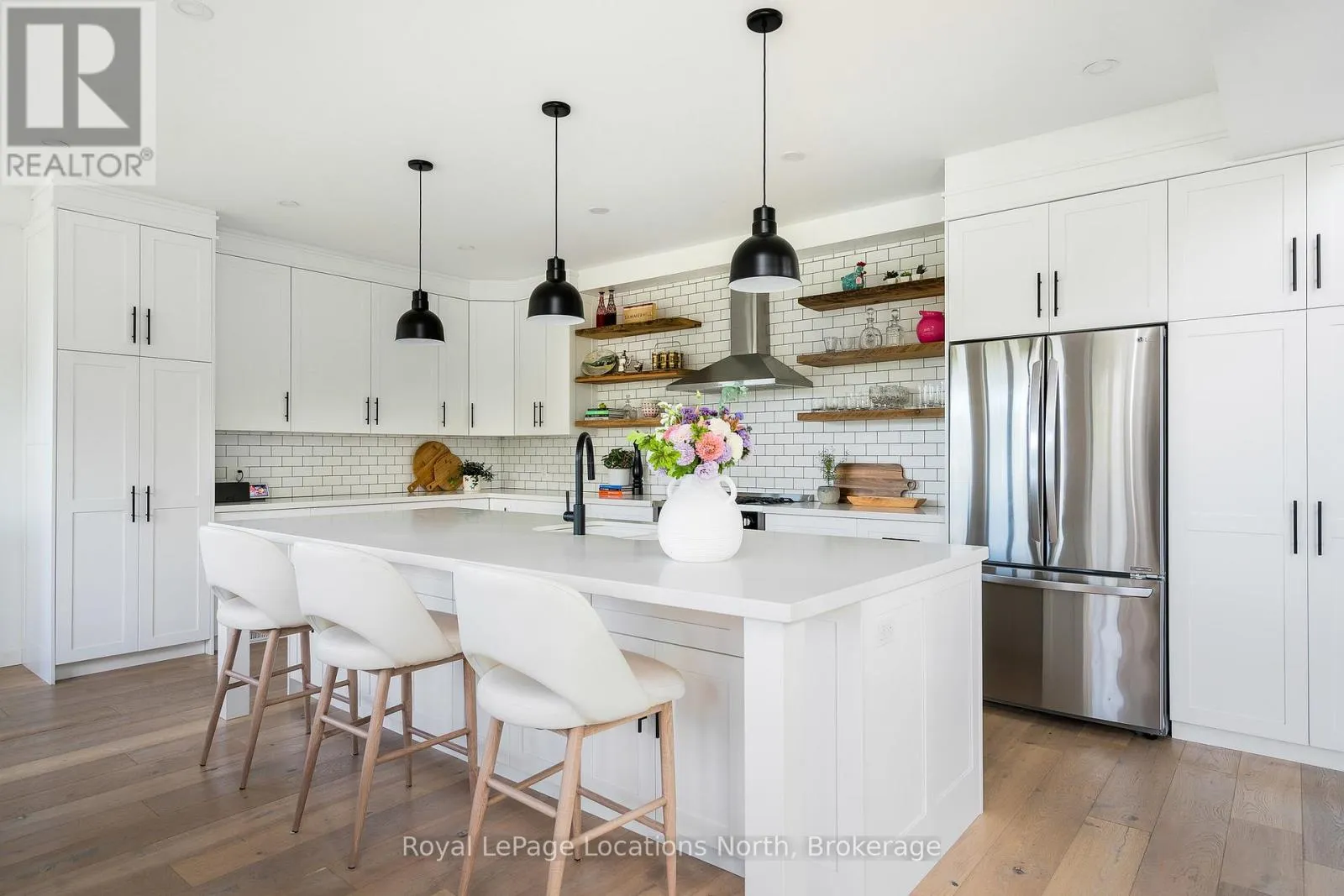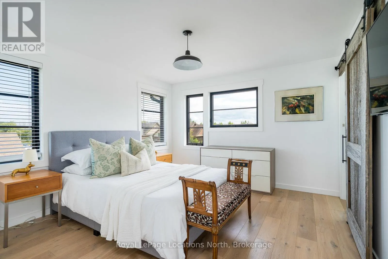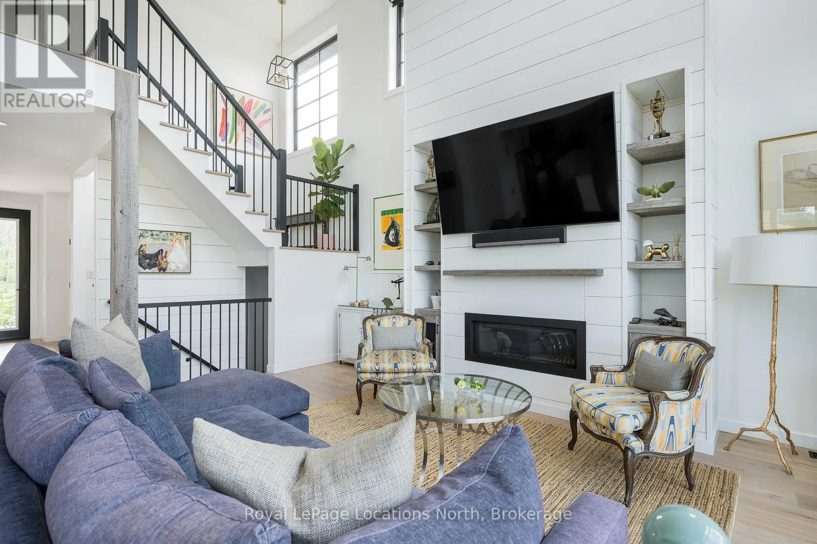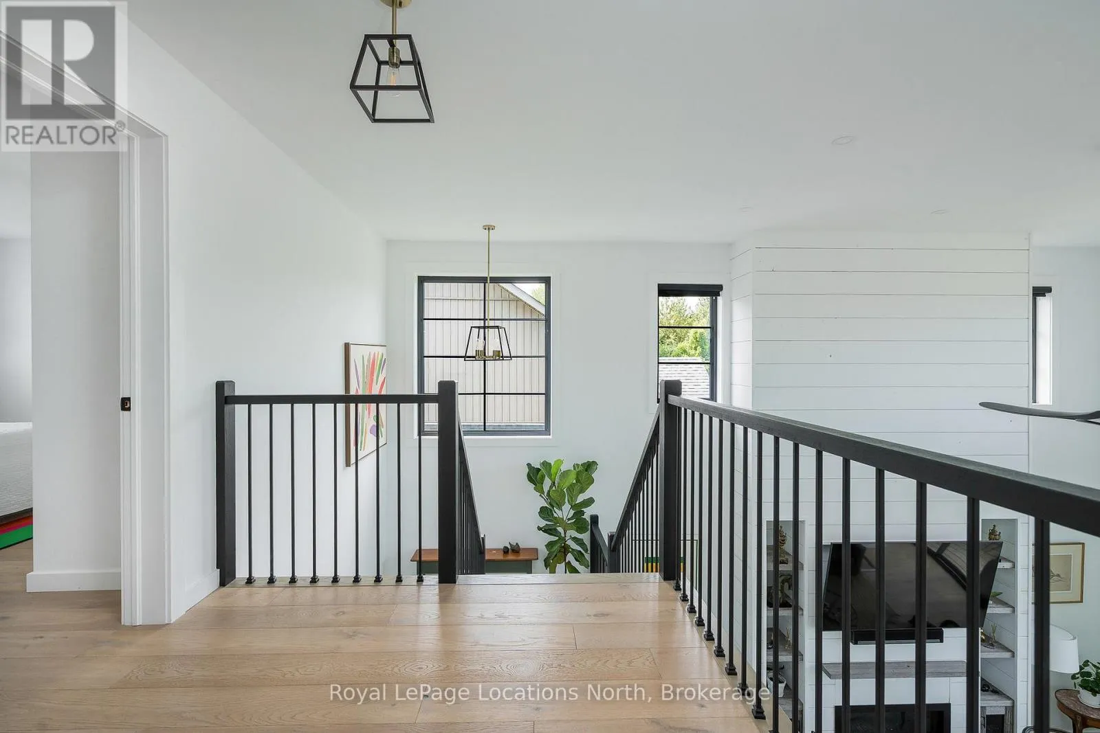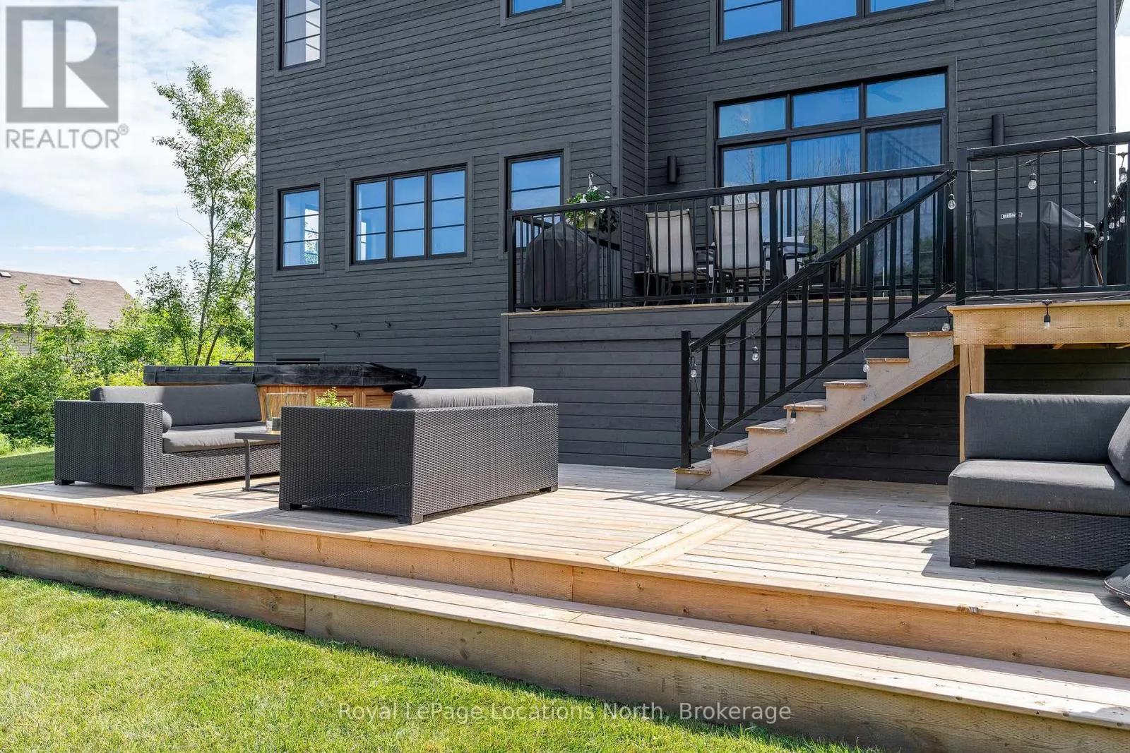 Cross Streets: Hurontario & Stanley Streets. ** Directions: Hurontario Street to west on Stanley Street, arrive at 49 Stanley. Welcome to one of Collingwood's most exclusive addresses, where elegance and comfort blend seamlessly in this custom-built two-storey home. Set on an impressive 66 x 167 ft full town lot, this residence offers over 3,700 sq ft of beautifully finished living space, with 5 bedrooms and 4 bathrooms designed for modern family living and entertaining. From the moment you step inside, soaring ceilings and sun-filled windows create a sense of openness and light. The main floor showcases wide-plank white oak engineered hardwood and thoughtful details throughout. At the heart of the home, the gourmet kitchen invites gathering with its quartz countertops, oversized island, and high-end appliances. The living room makes a statement with its dramatic 20-ft ceiling, cozy gas fireplace, and expansive sliding doors that lead to a private and peaceful backyard. Upstairs, retreat to the luxurious primary suite with remote-controlled blinds, a spacious walk-in closet, and a spa-inspired ensuite featuring double sinks, glass shower, and soaker tub. Two additional spacious bedrooms share a stylish Jack & Jill bathroom, perfect for family or guests. The fully finished lower level extends the living space with a generous recreation room, two more bedrooms, and a five-piece bath. Modern touches like shiplap and barnboard accents bring warmth and character throughout. Outdoors, enjoy a two-tiered deck and hot tub surrounded by nature. The large, private yard would be perfect for a pool. With amazing neighbours, a walkable location to Collingwood's best schools and downtown, and endless style and comfort, this home is truly a must see. (id:27476)