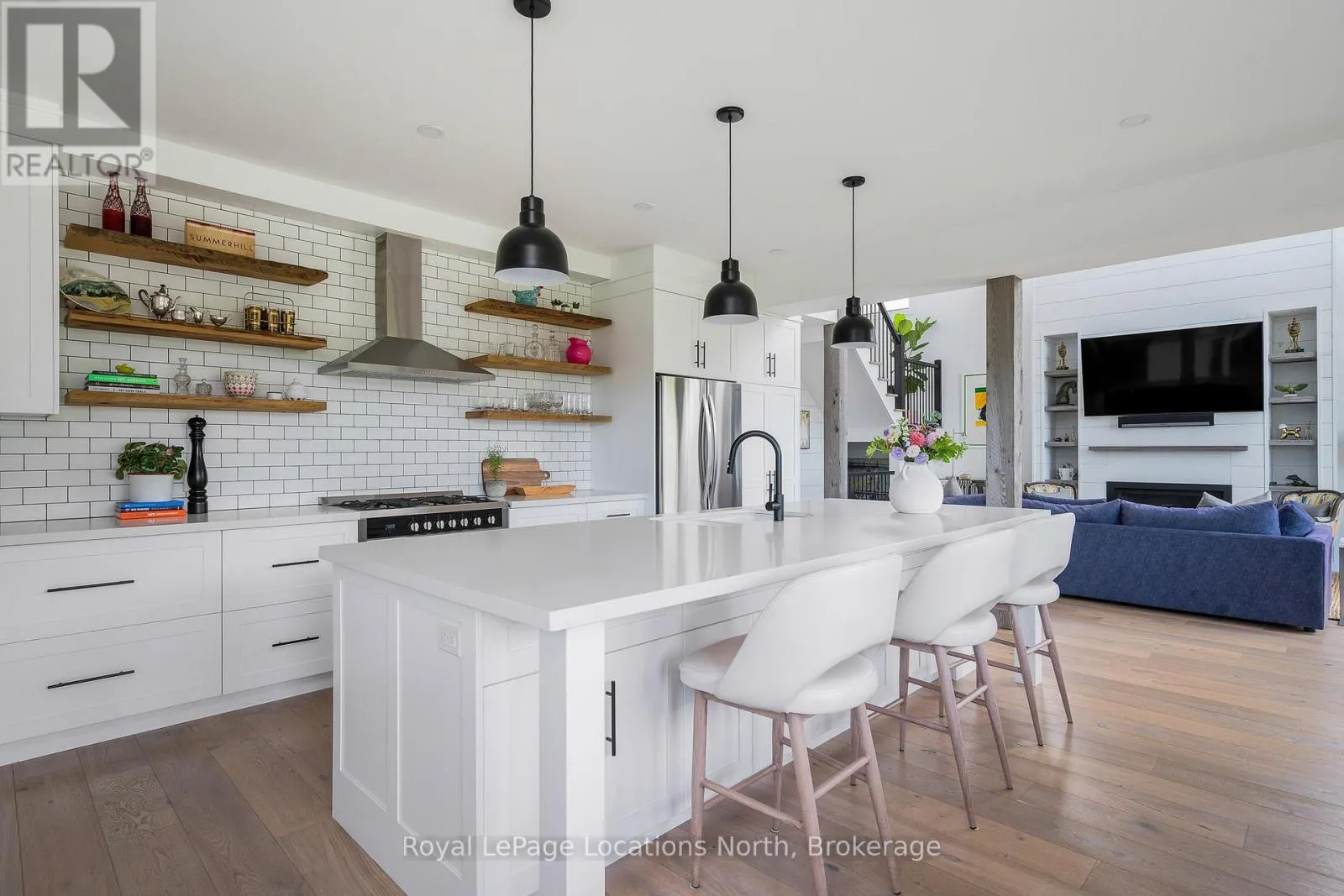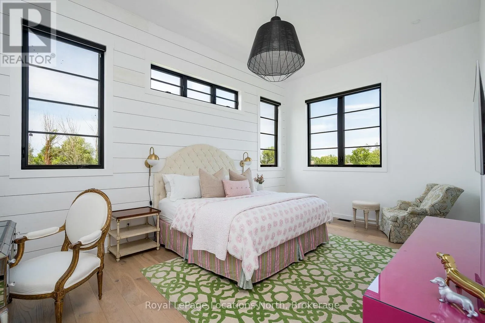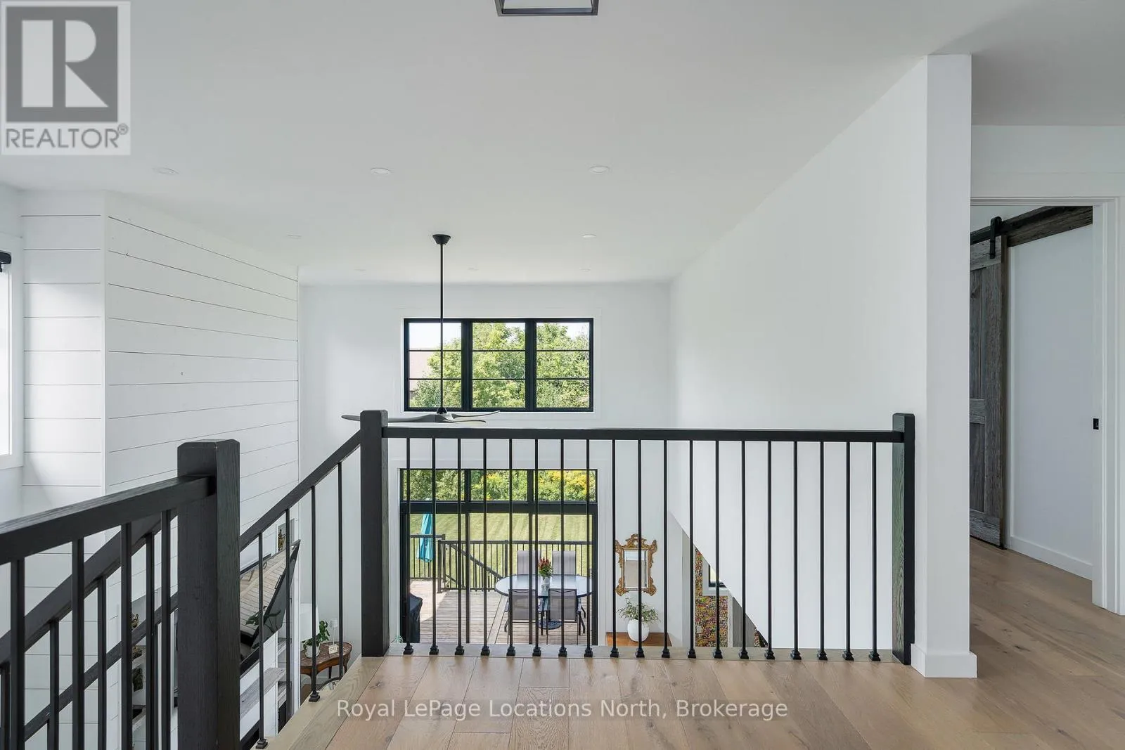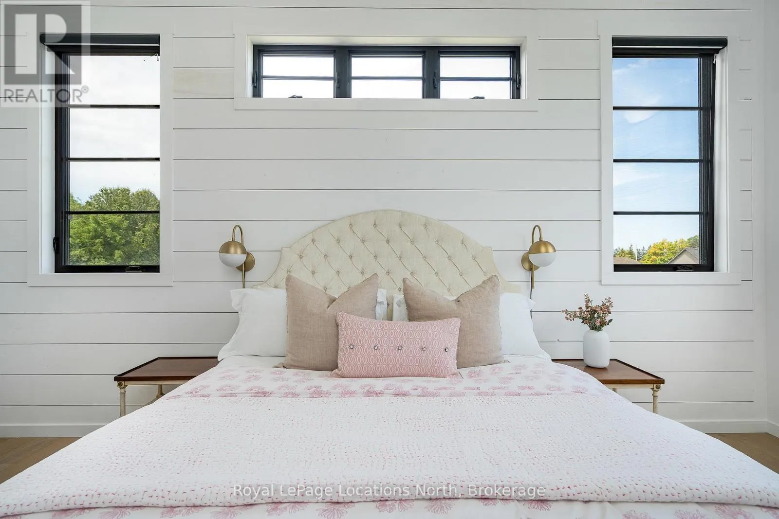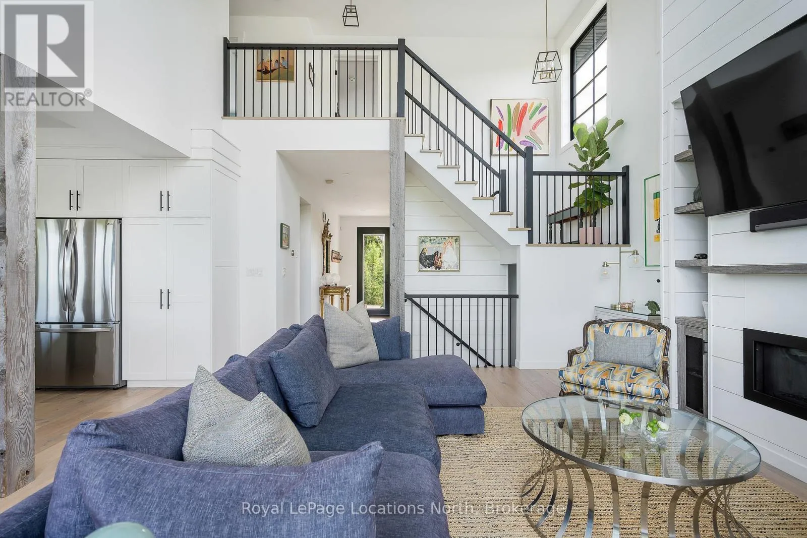 Cross Streets: Hurontario & Stanley Streets. ** Directions: Hurontario Street to west on Stanley Street, arrive at 49 Stanley. Welcome to one of Collingwood's most exclusive addresses, where elegance and comfort blend seamlessly in this custom-built two-storey home. Set on an impressive 66 x 167 ft full town lot, this residence offers over 3,700 sq ft of beautifully finished living space, with 5 bedrooms and 4 bathrooms designed for modern family living and entertaining. From the moment you step inside, soaring ceilings and sun-filled windows create a sense of openness and light. The main floor showcases wide-plank white oak engineered hardwood and thoughtful details throughout. At the heart of the home, the gourmet kitchen invites gathering with its quartz countertops, oversized island, and high-end appliances. The living room makes a statement with its dramatic 20-ft ceiling, cozy gas fireplace, and expansive sliding doors that lead to a private and peaceful backyard. Upstairs, retreat to the luxurious primary suite with remote-controlled blinds, a spacious walk-in closet, and a spa-inspired ensuite featuring double sinks, glass shower, and soaker tub. Two additional spacious bedrooms share a stylish Jack & Jill bathroom, perfect for family or guests. The fully finished lower level extends the living space with a generous recreation room, two more bedrooms, and a five-piece bath. Modern touches like shiplap and barnboard accents bring warmth and character throughout. Outdoors, enjoy a two-tiered deck and hot tub surrounded by nature. The large, private yard would be perfect for a pool. With amazing neighbours, a walkable location to Collingwood's best schools and downtown, and endless style and comfort, this home is truly a must see. (id:27476)