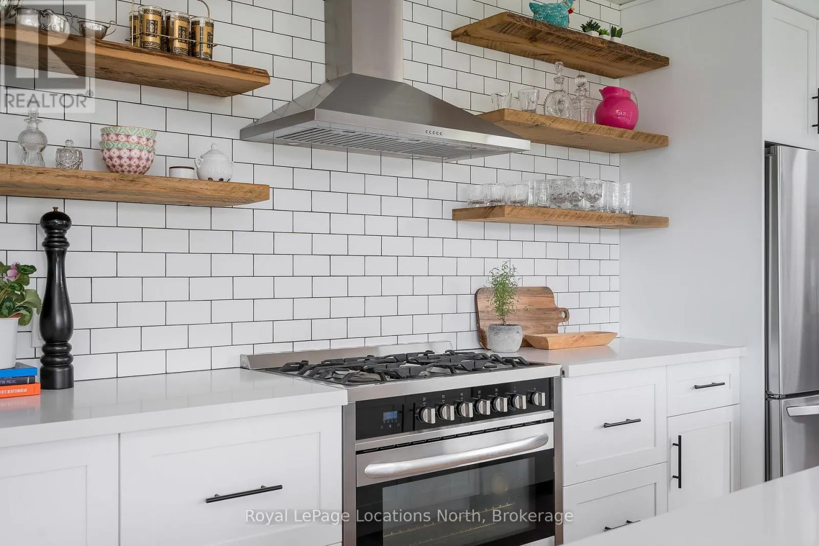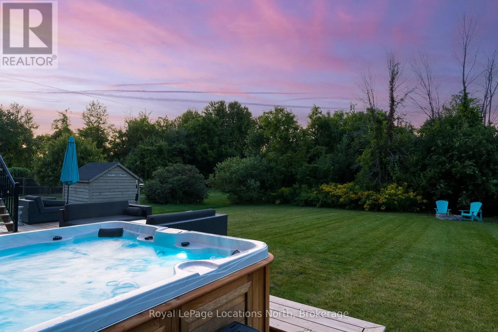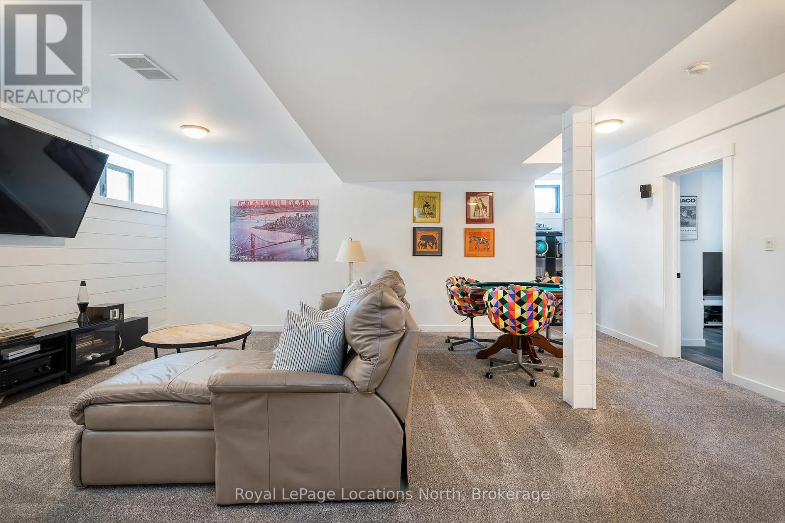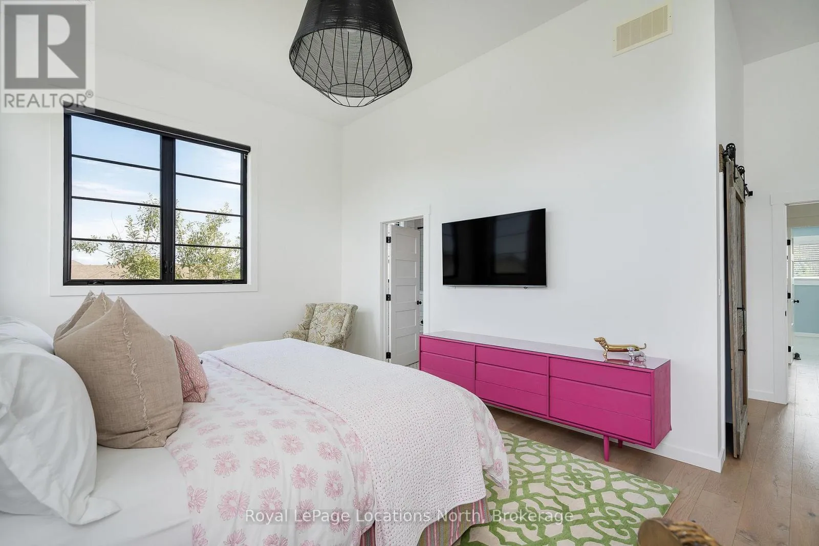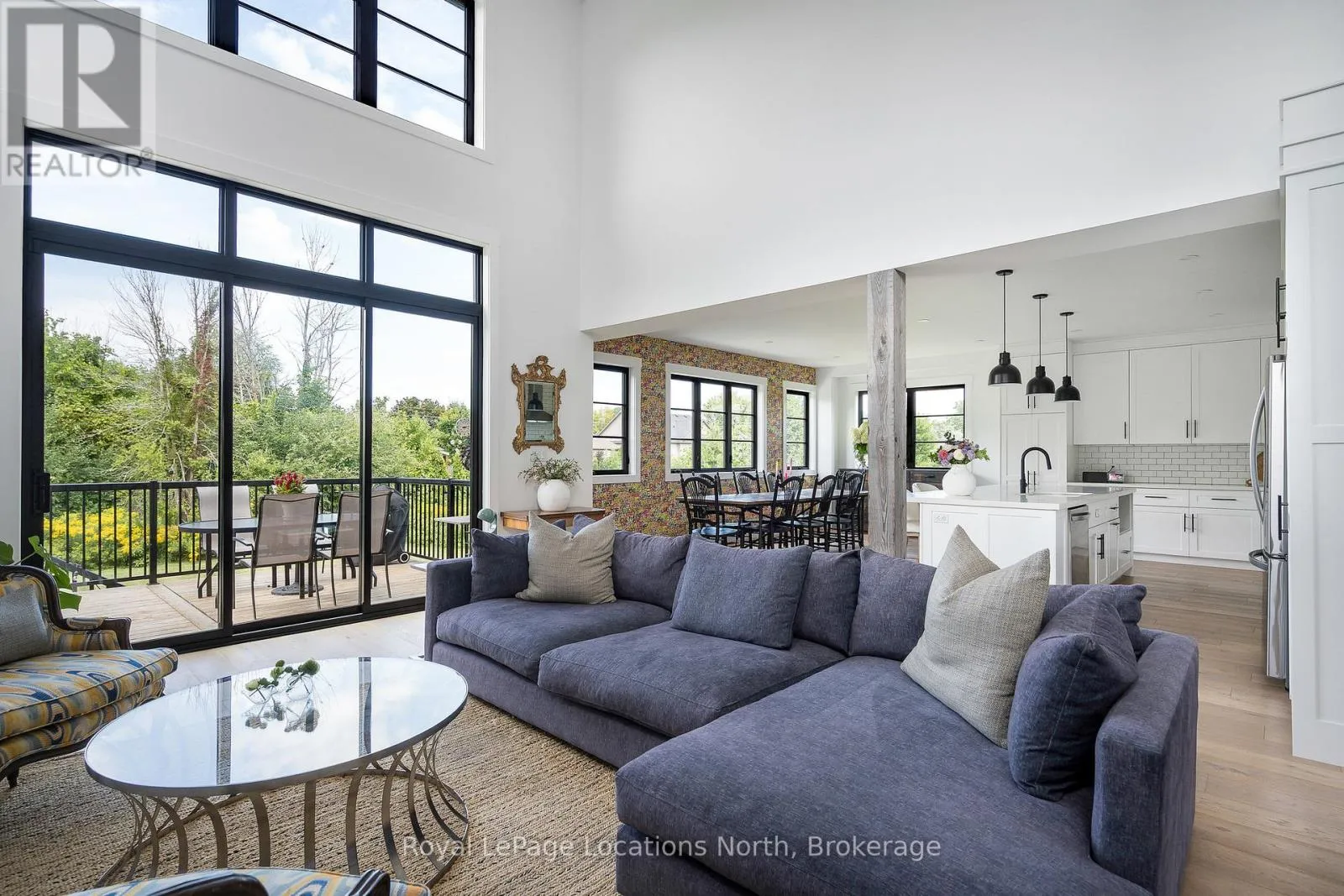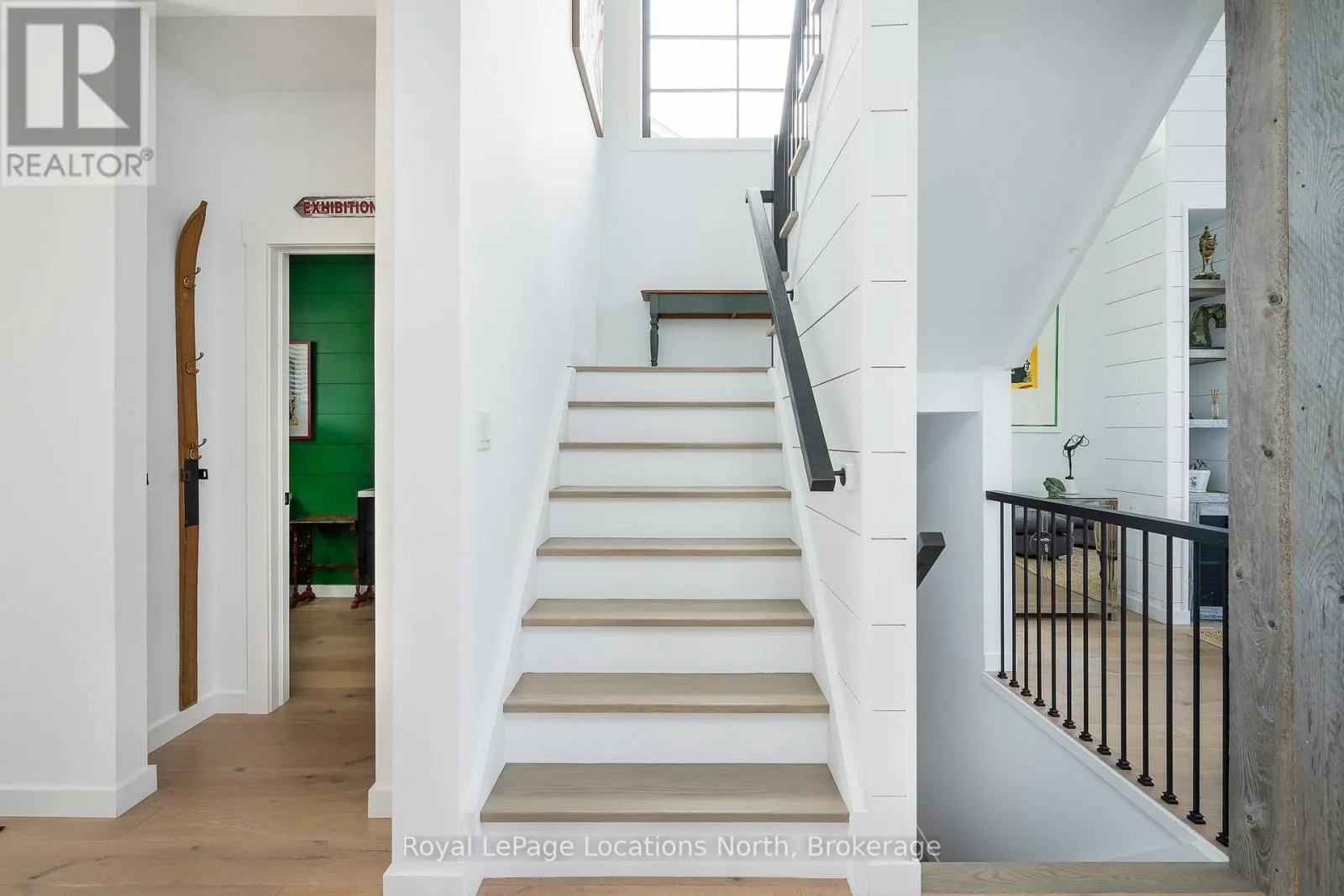 Cross Streets: Hurontario & Stanley Streets. ** Directions: Hurontario Street to west on Stanley Street, arrive at 49 Stanley. Welcome to one of Collingwood's most exclusive addresses, where elegance and comfort blend seamlessly in this custom-built two-storey home. Set on an impressive 66 x 167 ft full town lot, this residence offers over 3,700 sq ft of beautifully finished living space, with 5 bedrooms and 4 bathrooms designed for modern family living and entertaining. From the moment you step inside, soaring ceilings and sun-filled windows create a sense of openness and light. The main floor showcases wide-plank white oak engineered hardwood and thoughtful details throughout. At the heart of the home, the gourmet kitchen invites gathering with its quartz countertops, oversized island, and high-end appliances. The living room makes a statement with its dramatic 20-ft ceiling, cozy gas fireplace, and expansive sliding doors that lead to a private and peaceful backyard. Upstairs, retreat to the luxurious primary suite with remote-controlled blinds, a spacious walk-in closet, and a spa-inspired ensuite featuring double sinks, glass shower, and soaker tub. Two additional spacious bedrooms share a stylish Jack & Jill bathroom, perfect for family or guests. The fully finished lower level extends the living space with a generous recreation room, two more bedrooms, and a five-piece bath. Modern touches like shiplap and barnboard accents bring warmth and character throughout. Outdoors, enjoy a two-tiered deck and hot tub surrounded by nature. The large, private yard would be perfect for a pool. With amazing neighbours, a walkable location to Collingwood's best schools and downtown, and endless style and comfort, this home is truly a must see. (id:27476)